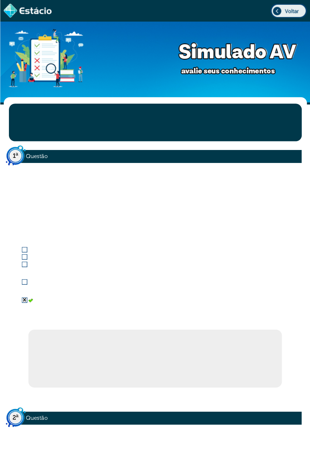 Disc.: NUTRIÇÃO E DIETÉTICA Aluno(a): DÉBORA LINO COSTA 201908109882 Acertos: 10,0 de 10,0 29/03/2021 Acerto: 1,0 / 1,0 Manuella de 25 anos, 50 kg, 1,59 m, foi em uma consulta com nutricionista objetivando reeducação alimentar. Foi prescrita uma dieta de 2000 Kcal, 50 g de proteínas, 60 g de lipídeos e 315 g de carboidratos. Sendo assim, considere as seguintes afirmativas: I. A dieta ofertou 10% do VET sob a forma de proteínas e pode ser considerada como normoprotéica segundo recomendações das Dietary Reference Intake (2002). II. Os lipídeos da dieta fornecem 240 kcal/dia III. Foi ofertado na dieta 6,3 g de carboidratos/kg de peso/dia IV. Foi ofertado na dieta 0,9 g de proteínas/kg de peso/dia V. A dieta ofertou 27% do VET sob a forma de lipídeos e é considerada hipolipídica segundo recomendações das Dietary Reference Intake (2002). Está correto o que se afirma em: III e IV IV e V III e V II e IV I e III Respondido em 29/03/2021 17:19:52 Explicação: I. A dieta ofertou 10% do VET sob a forma de proteínas e pode ser considerada como normoprotéica segundo recomendações das Dietary Reference Intake (2002). II. Os lipídeos da dieta fornecem 540 kcal/dia III. Foi ofertado na dieta 6,3 g de carboidratos/kg de peso/dia IV. Foi ofertado na dieta 1,0 g de proteínas/kg de peso/dia V. A dieta ofertou 27% do VET sob a forma de lipídeos e é considerada normolipídica segundo recomendações das Dietary Reference Intake (2002). Acerto: 1,0 / 1,0 Após anamnese com um paciente atendido na UBS. A nutricionista determinou que o VET era de 2454kcal, baseando-se nas informações do R24 e com as seguintes características : hiperglicidica (80%), normoproteica (10%) e hipolipidica (10%). Questão1 a Questão2 a https://simulado.estacio.br/alunos/inicio.asp javascript:voltar(); Diante desses dados, calcule as gramas de lipidios desta dieta. 27.26g 245g 27.26kcal 35% 245kcal Respondido em 29/03/2021 17:20:03 Explicação: 2454kcal-----------100% xkcal----------------10% x= 2454kcalx10/100 x=245,4kcal/9kcal x= 27,26g de lipídeos Acerto: 1,0 / 1,0 O exame físico é importante pois fornece evidências de deficiências nutricionais e que podem ser confirmadas pelo nutricionista a partir da solicitaçao de exame bioquimico. Sendo assim, em cada alternativa abaixo para cada sinal que pode ser observado no exame físico, identifique o que ele pode representar: 1. Cegueira noturna: 2. Unhas quebradiças, rugosas, coiloníquias: 3. Petéquias (pequenas hemorragias): a) cegueira noturna: deficiência de vitamina D b) Unhas quebradiças, rugosas, coiloníquias: deficiência de ferro; alteraçao do metabolismo da tireóide c) Petéquias (pequenas hemorragias): deficiência de vitamina A a) cegueira noturna: deficiência de vitamina A; c) Petéquias (pequenas hemorragias): deficiência de vitamina C Respondido em 29/03/2021 17:25:51 Explicação: a) cegueira noturna: deficiência de vitamina A; b) Unhas quebradiças, rugosas, coiloníquias: deficiência de ferro; alteraçao do metabolismo da tireóide c) Petéquias (pequenas hemorragias): deficiência de vitamina C. Acerto: 1,0 / 1,0 Pelo método de equivalentes podemos trocar alimentos do mesmo grupo e ter variedade na dieta sem alterar a ingestão calórica. Desta forma podemos substituir o pão por: ovo cuscuz de milho atum iogurte fruta Respondido em 29/03/2021 17:37:18 Explicação: Questão3 a Questão4 a o grupo do pão inclui alimentos ricos em carboidratos como tubérculos, bolos, tapioca, cuscuz de milho etc. Acerto: 1,0 / 1,0 Fibras são carboidratos que apresentam diversas funções no organismo humano e estão presentes em diferentes alimentos. Assinale a alternativa que correlaciona corretamente uma fibra e sua fonte alimentar. C.Pectinas e aspargo. D. Rafinose e banana. A.β-glucanos e carnes B. Frutanos e cevada. E. Estaquiose e alho. Respondido em 29/03/2021 17:33:41 Acerto: 1,0 / 1,0 Em relação às vitaminas, é correto afirmar que a: A. tiamina é uma vitamina do complexo B, necessária para o adequado funcionamento da função reprodutiva, cuja deficiência causa pelagra. B. riboflavina, ou vitamina B2, é essencial para o crescimento e sua deficiência causa hemorragias, irritabilidade e beribéri. D. vitamina B12, ou cobalamina, é um importante antioxidante celular e sua deficiência causa fotofobia e náuseas. C. niacina pode ser sintetizada a partir do triptofano alimentar e sua deficiência causa dermatite e demência. E. vitamina B6 ou piridoxina tem como principal função o desenvolvimento e manutenção do tecido epitelial e sua deficiência causa fragilidade óssea e raquitismo. Respondido em 29/03/2021 17:35:30 Acerto: 1,0 / 1,0 A obesidade é um problema de saúde grave que atinge várias pessoas ao redor do planeta. Marque a alternativa que apresenta o único fator que não é considerado desencadeador da obesidade. c) Hipertensão arterial. a) Problemas genéticos. b) Hábitos alimentares inadequados. e) Falta de atividades físicas regulares. d) Problemas hormonais. Respondido em 29/03/2021 17:29:06 Explicação: Alternativa C. A obesidade é um fator de risco para o desenvolvimento de hipertensão arterial. Sendo assim, a hipertensão pode ser considerada como uma consequência, e não uma causa da obesidade. Acerto: 1,0 / 1,0 Questão5 a Questão6 a Questão7 a Questão8 a Toda mulher durante a fase reprodutiva da vida apresenta variações hormonais ao longo do mês. Esta variação é a responsavel pelo ciclo menstrual. Durante o ciclo menstrual feminino, observa-se o aumento da espessura do endométrio. O desenvolvimento da parede uterina é consequência da ação de dois hormônios, que são: insulina e glucagon. LH e FSH. Estrogênio e Testosterona Adrenalina e aldosterona. estrógeno e progesterona. Respondido em 29/03/2021 17:34:29 Explicação: O estrógeno e a progesterona promovem o crescimento e a manutenção do endométrio. Quando os níveis desses hormônios diminuem, ocorre a menstruaç
