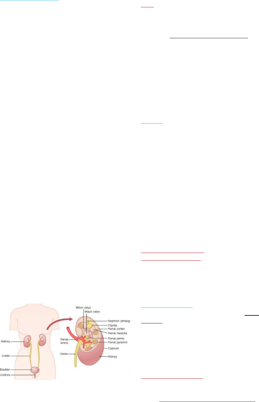 Sistema Urinário Funções do Rim - Excreção de metabólitos (ureia; creatina; ácido úrico; produtos da degradação de hemoglobina, metabólitos de hormônios; “toxinas”). Esses produtos devem ser eliminados do corpo tão rapidamente quanto são produzidos. Os rins também eliminam a maioria das toxinas e das outras substâncias estranhas que são produzidas pelo corpo e ingeridas, tais como pesticidas, fármacos e aditivos alimentícios. - Controle do volume e composição dos líquidos corporais - Regulação do equilíbrio ácido-básico através da excreção de ácidos (ex. ác. sulfúrico e fosfórico) e regulação da reserva de tampões nos líquidos corporais. - Regulação da pressão arterial – pela excreção de água e eletrólitos ou secreção de substâncias vasoativas (renina). Porque se o corpo retém mais agua ou sal, gera uma demanda maior de ação do coração no bombeamento e aumenta essa pressão no vasos - Secreção de hormônios Gliconeogênese - jejum causa a síntese de glicose a partir de aminoácidos e outros precursores - Regulação da produção de eritrócitos - secreção de eritropoetina que estimula a produção de hemácias (hipoxia) Néfron é a estrutura onde ocorrem todas as trocas Rim é o órgão que tem maior perfusão de sangue no corpo 99% do sangue que passa no rim é reabsorvido Hilo Por onde passam a artéria e as veias renais, vasos linfáticos, suprimento nervoso e o ureter, responsável por carrear a urina do rim para a bexiga - O fluxo sanguíneo para os dois rins corresponde normalmente a 22% do débito cardíaco ou 1.100 mL/min. - A pressão hidrostática elevada nos capilares glomerulares causa rápida filtração enquanto uma pressão hidrostática muito menor nos capilares peritubulares permite uma reabsorção do líquido. Néfron - Cada rim contém cerca de 800.000 a 1 milhão de néfrons, cada um capaz de formar urina - O rim não pode regenerar novos néfrons O néfron tem: Glomérulo Local em que ocorre a filtração de líquido do sangue Com pressão hidrostática alta Longo túbulo Local em que o líquido filtrado é convertido em urina, no trajeto para a pelve renal Néfrons corticais X Justaglomerulares - Existem algumas diferenças, dependendo de quão profundos os néfrons se situam no interior do parênquima renal Néfrons Corticais Têm os glomérulos localizados na zona cortical externa Apresentam alças de Henle curtas que penetram apenas em pequena extensão no interior da medula - (10 a 30%) mergulham na medula - A maioria são corticais Néfrons Medulares - Glomérulos mais profundos no córtex renal, ficam perto da medula - São mais eficientes na concentração da urina ou modificação da concentração porque o epitélio é mais longo, quanto maior a área, mais a troca se pode fazer Formação de Urina Excreção urinária = Filtração – Reabsorção + Secreção nos capilares 1- A formação da urina começa quando grande quantidade de líquido é filtrada dos capilares glomerulares para o interior da cápsula de Bowman 2- A maior parte das substâncias no plasma, exceto as proteínas, é livremente filtrada Arteríola aferente é por onde entra o sangue e sai pela arteríola eferente 1- Processo da filtração, passagem efetiva das substâncias que estão no sangue para dentro do filtro, para cápsula de Bowman 2- Passa tudo pelo filtrado menos a proteína Do que passa pelo filtro poca coisa será excretada, essas substâncias que caem no filtrado voltam pela reabsorção, ou seja, é jogado pra dentro do sistema vascular Sempre restam algumas coisas ruins que não conseguem ser filtradas totalmente, por isso existe a 3 etapa 3- Secreção, joga fora o que não precisa 4- Excreção final, resultante da filtração – reabsorção + secreção A seguir será retratada quatro substâncias hipotéticas e os modelos de passagem pelo processo de absorção. Qualquer substância se encaixa em uma dessas formas a seguir Bege = Sistema tubular Vermelho = Vasos Sanguíneos Preto = túbulo A. Passa pelo filtrado e vai pra urina, exemplo sódio, urina sempre tem sais B. Substância está no sangue, é filtrada, cai uma quantidade maior no tubo então uma parte é reabsorvida, cai no filtrado, volta pra corrente sanguínea, é reabsorvida C. A substância é livremente filtrada pelos capilares glomerulares, mas não é excretada na urina porque toda a substância filtrada será reabsorvida pelos túbulos de volta para a corrente sanguínea - Exemplo glicose e aminoácido, em condições normais não são jogadas fora - Esse filtrado que não conseguiu evitar a perda desse nutriente vai corrigir voltando para a corrente sanguínea e nenhuma passa pra urina. A que não conseguir evitar que caia no filtrado, o rim reabsorve essa glicose pra dentro do sistema sanguíneo D. A substância toda não cai no filtrado, então ela fica no sangue, mas não pode ser mantida nele porque é toxica, então é secretada para dentro do túbulo que vai para urina Filtração Glomerular – pág. 352 - Começa com a filtração de grandes quantidades de líquido, por meio dos capilares glomerulares para a cápsula de Bowman - É determinada por: Balanço das forças hidrostáticas e coloidosmóticas, atuando através da membrana capilar Coeficiente de filtração capilar (Kf), o produto da permeabilidade e da área de superfície de filtração dos capilares K – Significa o quanto que a parede é permeável, o K do rim é o mais alto de todo o corpo e ele sendo alto facilita as trocas, isso ocorre porque a célula tem podocitos, então as substâncias trafegam mais Pressão H do glomerular é a pressão arterial Pressão hidrostática, pressão exercida pela água Força que se chega na arteríola aferente é o que determina a pressão, é um fator que determina a saída das substâncias do vaso sanguíneo para a cápsula Pressão colodoismodea do capilar glomerular, é dada pelas proteínas que tem no plasma Então d