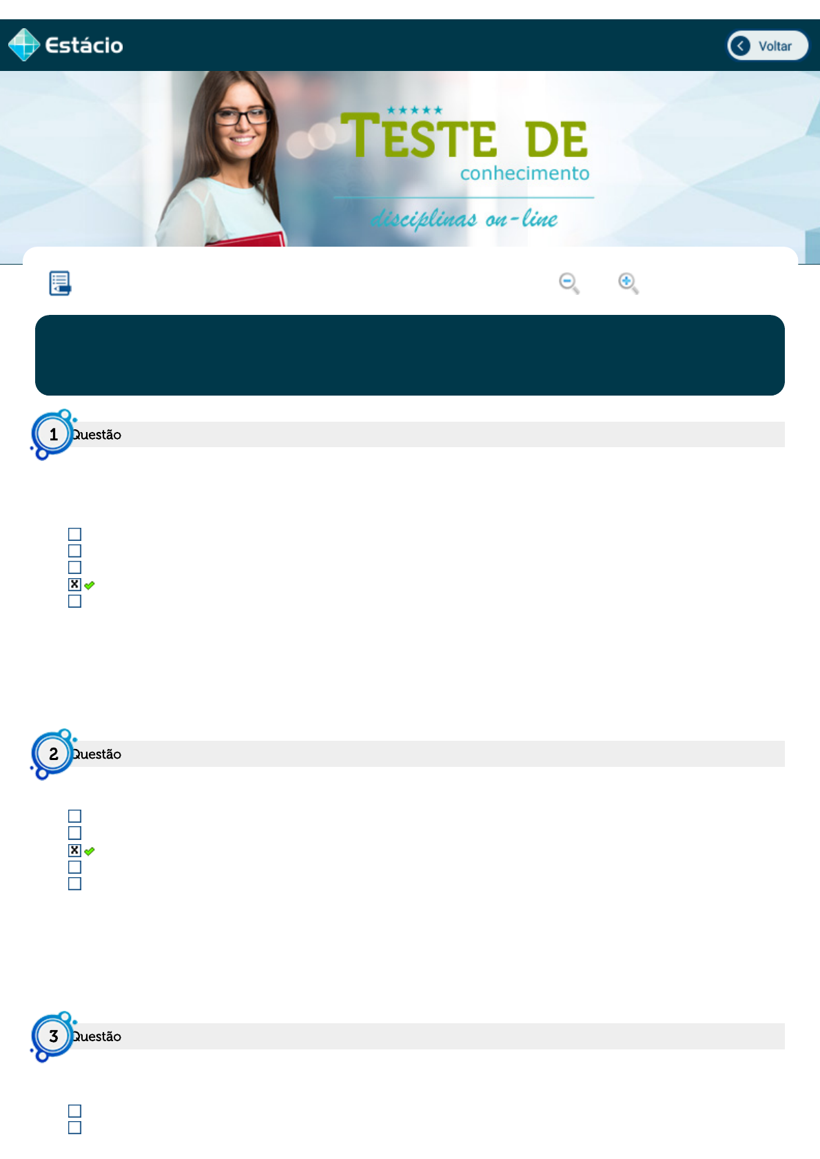 BIOINFORMÁTICA 10a aula Lupa Exercício: SDE4449_EX_A10_202004010549_V1 15/03/2021 Aluno(a): ORLANDO PEDRO DA SILVA 2021.1 - F Disciplina: SDE4449 - BIOINFORMÁTICA 202004010549 "O ____________ busca usar um número limitado de palavras para descrever três conjuntos de informações sobre uma proteína. O conjunto "biological process" (processo biológico) representa objetivos específicos que o organismo é geneticamente programado para atingir, como por exemplo o processo biológico da divisão celular resulta na criação de duas células filhas a partir de uma única célula-mãe. Qual opção completa corretamente a lacuna? PDB. KEGG. CARD. Gene Ontology (GO). GenBank. Respondido em 15/03/2021 09:45:25 Explicação: A descrição corresponde ao banco Gene Ontology. Qual a aplicabilidade do Banco de Dados Protein Data Bank (PDB)? é um banco de dados extremamente completo é uma coleção de todas as sequências de DNA disponíveis ao público. único repositório mundial de estruturas 3D de grandes moléculas biológicas, incluindo proteínas e ácidos nucleicos. é um banco que armazena a anotação detalhada de proteínas Anotar a função de genes é um processo basicamente comparativo Respondido em 15/03/2021 09:45:42 Explicação: Leia sobre a definição e atividade da plataforma PDB. Em qual dos bancos de dados abaixo, podemos encontrar informações correpondentes a atividades metabólica deum determinado gene, por exemplo. Assinale abaixo a alternatica correta. Swiss-Prot. NCBI Questão1 Questão2 Questão3 https://simulado.estacio.br/alunos/inicio.asp javascript:voltar(); javascript:diminui(); javascript:aumenta(); UniProt Gene Ontology KEGG Respondido em 15/03/2021 09:46:27 Explicação: É possível extrair do KEGG informações como em qual via ou processo celular aquela proteína está inserida, incluindo exatamente o momento em que ela entra em ação. O repositório mundial de estruturas 3D de grandes moléculas biológicas, incluindo proteínas e ácidos nucleicos é o: Gene Ontology (GO). SWISS-Prot. PDB. GenBank. KEGG. Respondido em 15/03/2021 09:46:34 Explicação: PDB: Protein Data Banking Qual das alternativas abaixo NÃO é um banco de dados biológico? KEGG. SWISS-Prot. PDB. GenBank. BLAST. Respondido em 15/03/2021 09:46:46 Explicação: BLAST é um algoritmo de alinhamento local. Em relação a banco de dados públicos, qual o único banco em que encontramos um repositório mundial de estruturas 3D de grandes moléculas biológicas, incluindo proteínas e ácidos nucléicos. Assinale a alternativa que é referente a esse banco. Protein Data Bank (PDB) GenBank Blastx Gene Ontology Blastn Respondido em 15/03/2021 09:46:59 Explicação: O Protein Data Bank (PDB) é o único repositório mundial de estruturas 3D de grandes moléculas biológicas, incluindo proteínas e ácidos nucleicos. Questão4 Questão5 Questão6 javascript:abre_colabore('38403','218611771','4415125676');