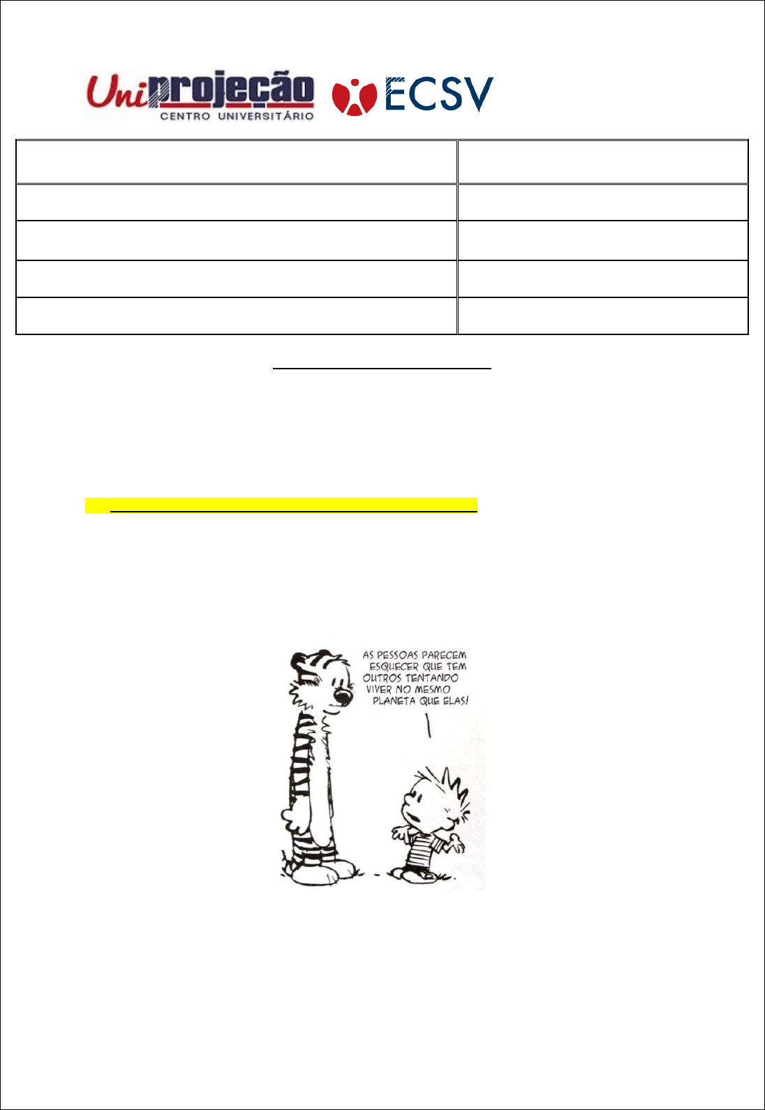 Nome: Eliane maria da silva Matrícula: 201910564 Disciplina: Ética e Deontologia Data: 23/09/2020 Curso: Nutrição Turma: matutino Avaliação: Avaliação de Competência – A1 Valor: 10 pontos Professor (a): Bruna Cristina Zacante Ramos Nota: OBSERVAÇÕES IMPORTANTES: 1. Preencha o cabeçalho com o nome, matrícula, curso e turma. 2. Esta prova é composta por uma única questão. 3. Aguarde a orientação do docente para dar início a prova. 4. Leia atentamente e criticamente tanto dos comandos quando dos itens de cada questão antes de responder; 5. Este será o único documento utilizado para a correção. 6. Presença de plágio acarretará a nota zero para a prova. 7. Use FONTE ARIAL 12 e cor da fonte vermelha (marcar em vermelho as questões objetivas). Cuide da apresentação de sua prova. 8. A desobediência a estas instruções poderá implicar no recolhimento da avaliação e na aplicação de nota zero (0,0). Antes de ir para as questões, leia a charge abaixo e tenha uma boa avaliação! Questão 01 – (Valor: 1,00 ponto) O Código de Ética e Conduta do Nutricionista é um instrumento delineador da atuação profissional. Seus princípios, responsabilidades, direitos e deveres devem ser reconhecidos como o cerne da prática diária em todas as áreas da Nutrição. A nova edição do Código de Ética, publicada em fevereiro de 2018, apresenta inovações que consideram os avanços e as nuances da prática profissional do século XXI. O Código reflete a abrangência e a visibilidade da Nutrição, e é um instrumento orientador acerca dos diretos e deveres do nutricionista, mas tem a preocupação de se adequar à realidade e responsabilidade técnica, social, ética e política com a saúde, a qualidade de vida e o bem-estar das pessoas. O Código tem o objetivo de garantir que os princípios da Nutrição sejam respeitados e valorizados, e que a soberania e a segurança alimentar e nutricional sejam premissas na atuação dos nutricionistas (http://www.cfn.org.br/wp-content/uploads/resolucoes/Res_599_2018.htm). Em relação ao Código de Ética, julgue as afirmativas abaixo: I - É direito do nutricionista prescrever, indicar, manifestar preferência ou associar sua imagem para divulgar marcas de produtos alimentícios, suplementos nutricionais, fitoterápicos, empresas ou indústrias ligadas às atividades de alimentação e nutrição, desde que informe e não direcione escolhas. II - É direito do nutricionista alterar a conduta profissional determinada por outro nutricionista caso tal medida seja necessária para benefício de indivíduos, coletividades ou serviços, registrando as alterações e justificativas de acordo com as normas da instituição, e sempre que possível informar ao responsável pela conduta. III - É dever do nutricionista manter-se atualizado quanto aos conhecimentos e práticas necessários ao bom andamento do processo de trabalho, bem como incentivar e facilitar que profissionais sob sua orientação e supervisão o façam. IV - A atuação do nutricionista deve ser pautada na defesa do Direito à Saúde e do Direito Humano à Alimentação Adequada e da Segurança Alimentar e Nutricional de indivíduos e coletividades. a) I, III e IV b) I e II c) II e III d) III e IV e) II, III e IV Questão 02 (Valor: 1,00 ponto) Considerando as noções de ética e de moral, bem como os princípios e valores que conduzem nossa sociedade, julgue os itens seguintes. I- Um indivíduo em situação de miséria que encontrar, caída na rua, uma carteira e decidir utilizar o cartão de crédito nela guardado para adquirir medicamentos ao seu filho terá agido de acordo com as normas éticas, mas não com os princípios morais. II- Os valores morais variam ao longo do tempo. III- O campo da filosofia dedicado a estudar os valores e princípios que orientam a conduta dos seres humanos em sociedade é denominado ética. a) Apenas os itens I e II estão certos. b) Apenas os itens I e III estão certos. c) Apenas os itens II e III estão certos. d) Todos os itens estão certos. e) Todos os itens estão errados. Questão 03 (Valor: 1,00 ponto) Observe o extrato do texto do Prof. João Maurício Adeodato e, em seguida, responda o que se pede: “O termo ethos, ao lado de pathos e logos, designa, na Grécia clássica, uma das dimensões ontológicas fundamentais da vida humana. Ética constitui, além da doutrina do bom e do correto, da “melhor” conduta, a teoria do conhecimento e realização desse desiderato. O postulado inicial aqui é que não apenas aquilo que tradicionalmente faz parte da moral mas também o que hoje chamam-se o político e o jurídico pertencem ao significado do termo ética.” (ADEODATO, João Maurício. Ética e retórica: para uma teoria da dogmática jurídica. Saraiva: 2002, pp. 185-186). Se se considerar que a ética é a doutrina do bom e do correto em relação às condutas que o indivíduo deve possuir, pode-se imaginar que um sujeito que se comporta “eticamente” irá desenvolver condutas e conceitos que se ajustarão a comportamentos morais dignificantes. O sujeito que mantém suas ações dentro das prescrições do que seja considerado bom e correto pode ser denominado de “sujeito ético-moral”. Com base no acima descrito, a alternativa que melhor aponta um requisito ou comportamento relativo a um sujeito ético-moral é: a) Ser responsável em suas condutas, conhecendo as causas e os fins de sua ação, o significado de suas intenções e de suas atitudes e a essência dos valores morais. b) Não ter, necessariamente, de controlar interiormente seus impulsos, suas vontades e suas paixões, deixando-as fluir livremente. c) Ser probo, mas não obrigatoriamente reconhecer-se como autor da sua própria ação, nem avaliar os efeitos e as consequências dela sobre si e os semelhantes. d) Ser consciente de si, sem precisar reconhecer a existência dos outros que possam ter a mesma natureza e pregam suas mesmas prescriç
