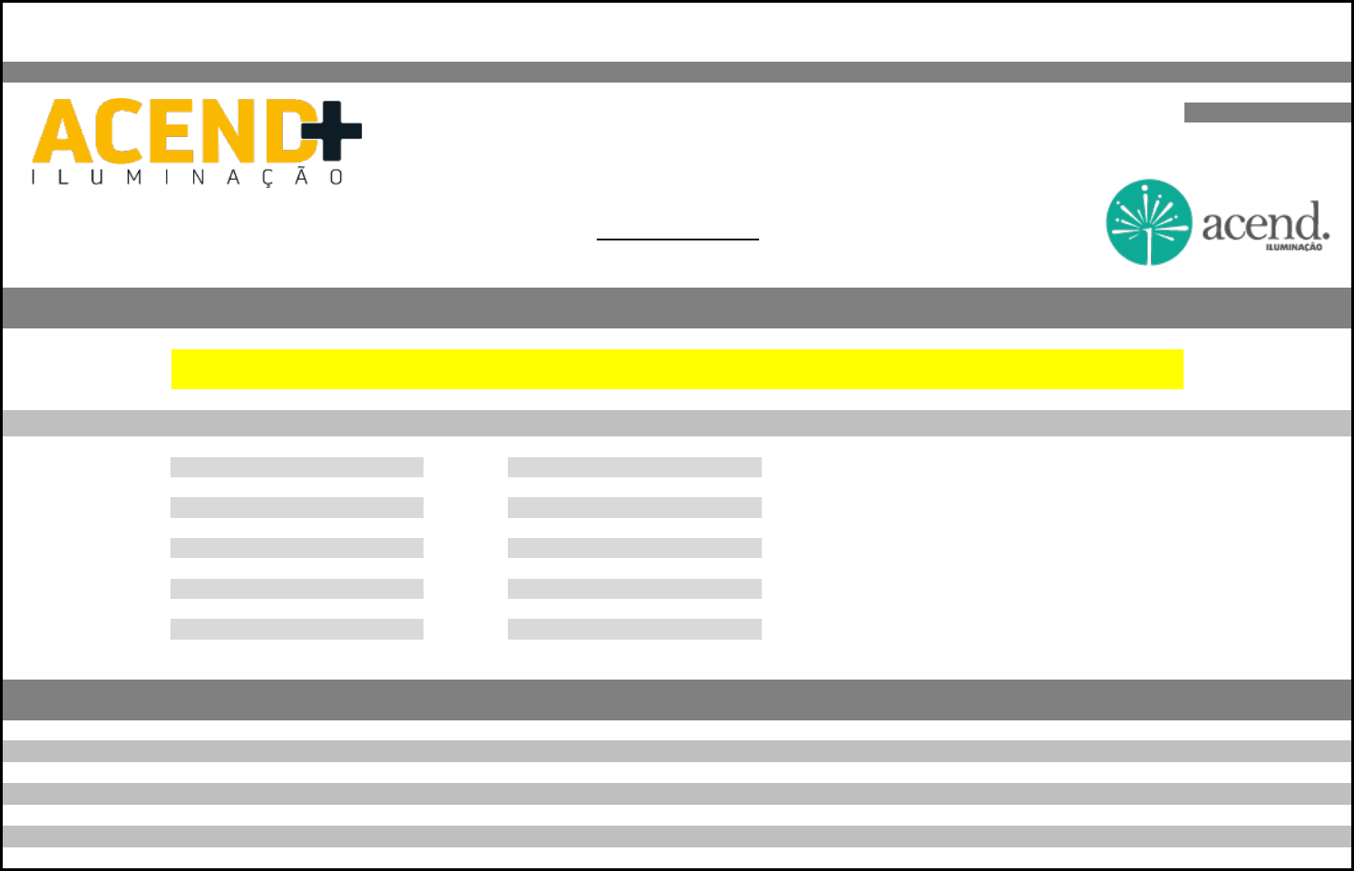 MG 20,21% AL 0,00% PR 18,88% MA 0,00% RJ 24,18% BA 0,00% PE 26,57% CE 0,00% DF 24,69% MS 0,00% RS 19,75% MT 0,00% AP 0,00% RN 0,00% SC 0,00% PB 0,00% SE 0,00% GO 0,00% 0,00% SHOWROOM: CONSULTAR *Substituição Tributária - Pagamento para 15 dias CONTATO: VENDAS: ACEND + ILUMINAÇÃO - DENISE TEL: (17)3361-4507 - (17) 99759-7887 E-mail: comercial01@acendmais.com.br PEDIDO / PARCELA MÍNIMA R$ 600,00 FRETE CIF ATÉ SÃO PAULO A PARTIR DE R$ 1.800,00 (REDESPACHO A PAGAR) PRAZOS PARA PAGAMENTO - COMPRAS DE: R$ 600,00 até R$ 1.199,00 - ATÉ 45 DIAS R$ 1.200,00 até R$ 1.799,00 - 30/60 DIAS R$ 1.800,00 até R$ 4.800,00 - 30/60/90 DIAS acima de R$ 4.801,00 - 30/60/90/120 DIAS IPI 15% ES SUBSTITUIÇÃO TRIBUTÁRIA: 20 DIAS ÚTEIS Tabela de Preços AINDA MAIS SURPREENDENTE REVISÃO 03 - 16 / FEVEREIRO / 2021 NCM 94051093 PREVISÃO DE FATURAMENTO / DESPACHO: PRODUTOS DA MARCA TB - TABACO - MDF CTE - CORTEN ES - ESCOVADO (VERNIZ) OC - OURO CHAMPAGNE (DOURADO) OV - OURO VELHO PC - PRETO CADILAC PF - PRETO FOSCO PR - PRATA PT - PRETO MICROTEXTURIZADO TB - TABACO MICROTEXTURIZADO (MARROM) IB - IMBUIA - MDF IP - IPÊ - MDF CHU - CHUMBO Tabela de Preços SURPREENDENTE COMO A LUZ GARANTIA DE PEÇAS E LED: 1 ANO CORES: BF - BRANCO FOSCO BG - BRANCO GEADA BR - BRANCO MICROTEXTURIZADO CA - CAPUCCINO CB - COBRE • Corpo em alumínio extrudado. • Pintura pó microtexturizada e líquida. • Difusor em acrílico fosco. • Produto com LED integrado. • Uso interno BR PT TB CTE Preço OC CB Preço 04507 04508 04509 04510 1.491,50R$ 04511 04512 1.939,00R$ 04517 04518 04519 04520 1.491,50R$ 04521 04522 1.939,00R$ BR/OC PT/OC BR/CB PT/CB Preço 04513 04514 04515 04516 1.715,00R$ 04523 04524 04525 04526 1.715,00R$ 250X1800X250 22W/2700K/2000LM 127V 220V250X1800X250 22W/2700K/2000LM 250X1800X250 22W/2700K/2000LM 127V 220V LUMINÁRIAS DE PISOLP CORMEDIDA C X A X P (MM) POT. / TEMP. / LUMENS TENSÃO CORMEDIDA C X A X P (MM) POT. / TEMP. / LUMENS TENSÃO LP GUARANI 250X1800X250 22W/2700K/2000LM LANÇAMENTO • Corpo em alumínio. • Pintura pó microtexturizada e líquida. • Uso interno BR PT TB CTE Preço OC CB Preço 04563 04564 04565 04566 1.428,50R$ 04567 04568 1.857,00R$ • Corpo em alumínio. • Pintura pó microtexturizada e líquida. • Uso interno • Corpo em alumínio repuxado. • Pintura pó microtexturizada e líquida. • Uso interno BR/OC PT/OC BR/CB PT/CB PC/OC BG/OC Preço 01482 01483 04450 03501 01073 01074 2.041,00R$ LANÇAMENTO 250X1500X250 1XT8 / 18W/LED LP SAARA SOQUETE G13 COR 326X1800 BULBO 9W LED 3XE27 COR LP COLORADO MEDIDA D X A (MM) LÂMPADAS E POTENCIA MAX. SOQUETE MEDIDA C X A X P (MM) LÂMPADAS E POTENCIA MAX. • Corpo em alumínio repuxado. • Pintura líquida. • Difusor em acrílico fosco. • Produto com LED integrado. • Uso interno BG/OC BG/CB PC/OC PC/CB Preço 04591 04592 04593 04594 1.341,50R$ 04479 04480 04481 04482 1.341,50R$ LANÇAMENTO 250X1500X250 22W/2700K/2000LM 127V 250X1500X250 22W/2700K/2000LM 220V LP ARQMULTI MEDIDA D X A (MM) POT. / TEMP. / LUMENS TENSÃO COR • Pintura pó microtexturizada. • Difusor em vidro transparente. • Produto com LED integrado. • Uso externo (interno). • IP 43. BR PT TB CTE Preço EXT / INT 03493 03494 03495 03496 231,50R$ EXT / INT 03497 03498 03499 03500 231,50R$ • Corpo em alumínio. • Pintura pó microtexturizada. • Difusor em vidro transparente. • Uso externo (interno). • IP 43. BR PT TB CTE Preço EXT / INT 04451 04452 04453 04454 58,00R$ AR ARANDELAS PAR16 50W/LED 2XGU10 COR 110X150X140 LED 22W/2700K/1772LM 127V AR MILCA 110X150X140 LED 22W/2700K/1772LM 220V Uso AR PARK Uso MEDIDA C X A X P (MM) LÂMPADAS E POTÊNCIA MAX. SOQUETE MEDIDA C X A X P (MM) POT. / TEMP. / LUMENS TENSÃO COR 85X150X90 • Corpo em alumínio. • Pintura pó microtexturizada. • Difusor em acrilico cristal. • Produto com LED integrado. • Uso externo (interno). • IP 43. BR PT TB CTE Preço EXT / INT 03516 03517 03518 03519 163,50R$ EXT / INT 03520 03521 03522 03523 163,50R$ • Corpo em alumínio. • Pintura pó microtexturizada. • Uso externo (interno). • IP 02. BR PT TB CTE Preço EXT / INT 04630 04631 04632 04633 909,50R$ AR LISBOA Uso MEDIDA C X A X P (MM) POT. / TEMP. / LUMENS TENSÃO LANÇAMENTO AR DRACO Uso MEDIDA C X A X P (MM) LÂMPADAS E POTÊNCIA MAX. SOQUETE COR 50X350X40 LED 11W/2700K/886LM 127V 50X350X40 LED 11W/2700K/886LM 220V 152X2000X191 AR111 50W/LED 1XGU10 COR • Corpo em alumínio. • Pintura pó microtexturizada. • Difusor em vidro transparente. • Uso externo (interno). • IP 43. BR PT TB CTE Preço EXT / INT 04378 04379 04380 04381 127,50R$ EXT / INT 04535 04536 04537 04538 137,00R$ • Corpo em alumínio. • Pintura pó microtexturizada. • Difusor em acrílico cristal em alguns modelos • Uso interno. BR PT TB CTE Preço INTERNO 04297 04298 04299 04300 148,50R$ INTERNO 04569 04570 04571 04572 210,50R$ INTERNO 04573 04574 04575 04576 377,00R$ COM DIFUSOR COM DIFUSOR 360X63X160 6XE27 650X40X150 1259X40X150 MEDIDA C X A X P (MM) SOQUETE COR G45 / LED LANÇAMENTO LANÇAMENTO LÂMPADAS E POTÊNCIA MAX. BULBO 9W LED G13 G13 DIFUSOR SEM DIFUSOR 300X100X90 1XE27 300X100X90 2XE27 LÂMPADAS E POTÊNCIA MAX. BULBO 9W LED 2XT8 10W LED 2XT8 18W LED Uso MEDIDA C X A X P (MM) SOQUETE COR AR BRAGA Uso AR COPAN • Corpo em alumínio. • Pintura pó microtexturizada e líquida. • Difusor em acrílico fosco. • Produto com LED integrado. • Uso interno. OC CHU/OC PF/OC OV/OC CB/BF Preço INTERNO 01 127V 03387 02077 03391 04254 04253 163,50R$ INTERNO 01 220V 03388 02078 03392 04257 04256 163,50R$ INTERNO 02 127V 03389 02079 03393 04260 04259 273,00R$ INTERNO 02 220V 03390 02080 03394 04263 04262 273,00R$ BR/OC PT/OC BR/CB PT/CB Preço INTERNO 01 127V 04802 04804 04806 04255 147,50R$ INTERNO 01 220V 04803 04805 04807 04258 147,50R$ INTERNO 02 127V 04808 04810 04812 04261 255,00R$ INTERNO 02 220V 04809 04811 04813 04264 255,00R$ AR ARQMULTI MEDIDA C X A X P (MM) 140X140X220 LED 11W/2700K/886LM MO