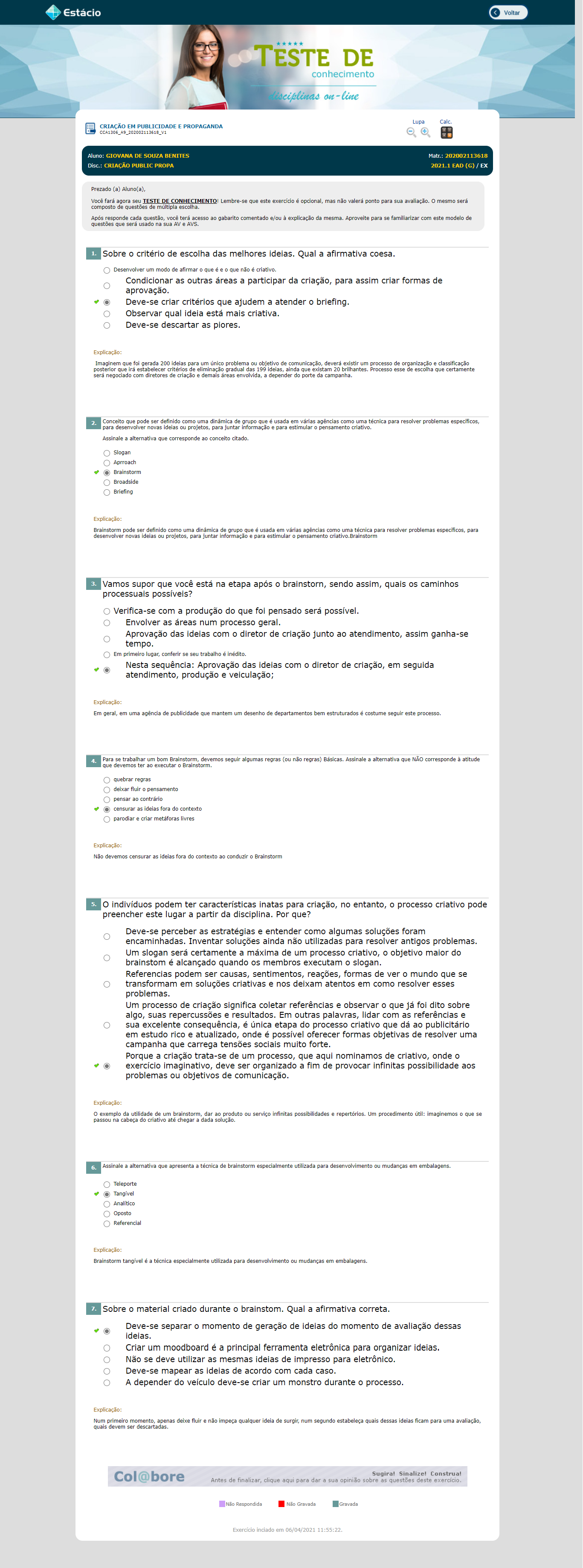 Para har um bom Brainstorm, devemos seguir algumas regras (ou não regras) Básicas. Assinale alternativa que NÃO corresponde atitude que devemos ter ao executar. Quebrar regras Deixar fluir pensamento Pensar contrário Censurar ideias fora do contexto Parodiar Criar metáforas livres