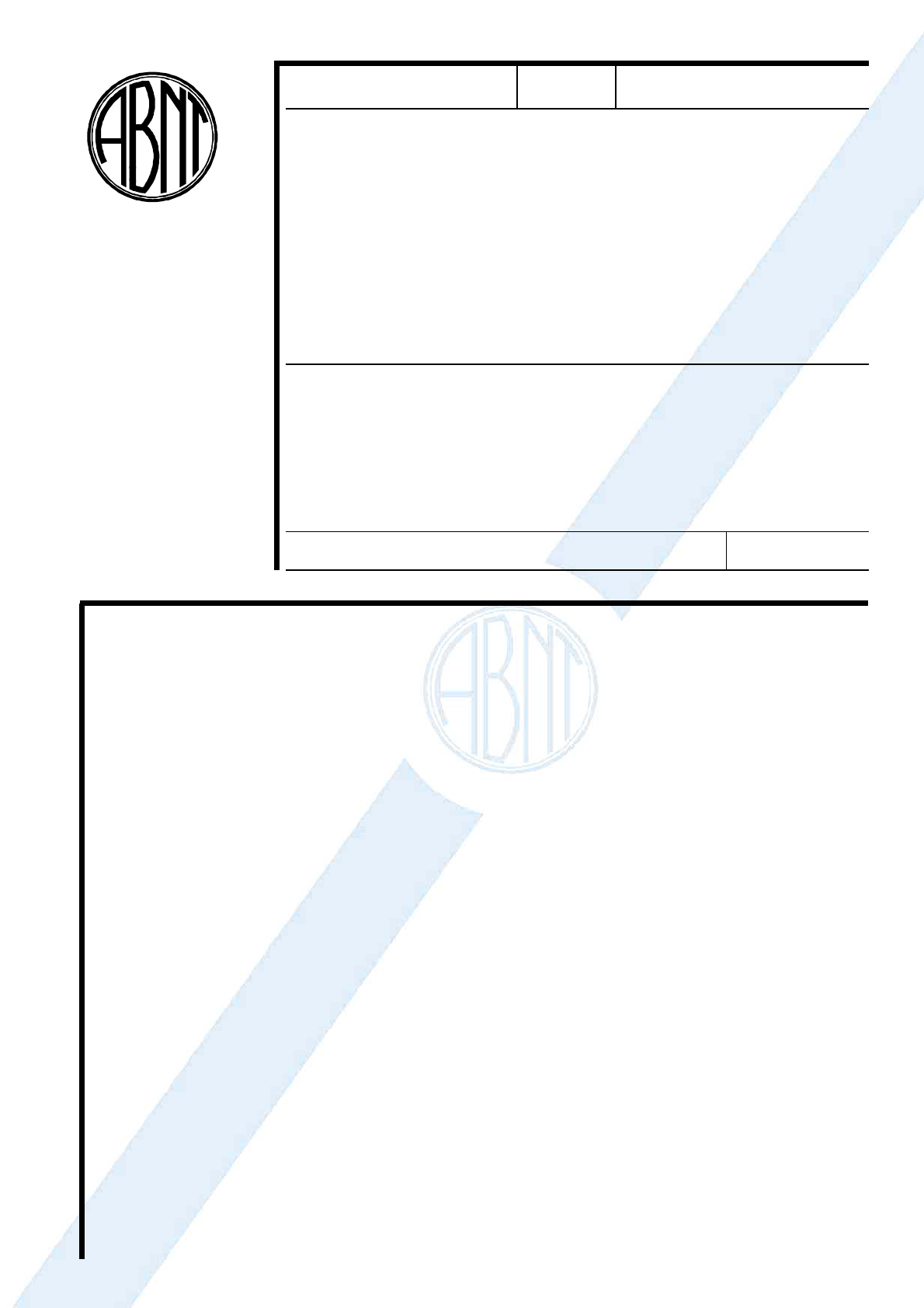 Sede: Rio de Janeiro Av. Treze de Maio, 13 / 28º andar CEP 20003-900 – Caixa Postal 1680 Rio de Janeiro – RJ Tel.: PABX (21) 210-3122 Fax: (21) 220-1762/220-6436 Endereço eletrônico: www.abnt.org.br ABNT – Associação Brasileira de Normas Técnicas Copyright © 2001, ABNT–Associação Brasileira de Normas Técnicas Printed in Brazil/ Impresso no Brasil Todos os direitos reservados MAIO 2001 NBR ISO 4230 Cossinete redondo para roscar manual ou à máquina - Roscas cônicas para tubos - Série R Origem: Projeto 04:002.02-088:2000 ABNT/CB-04 - Comitê Brasileiro de Máquinas e Equipamentos Mecânicos CE-04:002.02 - Comissão de Estudo de Ferramentas de Usinagem NBR ISO 4230 - Hand and machine-operated circular screwing dies for taper pipe threads - R series Descriptor: Circular screwing die Esta Norma é equivalente à ISO 4230:1987 Válida a partir de 29.06.2001 Palavra-chave: Cossinete redondo para roscar 2 páginas Sumário Prefácio 1 Objetivo 2 Referências normativas 3 Dimensões 4 Marcação Prefácio A ABNT - Associação Brasileira de Normas Técnicas - é o Fórum Nacional de Normalização. As Normas Brasileiras, cujo conteúdo é de responsabilidade dos Comitês Brasileiros (ABNT/CB) e dos Organismos de Normalização Setorial (ABNT/ONS), são elaboradas por Comissões de Estudo (CE), formadas por representantes dos setores envolvidos, delas fazendo parte: produtores, consumidores e neutros (universidades, laboratórios e outros). Os Projetos de Norma Brasileira, elaborados no âmbito dos ABNT/CB e ABNT/ONS, circulam para Consulta Pública entre os associados da ABNT e demais interessados. 1 Objetivo Esta Norma é um suplemento às NBR ISO 2568 e NBR ISO 4231 e especifica as dimensões dos cossinetes redondos para roscar manual ou à máquina, destinados à produção de roscas cônicas para tubos, série R, de acordo com a NBR NM-ISO 7-1. Com exceção do cossinete 1/16, as dimensões gerais desses cossinetes redondos (diâmetro, espessura e dimensões para fixação) estão de acordo com a NBR ISO 2568, a fim de permitir a operação manual dos cossinetes com auxílio dos de- sandadores definidos naquela Norma. 2 Referências normativas As normas relacionadas a seguir contêm disposições que, ao serem citadas neste texto, constituem prescrições para esta Norma. As edições indicadas estavam em vigor no momento desta publicação. Como toda norma está sujeita a revisão, recomenda-se àqueles que realizam acordos com base nesta que verifiquem a conveniência de se usarem as edições mais recentes das normas citadas a seguir. A ABNT possui a informação das normas em vigor em um dado momento. NBR NM-ISO 7-1:2000 - Rosca para tubos onde a junta de vedação sob pressão é feita pela rosca - Parte 1: Dimensões, tolerâncias e designação NBR ISO 2568:2001 - Cossinete redondo para roscar manual ou à máquina e desandador NBR ISO 4231:2001 - Cossinete redondo para roscar manual ou à máquina - Roscas paralelas para tubos - Série G 3 Dimensões As dimensões gerais são dadas na tabela da próxima página. NBR ISO 4230:20012 4 Marcação Os cossinetes em acordo com esta Norma devem ser marcados com a letra R, imediatamente seguida pela designação da rosca. Exemplo: Cossinete redondo para roscar, rosca cônica para tubo, série R, com designação 3/4, deve ser marcado como abaixo: R 3/4 NOTA - Onde os cossinetes concordam em todos os aspectos com esta Norma, o símbolo ISO pode ser incluído à marcação, ficando a critério do fabricante. Dimensões em milímetros Designaçã oda rosca Diâmetro nominal Passo ≈≈≈≈ D E E1 C b a Quantidade mínima de filetes completos Comprimento mínimo de rosca com perfil completo 1/16 7,723 0,907 30* 11* 10 1 5 1 6 1/8 5,6 1/8 9,728 0,907 30 11 10 1 5 1 6 1/8 5,6 1/4 13,157 1,337 38 14 14 1,2 6 1 6 1/4 8,4 3/8 16,662 1,337 45 18 15 1,2 6 1 6 1/2 8,8 1/2 20,955 1,814 55 22 19 1,5 8 2 6 1/4 11,4 3/4 26,441 1,814 55 22 20 1,5 8 2 7 12,7 1 33,249 2,309 65 25 24 1,8 8 2 6 1/4 14,5 1 1/4 41,91 2,309 75 30 26 1,8 8 2 7 1/4 16,8 1 ½ 47,803 2,309 90 36 26 2 8 2 7 1/4 16,8 2 59,614 2,309 105 36 31 2,5 10 2 9 1/8 21,1 * Exceção da tabela geral mostrada na NBR ISO 2568. NOTAS: 1 O entalhe em V, o diâmetro D1 e as folgas dos furos ficam a critério do fabricante. 2 O passo da rosca do cossinete para roscar será calculado com base em dois filetes. 3 Tolerâncias: - para cossinetes de precisão: - D: f10 - E: js 12 - Para cossinetes sem precisão: - D e E: as tolerâncias ficam a critério do fabricante. _________________