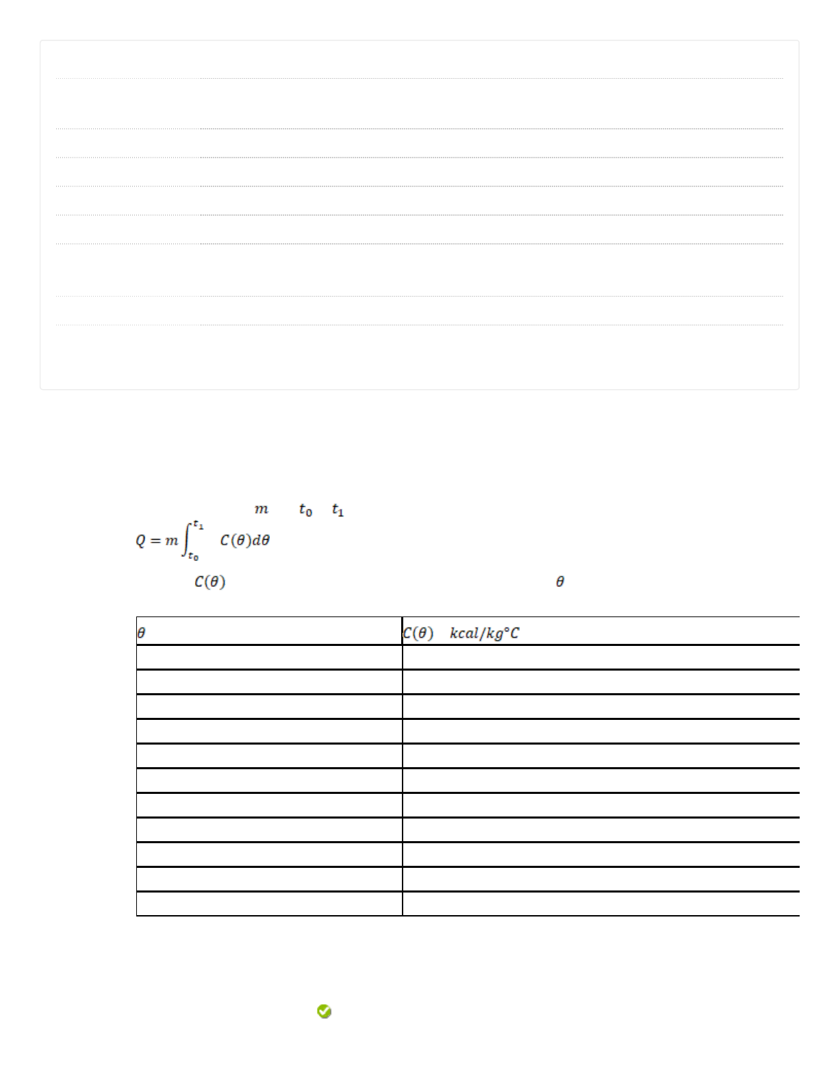 28/02/2021 Revisar envio do teste: ATIVIDADE 4 (A4) – GRA1593 ... https://fmu.blackboard.com/webapps/late-course_content_soap-BBLEARN/Controller?ACTION=OPEN_PLAYER&COURSE_ID=_667753_1&PAREN… 1/12 Usuário RODRIGO DA SILVA RAMOS Curso GRA1593 CÁLCULO NUMÉRICO COMPUTACIONAL GR0567211 - 202110.ead-29779046.06 Teste ATIVIDADE 4 (A4) Iniciado 28/02/21 21:04 Enviado 28/02/21 21:30 Status Completada Resultado da tentativa 9 em 10 pontos Tempo decorrido 26 minutos Resultados exibidos Respostas enviadas, Respostas corretas, Comentários Pergunta 1 Resposta Selecionada: Sabendo-se que a quantidade de calor necessária para elevar a temperatura de um certo corpo de massa de a é em que é o calor específico do corpo à temperatura . Considerando a tabela abaixo, calcule a quantidade de calor necessária para se elevar 15 kg de água de 20 °C a 80 °C. (°C) ( ) 0 999,8 10 999,6 20 998,1 30 995,4 40 992,3 50 988,2 60 983,2 70 977,7 80 971,5 90 965,6 100 958,9 Referência: BARROSO, L. C. et al . Cálculo numérico (com aplicações). 2. ed. São Paulo: Harbra, 1987, p. 272. 888240 kcal 1 em 1 pontos 28/02/2021 Revisar envio do teste: ATIVIDADE 4 (A4) – GRA1593 ... https://fmu.blackboard.com/webapps/late-course_content_soap-BBLEARN/Controller?ACTION=OPEN_PLAYER&COURSE_ID=_667753_1&PAREN… 2/12 Resposta Correta: Comentário da resposta: 888240 kcal Resposta correta. A alternativa está correta, pois aplicando a regra dos trapézios composta com , temos que Assim, arrumando e substituindo os pontos da tabela dada na questão, podemos calcular o valor de . 0 20 998,1 1 30 995,4 2 40 992,3 3 50 988,2 4 60 983,2 5 70 977,7 6 80 971,5 Consequentemente, kcal Pergunta 2 Resposta Selecionada: Resposta Correta: Comentário da resposta: (Franco, 2013, adaptado) Sem utilizar a fórmula do erro de truncamento, aproxime pela reg com 6 pontos distintos, o comprimento de arco da curva de a . Lem comprimento de arco de uma curva genérica do ponto ao ponto é Referência: Franco, Neide Maria Bertoldi. Cálculo Numérico. São Paulo: Editora Pearson, 20 11,05 11,05 Resposta correta. A alternativa está correta, pois aplicando a regra dos trapézios composta temos 1 em 1 pontos 28/02/2021 Revisar envio do teste: ATIVIDADE 4 (A4) – GRA1593 ... https://fmu.blackboard.com/webapps/late-course_content_soap-BBLEARN/Controller?ACTION=OPEN_PLAYER&COURSE_ID=_667753_1&PAREN… 3/12 Assim, arrumando e substituindo os pontos determinados a partir da lei da função do integ valor de . 0 1 6,082762 1 1,2 8,062257 2 1,4 10,04987 3 1,6 12,04159 4 1,8 14,03566 5 2 16,03121 Pergunta 3 Resposta Selecionada: Resposta Correta: Comentário A velocidade instantânea de uma motocicleta foi medida em vários momentos e registrada t (segundos) v (km/h) 0 20 120 22 240 23 360 25 480 30 600 31 720 32 840 40 960 45 1080 50 1200 65 Referência: Elaborado pelo autor. Uma vez que o motociclista não anotou a quilometragem da motocicleta e deseja calcular u percorrida, em metros, determine essa aproximação usando a regra dos trapézios composta tabela. 11350 11350 Resposta correta. A alternativa está correta, pois aplicando a regra dos trapézios composta 1 em 1 pontos 28/02/2021 Revisar envio do teste: ATIVIDADE 4 (A4) – GRA1593 ... https://fmu.blackboard.com/webapps/late-course_content_soap-BBLEARN/Controller?ACTION=OPEN_PLAYER&COURSE_ID=_667753_1&PAREN… 4/12 da resposta: Assim, arrumando e substituindo os pontos dados na tabela, podemos calcular o valor de 0 0 2 1 120 2 2 240 2 3 360 2 4 480 3 5 600 3 6 720 3 7 840 4 8 960 4 9 1080 5 10 1200 6 Pergunta 4 Para Barroso (1987) uma linha reta foi traçada de modo a tangenciar as margens de um rio nos pontos A e B. Para medir a área de um trecho entre o rio e a reta AB foram traçadas perpendiculares em relação a AB com um intervalo de 0,06 m. Usando os dados tabelados e a regra dos trapézios simples, calcule uma aproximação para a área da região compreendida entre as perpendiculares 6 e 7. Perpendiculares Comprimento (metros) 1 3,45 2 4,68 3 4,79 4 5,13 5 5,68 6 5,97 7 6,85 8 5,71 1 em 1 pontos 28/02/2021 Revisar envio do teste: ATIVIDADE 4 (A4) – GRA1593 ... https://fmu.blackboard.com/webapps/late-course_content_soap-BBLEARN/Controller?ACTION=OPEN_PLAYER&COURSE_ID=_667753_1&PAREN… 5/12 Resposta Selecionada: Resposta Correta: Comentário da resposta: 9 5,34 10 4,97 11 3,44 Referência: BARROSO, L. C. et al . Cálculo numérico (com aplicações). 2. ed. São Paulo: Harbra, 1987, p. 273. 0,38 metros quadrados 0,38 metros quadrados Resposta correta. A alternativa está correta, pois aplicando a regra dos trapézios simples, temos Assim, arrumando e substituindo os pontos dados na tabela, podemos calcular o valor de metros quadrados. 0 0 5,97 1 0,06 6,85 Pergunta 5 Resposta Selecionada: Resposta Correta: Comentário da resposta: Quando desejamos saber a precisão que estamos trabalhando com a regra dos trapézios composta, podemos utilizar a expressão para o erro de truncamento. Em vista disso, determine uma cota para o erro máximo de truncamento cometido no cálculo da integral , quando utilizamos a regra dos trapézios composta com 7 pontos distintos. Resposta correta. A alternativa está correta, pois aplicando a regra dos trapézios composta com 7 pontos distintos, , temos que a fórmula do erro de truncamento é dada por: Portanto, uma cota para o erro máximo de truncamento é igual a . 1 em 1 pontos 28/02/2021 Revisar envio do teste: ATIVIDADE 4 (A4) – GRA1593 ... https://fmu.blackboard.com/webapps/late-course_content_soap-BBLEARN/Controller?ACTION=OPEN_PLAYER&COURSE_ID=_667753_1&PAREN… 6/12 Pergunta 6 Resposta Selecionada: Resposta Correta: Comentário da resposta: Franco (2013) Uma aproximação para a velocidade em função do tempo de um paraquedista em queda livre na atmosfera é dada pela equação: em que é a aceleração da gravidade (9,8 ), é a massa do paraquedista (75 kg), é o coeficiente de arrasto (13,4 ) e é o tempo (em ) a partir do início d