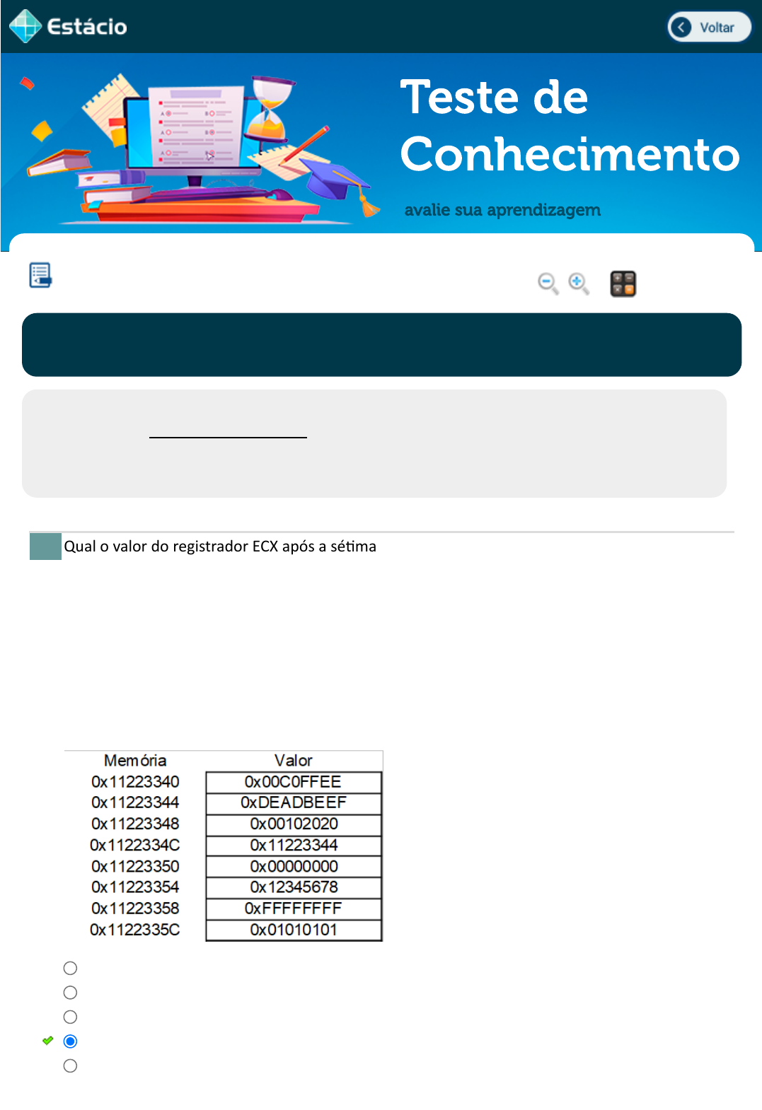 Qual o valor do registrador ECX após a sé�ma instrução?