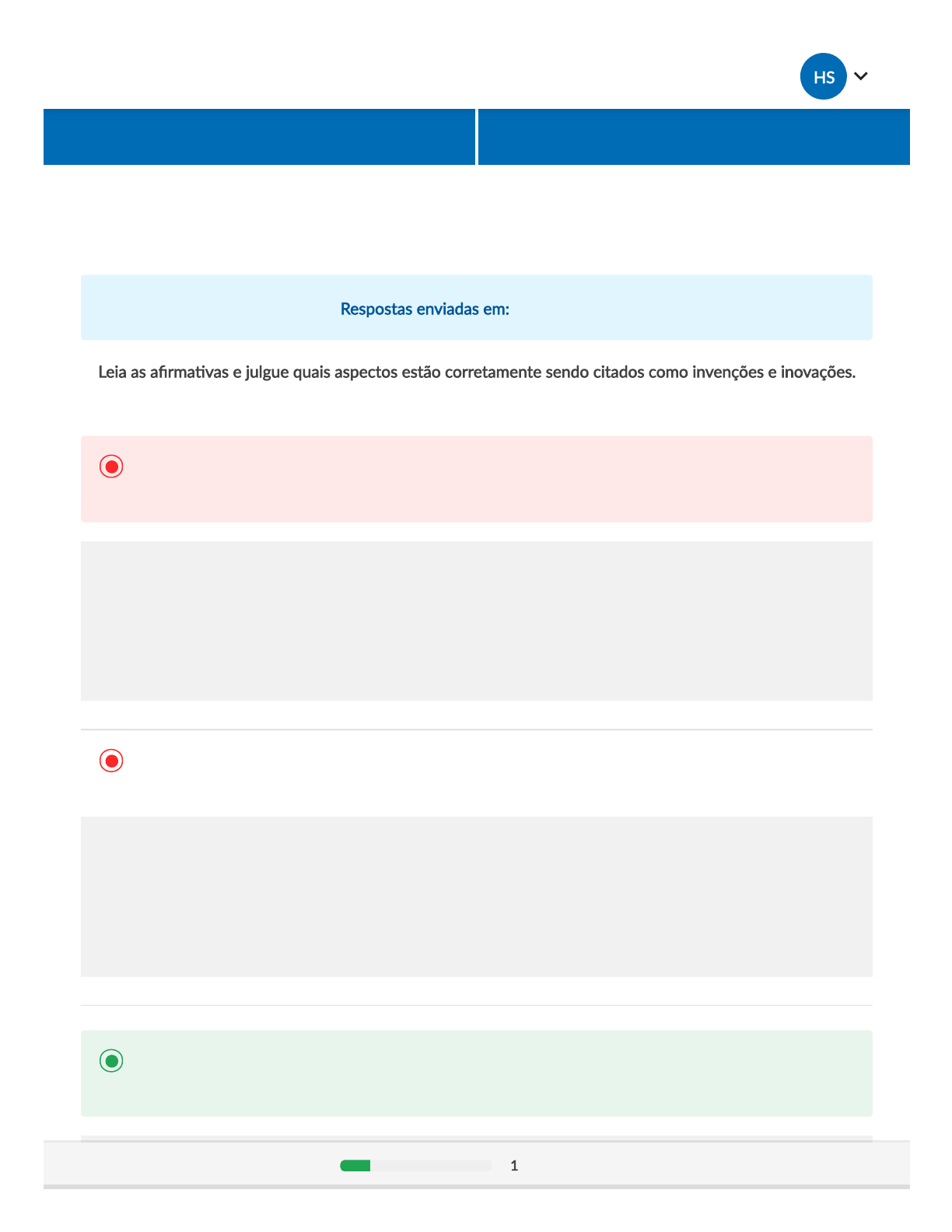 09/04/2021 Inovações radicais, incrementais e disruptivas https://gaia-lite.plataforma.grupoa.education/lite/default/3245902 1/2 Exercícios Respostas enviadas em: 08/04/2021 18:14 1. Leia as afirma�vas e julgue quais aspectos estão corretamente sendo citados como invenções e inovações. Você não acertou! A. Invenção é o processo de ideação em que se busca a solução de um problema. Já inovação é o processo de proto�pagem, ou seja, tornar a invenção em algo palpável. Por que esta resposta não é correta? Invenção é o resultado de um processo cria�vo iniciado do zero que não possui uma finalidade comercial definida até então. Ela pode buscar solucionar um problema ou ocorrer sem querer. É comum a confusão entre os conceitos de invenção e inovação, mas, lembre-se que inovação só existe após o processo de aprimoramento de uma invenção e lançamento no mercado, agregando valor para sociedade. B. Invenção é inserir no mercado um produto que agregue valor. Já inovação é fazer algo novo aproveitando processos já existentes. Por que esta resposta não é correta? Invenção é o resultado de um processo cria�vo iniciado do zero que não possui uma finalidade comercial definida até então. Ela pode buscar solucionar um problema ou ocorrer sem querer. É comum a confusão entre os conceitos de invenção e inovação, mas, lembre-se que inovação só existe após o processo de aprimoramento de uma invenção e lançamento no mercado, agregando valor para sociedade. Resposta correta C. Invenção é gerar uma ideia quando não há nada, encontrando na prá�ca a solução de um problema. Já inovação é implementar novas ideias para criar valor para uma organização. Por que esta resposta é a correta? ီ 1 de 5 perguntas Anterior Próximoଡ ଣ ͜ HS ŀ 09/04/2021 Inovações radicais, incrementais e disruptivas https://gaia-lite.plataforma.grupoa.education/lite/default/3245902 2/2 Invenção é o resultado de um processo cria�vo iniciado do zero que não possui uma finalidade comercial definida até então. Ela pode buscar solucionar um problema ou ocorrer sem querer. É comum a confusão entre os conceitos de invenção e inovação, mas, lembre-se que inovação só existe após o processo de aprimoramento de uma invenção e lançamento no mercado, agregando valor para sociedade. D. Invenção pode ser uma mudança ou a alteração em produtos e serviços. Já inovação é a criação par�r do zero em relação a uma ideia. Por que esta resposta não é correta? Invenção é o resultado de um processo cria�vo iniciado do zero que não possui uma finalidade comercial definida até então. Ela pode buscar solucionar um problema ou ocorrer sem querer. É comum a confusão entre os conceitos de invenção e inovação, mas, lembre-se que inovação só existe após o processo de aprimoramento de uma invenção e lançamento no mercado, agregando valor para sociedade. E. Invenção pode ser uma mudança ou a alteração em produtos ou serviços. Já a inovação pode ser um produto criado do zero sem ter o seu lançamento no mercado. Por que esta resposta não é correta? Invenção é o resultado de um processo cria�vo iniciado do zero que não possui uma finalidade comercial definida até então. Ela pode buscar solucionar um problema ou ocorrer sem querer. É comum a confusão entre os conceitos de invenção e inovação, mas, lembre-se que inovação só existe após o processo de aprimoramento de uma invenção e lançamento no mercado, agregando valor para sociedade. PRÓXIMA 1 de 5 perguntas Anterior Próximoଡ ଣ ͜ HS ŀ 09/04/2021 Inovações radicais, incrementais e disruptivas https://gaia-lite.plataforma.grupoa.education/lite/default/3245902 1/2 Exercícios Respostas enviadas em: 08/04/2021 18:14 2. A realização de uma pequena alteração em um produto ou serviço representa qual grau de inovação? A. Disrup�va. Por que esta resposta não é correta? A inovação incremental reflete pequenas melhorias con�nuas em produtos ou em linhas de produtos. Geralmente, representam pequenos avanços nos bene�cios percebidos pelo consumidor e não modificam, de forma expressiva, a forma como o produto é consumido ou o modelo de negócio. B. Transformacional. Por que esta resposta não é correta? A inovação incremental reflete pequenas melhorias con�nuas em produtos ou em linhas de produtos. Geralmente, representam pequenos avanços nos bene�cios percebidos pelo consumidor e não modificam, de forma expressiva, a forma como o produto é consumido ou o modelo de negócio. Você acertou! C. Incremental. Por que esta resposta é a correta? A inovação incremental reflete pequenas melhorias con�nuas em produtos ou em linhas de produtos. Geralmente, representam pequenos avanços nos bene�cios percebidos pelo consumidor e não modificam, de forma expressiva, a forma como o produto é consumido ou o modelo de negócio. D. Radical. ီ Ĵ 2 de 5 perguntas Anterior Próximoଡ ଣ ͜ HS ŀ 09/04/2021 Inovações radicais, incrementais e disruptivas https://gaia-lite.plataforma.grupoa.education/lite/default/3245902 2/2 Por que esta resposta não é correta? A inovação incremental reflete pequenas melhorias con�nuas em produtos ou em linhas de produtos. Geralmente, representam pequenos avanços nos bene�cios percebidos pelo consumidor e não modificam, de forma expressiva, a forma como o produto é consumido ou o modelo de negócio. E. Proposital. Por que esta resposta não é correta? A inovação incremental reflete pequenas melhorias con�nuas em produtos ou em linhas de produtos. Geralmente, representam pequenos avanços nos bene�cios percebidos pelo consumidor e não modificam, de forma expressiva, a forma como o produto é consumido ou o modelo de negócio. VOLTARŁ PRÓXIMA 2 de 5 perguntas Anterior Próximoଡ ଣ ͜ HS ŀ 09/04/2021 Inovações radicais, incrementais e disruptivas https://gaia-