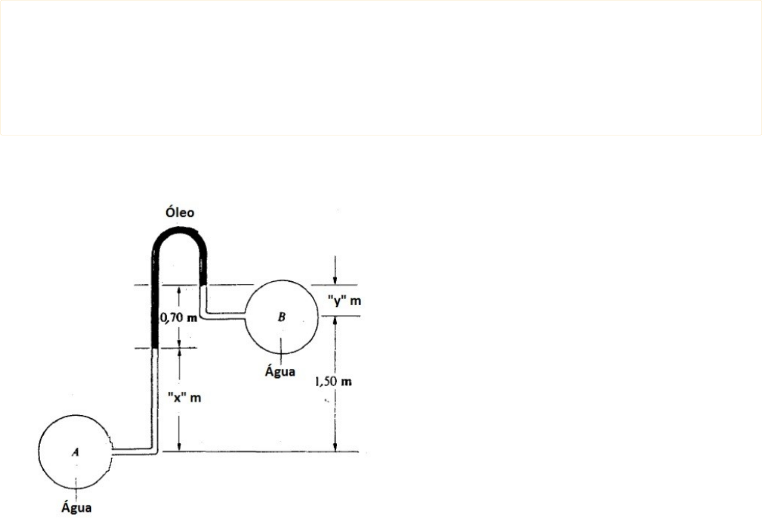 Acadêmico: Jeremias de Souza Barbosa (1627702) Disciplina: Fenômenos de Transporte (EEL12) Avaliação: Avaliação Final (Discursiva) - Individual Semipresencial ( Cod.:670610) ( peso.:4,00) Prova: 29548706 Nota da Prova: - 1. O manômetro é o instrumento utilizado na mecânica dos fluidos para se efetuar a medição da pressão manométrica. Calcule a diferença de pressão entre os pontos "A" e "B" no manômetro diferencial ilustrado na figura a seguir. As densidades da água e do óleo são 1000 kg/m³ e 800 kg/m³, respectivamente. Adote g=10 m/s². UNIASSELVI - Centro Universitário Leonardo Da Vinci - Portal do Aluno - Portal do Aluno - Grup... https://portaldoalunoead.uniasselvi.com.br/ava/notas/request_gabarito_n2.php 1 of 2 09/04/2021 21:16 Resposta Esperada: Conforme figura: 2. O fenômeno de transferência de massa é regido pela existência de um gradiente de concentração de espécie química. Esta força motriz da transferência de massa é análoga ao gradiente de temperatura do fenômeno de transferência de calor. Com base nisto, dê exemplos práticos de transferência de massa por difusão: a) Líquido-para-gás. b) Sólido-para-líquido. c) Sólido-para-gás. d) Gás-para-líquido. Resposta Esperada: Alguns exemplos de diferentes tipos de processos de difusão de massa: a) Líquido-para-gás: um galão de gasolina é deixado aberto. A gasolina evapora e se difunde no ar atmosférico. b) Sólido-para-líquido: uma colher de açúcar é colocada dentro de uma xícara de café. O açúcar no fundo da xícara eventualmente se difundirá no café. c) Sólido-para-gás: naftalina dentro do armário sublimará e difundirá no ar atmosférico. d) Gás-para-líquido: ar dissolvido na água em um escoamento em tubulação. UNIASSELVI - Centro Universitário Leonardo Da Vinci - Portal do Aluno - Portal do Aluno - Grup... https://portaldoalunoead.uniasselvi.com.br/ava/notas/request_gabarito_n2.php 2 of 2 09/04/2021 21:16