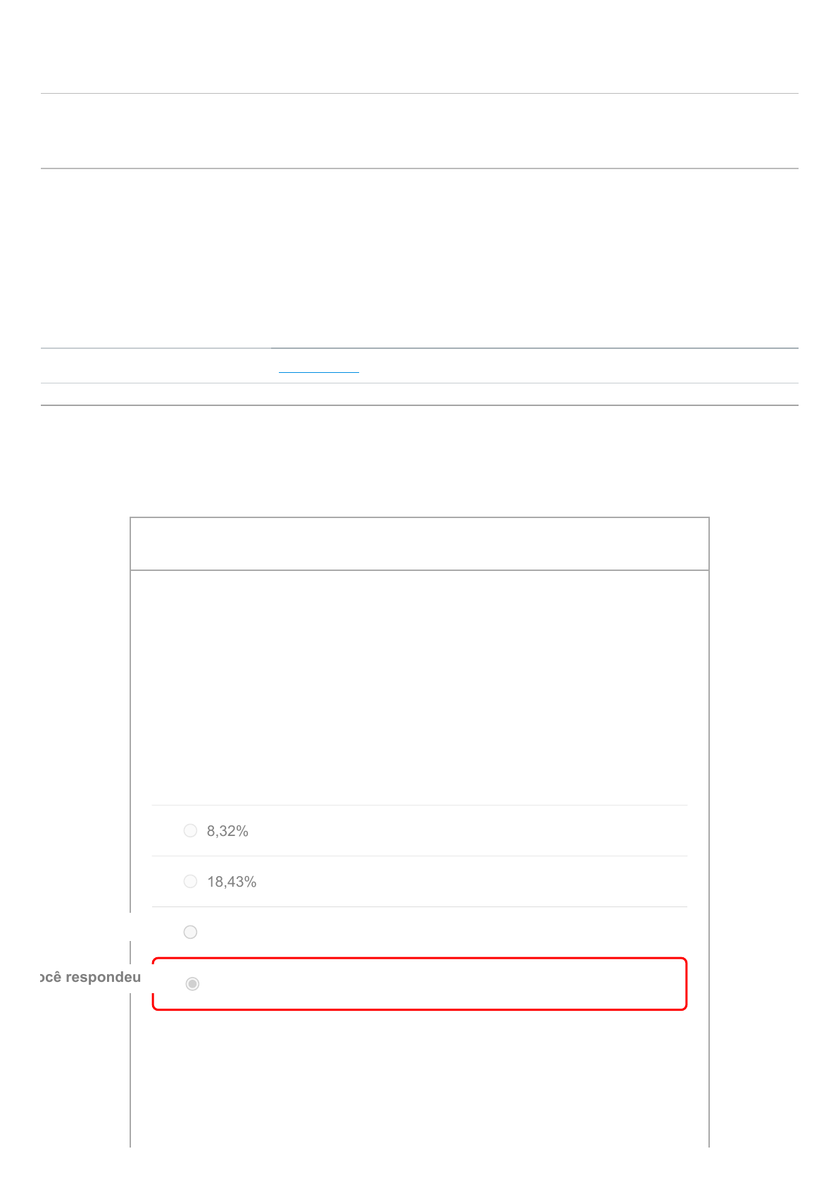 10/04/2021 Atividade 02 Objetiva: Estatística e Probabilidade - Turma 1- 2021/1 https://pucminas.instructure.com/courses/48808/quizzes/121417 1/6 Atividade 02 Objetiva Entrega 8 mar em 23:59 Pontos 3 Perguntas 5 Disponível 18 fev em 0:00 - 8 mar em 23:59 19 dias Limite de tempo Nenhum Este teste foi travado 8 mar em 23:59. Histórico de tentativas Tentativa Tempo Pontuação MAIS RECENTE Tentativa 1 142 minutos 1,2 de 3 Pontuação deste teste: 1,2 de 3 Enviado 8 mar em 22:48 Esta tentativa levou 142 minutos. 0 / 0,6 ptsPergunta 1 A porcentagem de carros com defeito entregue no mercado por certa montadora é historicamente estimada em 8%. A produção da montadora vem de três fabricas distintas, da matriz A e das filiais B e C, nas seguintes proporções: 55%, 30% e 15%, respectivamente. Sabe-se que a proporção de defeitos da matriz A é o dobro da filial B e, da filial B é o triplo da filial C. A porcentagem de defeito da matriz A é aproximadamente: 8,32% 18,43% 11,04% esposta corretaesposta correta 5,52% ocê respondeuocê respondeu https://pucminas.instructure.com/courses/48808/quizzes/121417/history?version=1 10/04/2021 Atividade 02 Objetiva: Estatística e Probabilidade - Turma 1- 2021/1 https://pucminas.instructure.com/courses/48808/quizzes/121417 2/6 0,6 / 0,6 ptsPergunta 2 Se A e B forem dois eventos tal que, P(A)=0,2, P(B)=p e =0,6. Os valores de p para as seguintes situações: (1) A e B são mutuamente exclusivos; (2) A e B são independentes, são respectivamente: 0,4; 0,3 0,4; 0,5 Correto!Correto! 0,3; 0,4 0,5; 0,4 10/04/2021 Atividade 02 Objetiva: Estatística e Probabilidade - Turma 1- 2021/1 https://pucminas.instructure.com/courses/48808/quizzes/121417 3/6 0 / 0,6 ptsPergunta 3 Um circuito opera somente se houver um caminho de dispositivos funcionais da esquerda para a direita. A probabilidade de cada dispositivo falhar é mostrada no gráfico a seguir: Supondo que os dispositivos falhem independentemente a probabilidade de o circuito operar é aproximadamente: 0,988 esposta corretaesposta correta 0,995 ocê respondeuocê respondeu 0,978 0,998 10/04/2021 Atividade 02 Objetiva: Estatística e Probabilidade - Turma 1- 2021/1 https://pucminas.instructure.com/courses/48808/quizzes/121417 4/6 0,6 / 0,6 ptsPergunta 4 Um circuito opera somente se houver um caminho de dispositivos funcionais da esquerda para a direita. A probabilidade de cada dispositivo falhar é mostrada no gráfico a seguir: Supondo que os dispositivos falhem independentemente a probabilidade de o circuito operar é: 0,998 Correto!Correto! 0,985 10/04/2021 Atividade 02 Objetiva: Estatística e Probabilidade - Turma 1- 2021/1 https://pucminas.instructure.com/courses/48808/quizzes/121417 5/6 0,980 0,958 0 / 0,6 ptsPergunta 5 Em uma fábrica de dispositivos eletrônicos, as máquinas A, B e C produzem 25%, 35% e 40% do total, respectivamente. Da produção de cada máquina 5%, 4% e 2%, respectivamente, são dispositivos defeituosos. Escolhe-se ao acaso um dispositivo e verifica-se que é defeituoso. A probabilidade de que o dispositivo venha da máquina B é aproximadamente: 52,3% 40,6% esposta corretaesposta correta 14,0% ocê respondeuocê respondeu 36,2% 10/04/2021 Atividade 02 Objetiva: Estatística e Probabilidade - Turma 1- 2021/1 https://pucminas.instructure.com/courses/48808/quizzes/121417 6/6 Pontuação do teste: 1,2 de 3