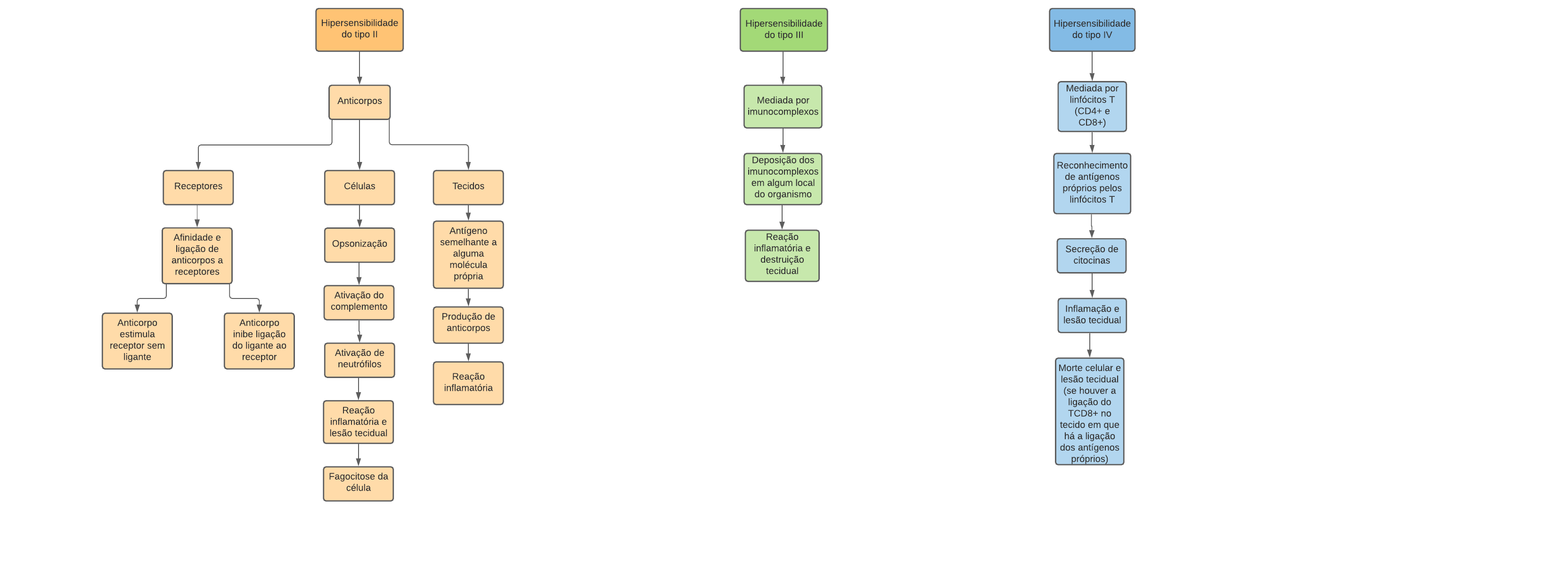 Hipersensibilidade do tipo II Anticorpos Células TecidosReceptores Opsonização Ativação do complemento Ativação de neutrófilos Reação inflamatória e lesão tecidual Fagocitose da célula Antígeno semelhante a alguma molécula própria Produção de anticorpos Reação inflamatória Afinidade e ligação de anticorpos a receptores Anticorpo estimula receptor sem ligante Anticorpo inibe ligação do ligante ao receptor Hipersensibilidade do tipo III Mediada por imunocomplexos Deposição dos imunocomplexos em algum local do organismo Reação inflamatória e destruição tecidual Hipersensibilidade do tipo IV Mediada por linfócitos T (CD4+ e CD8+) Reconhecimento de antígenos próprios pelos linfócitos T Secreção de citocinas Inflamação e lesão tecidual Morte celular e lesão tecidual (se houver a ligação do TCD8+ no tecido em que há a ligação dos antígenos próprios) Hipersensibilidade II, III e IV Página 1