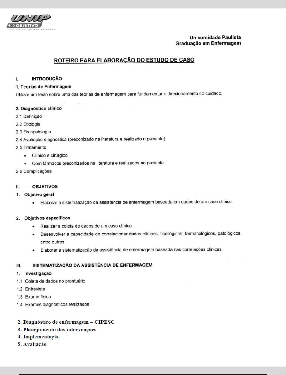 CURSO DE ENFERMAGEM- CAMPUS JUNDIAÍ ED – estudo de caso O Estudo de Caso deverá estar formatado conforme normas Vancouver