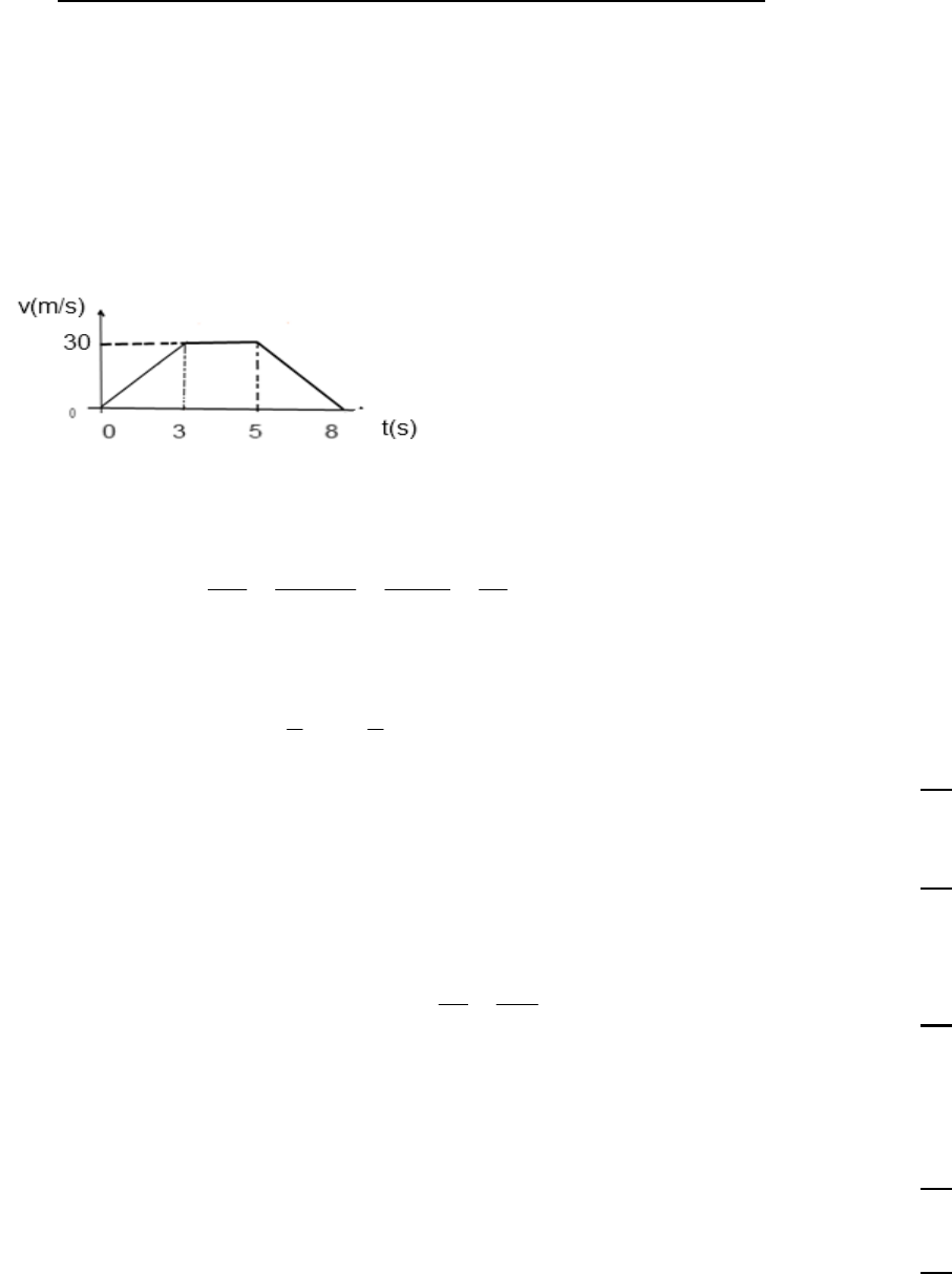 2011/10ª Classe / Guia de Correcção de Exame de Física/ 1ª Época Perg. Resposta Cotação Parc. Tot. 1. a) (0-3)s - M.R.U.V(acelerado); (3-5)s - M.R.U. b) c) Dados: (0-3)s ∆t=3s (0,5) (0,5) (0,5) V0 = 0 m/s Vf = 30 m/s S? (0,5) (0,5) (0,5) 2x0,5 1,0 3,0 5,0 2. C inter-fixa, inter-resistente, inter-potente. 1,0 1,0 3. Dados: M = 240N.m F = 480N (0,5) (0,5) d = b ? 1,0 1,0 4. A condução. 0,5 0,5 5. C 14ºC 1,5 1,5 2 0 0 /10 3 30 03 030 sm tt VV t V a f f == − − = − − = ∆ ∆ = mats 459.53.10. 2 1 2 1 22 ==== m F M bbFM 5,0 480 240 . ===⇒= 2011/10ª Classe / Guia de Correcção de Exame de Física/ 1ª Época Perg. Resposta Cotação Parc. Tot. 6. a) Dados: R1= 2 Ω, R2= 3 Ω, R3= 2 Ω, R4 = 1Ω, R5= 4 Ω RT=? RT = R1 + R2+R3+ R4 + R5 = 2+3+2+1+4= 12Ω ( 0,5) (0,5) (0,5) b) Dados: IT = 2A VxxIRV I V R TTT T T 24122 ===⇒= VT? ( 0,5) (0,5) (0,5) c) Nenhuma das lâmpadas permanecerá acesa (todas se apagam). 1,5 1,5 1,0 4,0 7. A F B V C F D V E F 0,5 1,0 0,5 1,0 0,5 3,5 8. a) ymáx = 12/2=6 cm b) 2.λ = 60cm ⇒ λ= 60/2= 30 cm = 0,30 m (0,5) (0,5) c) Dados: f = 60 Hz λ= 0,30 m ( 0,5) (0,5) (0,5) (0,5) V? 0,5 1,0 2,0 3,5 smxfV /1860.3,0 === λ Hz f T 60 11 ==