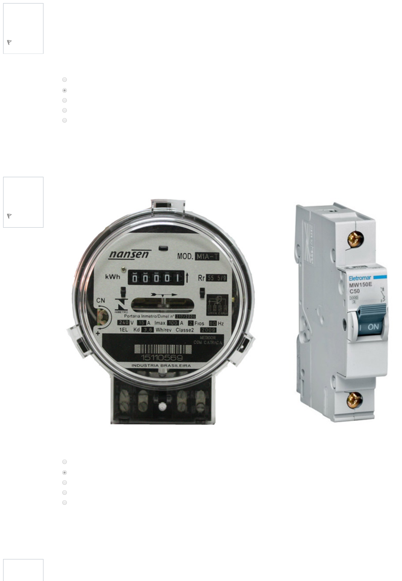 Questão 1 Correto Atingiu 20,00 de 20,00 Marcar questão Questão 2 Correto Atingiu 20,00 de 20,00 Marcar questão Questão 3 Correto Um aluno do curso de Eletricidade Básica Online possui um imóvel monofásico com tensão em 127V. Em um final de semana de muito calor, esse aluno comprou um aparelho condicionador de ar com tensão em 220V. Para que esse aparelho funcione corretamente, quais das ações abaixo podem ser tomadas? I. Solicitar o aumento de carga junto à concessionária, atualizando seu ramal de entrada para bifásico 220/127V. II. Não é possível ligar esse aparelho, em hipótese alguma. III. Não há problemas para a ligação direta desse aparelho na rede monofásica em 127V. IV. Utilizar um autotransformador 220/127V. Escolha uma: a. Todas as alternativas. b. I e IV. c. I e II. d. III e IV. e. II e IV. Sua resposta está correta. A resposta correta é: I e IV.. Um aluno do curso de Eletricidade Básica Online percebeu que, no ramal de entrada de sua residência estão instalados os seguintes dispositivos abaixo: Sabendo-se que, o disjuntor Eletromar MW150E C50, tem capacidade de 50A, qual a potência disponibilizada para esse aluno em sua residência? Escolha uma: a. 24.000W b. 11.000W. c. 12.000W. d. 22.000W. e. 3.600W. Sua resposta está correta. A resposta correta é: 11.000W.. Analise a fatura de energia elétrica abaixo para responder as questões a seguir. Atingiu 20,00 de 20,00 Marcar questão Questão 4 Correto Atingiu 20,00 de 20,00 Marcar questão Questão 5 Correto Atingiu 20,00 de 20,00 Marcar questão Qual a quantidade de fases dessa unidade consumidora, a tensão nominal e o consumo total acumulado (kWh) desse consumidor residencial, respectivamente? Escolha uma: a. Monofásico / 127V / 183kWh. b. Monofásico / 127V / 101kWh. c. Bifásico / 127V / 183kWh. d. Monofásico / 127V / 82kWh. e. Bifásico / 220 / 101kWh. Sua resposta está correta. A resposta correta é: Monofásico / 127V / 183kWh.. O que é tensão de fase? Escolha uma: a. O valor de tensão de um condutor energizado sem qualquer relação a outro condutor elétrico. b. Nenhuma das anteriores. c. O valor de tensão de um condutor energizado em relação ao valor do condutor neutro. d. O valor de tensão de um condutor energizado em relação ao valor de outro condutor energizado. e. O valor de tensão de um condutor energizado da rede primária em relação ao valor de um condutor energizado da rede secundária. Sua resposta está correta. A resposta correta é: O valor de tensão de um condutor energizado em relação ao valor do condutor neutro.. O que é corrente de linha? Escolha uma: a. A corrente que é transmitida através de um único condutor elétrico. b. A corrente que é transmitida apenas quando se tem tensões de fase. c. A corrente que é mensurada entre um condutor energizado e o condutor neutro. d. Nenhuma das anteriores. e. A corrente que é transmitida apenas quando se tem tensões de linha. Sua resposta está correta. A resposta correta é: A corrente que é transmitida através de um único condutor elétrico.