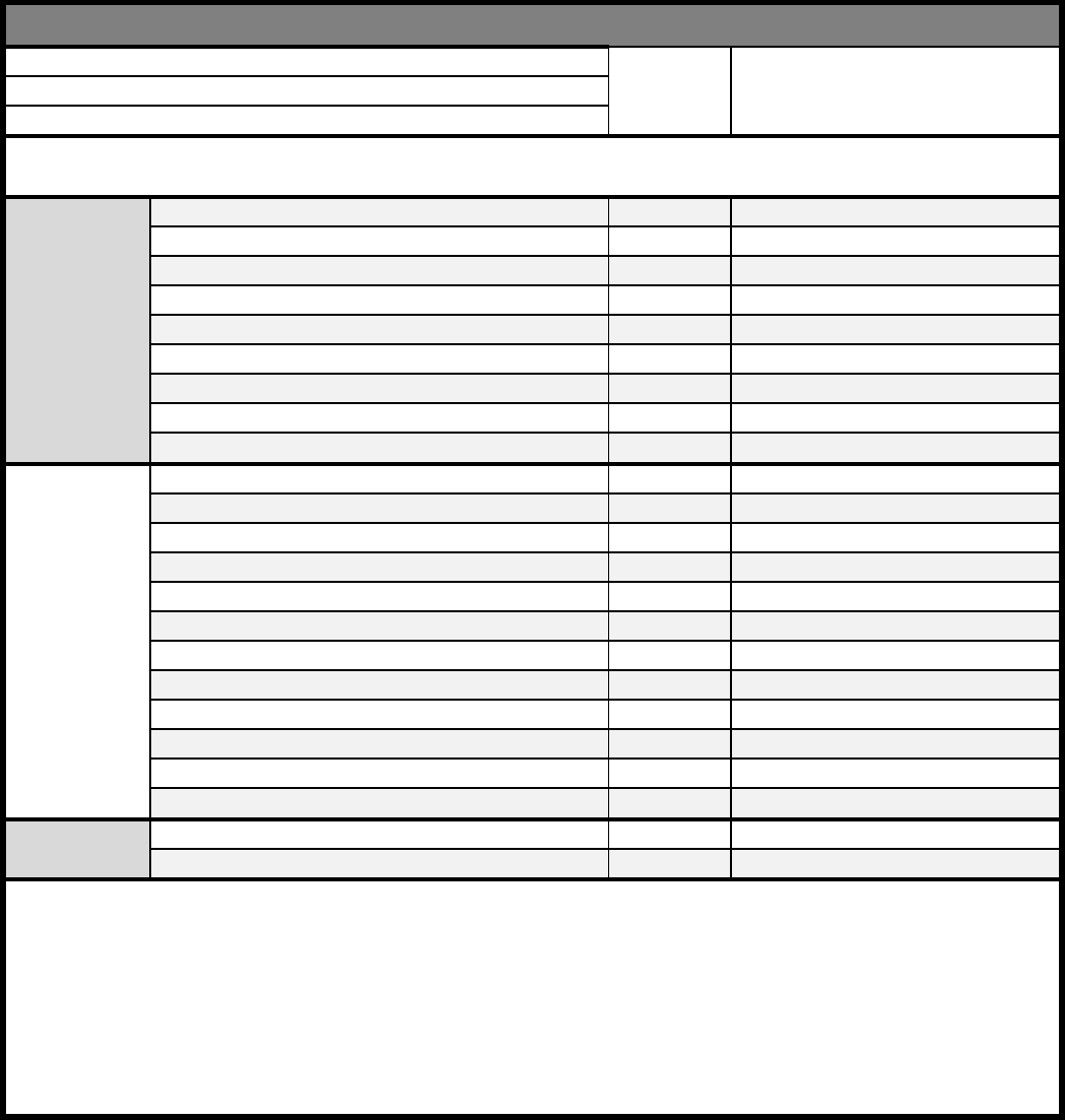 ISF-P MD-0015 MP-FI Data Periodicidade: SEMESTRAL __/__/____ Revisão: IN1 Inspeção do display IN2 Conexões e apertos IN3 Ligação ao aterramento IN4 Prensa cabo IN5 Vedação IN6 Danos mecânicos aparentes IN7 Exaustores internos (se aplicável) IN8 Dissipadores de calor IN9 Temperatura do Local PM1 Terminais entrada C.C. PM2 Fusiveis de strings PM3 Seccionador C.C. PM4 Barramentos de ligação C.A. PM5 Seccionador AC do(s) inveror(es) PM6 Seccionador geral de inversores PM7 DPS PM8 DR (se possuir) PM9 Danos mecânicos no quadro AC PM10 Vedação quadro elétrico AC PM11 Medidor de energia elétrica PM12 Seccionamento visível Co ne xã o à Re de Outros Observações: SituaçãoEquipamento Processo Operação de manutenção Observações In ve rs or Ficha de inspeção preventiva - Sistema Conectado à Rede Instalação: Cliente: Técnico: aetneo@hotmail.com Ronilson di Souza