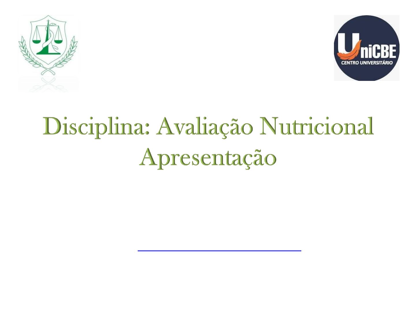 Profa Dra Glauciane Lacerda Miranda profadraglaucianelacerda@gmail.com mailto:profadraglaucianelacerda@gmail.com CONTEÚDO PROGRAMÁTICO: UNIDADE I • 15 AGO - AVALIAÇÃO DO ESTADO NUTRICIONAL DA POPULAÇÃO – parte 1. • 22 AGO - AVALIAÇÃO DO ESTADO NUTRICIONAL DA POPULAÇÃO – parte 2. • 29 AGO - INDICADORES SÓCIO-ECONÔMICOS. • 05 SET – INQUÉRITOS DE CONSUMO ALIMENTAR. • Aula Prática: Avaliação antropométrica: Como tarar a balança, aferir a Massa Corporal e a Altura • 12 SET - ETAPAS DO INQUÉRITOS DE CONSUMO ALIMENTAR. • Aula Prática: ORIENTAÇÃO PARA O EXERCÍCIO RECORDATÓRIO 24H (INDIVIDUAL). • 19 SET - INQUÉRITOS DE CONSUMO ALIMENTAR-FAMÍLIA- TABULAÇÃO DOS DADOS. ELABORAÇÃO DO RELATÓRIO • Aula Prática: Avaliação antropométrica: CB, DCT, CA, CC • 26 SET - AVALIAÇÃO DO ESTADO NUTRICIONAL – CRIANÇAS • Aula Prática: ORIENTAÇÃO PARA O EXERCÍCIO RECORDATÓRIO 24H (INDIVIDUAL). • Avaliação antropométrica: CB, DCT, CA, CC • 10 OUT – NTI • 17 OUT – ANÁLISE DOS DADOS E DIAGNÓSTICO NUTRICIONAL DA CRIANÇA • INDICADORES CLÍNICOS E BIOQUÍMICOS DO ESTADO NUTRICIONAL DA CRIANÇA • 24 OUT – AVALIAÇÃO DO ESTADO NUTRICIONAL DO ADULTO – ANTROPOMETRIA. – EXERCÍCIOS (OFICINAS PROFISSIONALIZANTES). Passível de alterações • 31 OUT. - AVALIAÇÃO DO ESTADO NUTRICIONAL DO ADULTO – • Aula Prática: ANTROPOMETRIA • 07 NOV – AVALIAÇÃO DO ESTADO NUTRICIONAL– IDOSO • EXERCÍCIO DE REVISÃO AVALIAÇÃO DO ESTADO NUTRICIONAL DO ADULTO – ANTROPOMETRIA • 14 NOV - AVALIAÇÃO DO ESTADO NUTRICIONAL DO ADULTO • – manhã ANTROPOMETRIA e dobras (aula de campo UERJ). • • 21 NOV - AVALIAÇÃO DO ESTADO DA GESTANTE • EXERCÍCIO DE REVISÃO: ADULTO, GESTANTE E IDOSO • 28 NOV - NPC • 04 DEZ - NEF • 11 DEZ (revisão e vista de provas + AV. 2ª. Chamada – PROVA 1 E 2) CONTEÚDO PROGRAMÁTICO: UNIDADE II Passível de alterações METODOLOGIA DO ENSINO: • Conteúdos teóricos • Conteúdos práticos • Aulas de campo • Proposta: avaliação nutricional Semana Acadêmica – Profissionalizante) • Seminários (não definido) • Anamnese nutricional (Recordatório 24H, frequência alimentar, etc). • Estudo de casos. O que utilizaremos nas aulas práticas Profa Dra Glauciane Lacerda Miranda profadraglaucianelacerda@gmail.com mailto:profadraglaucianelacerda@gmail.com Conjunto de métodos empregados com o objetivo de identificar alterações no estado nutricional do indivíduo / coletividades. AVALIAÇÃO NUTRICIONAL Em que Consiste (Conceituação) ESTADO NUTRICIONAL (EN) “Equilíbrio entre a ingestão de nutrientes e o gasto ou necessidade nutricional do organismo” Fig. 1: Diferentes níveis de determinação do estado nutricional AVALIAÇÃO NUTRICIONAL Para que fazer (Finalidade) Como está o estado nutricional no indivíduo? Como o problema se apresenta na coletividade? (magnitude, tendências no tempo, distribuição geográfica, grupos de maior risco) Que condições levam a seu aparecimento(Determinantes)? Como se pode solucioná-los nas esferas coletiva e individual (medidas de intervenção)? AVALIAÇÃO NUTRICIONAL Por que fazer (Objetivos) Verificar a existência de uma morbidade nutricional; Identificar as causas prováveis que originam a referida morbidade; Estabelecer as condutas terapêuticas ou as medidas de intervenção mais adequadas; Avaliar a eficácia destas medidas . AVALIAÇÃO NUTRICIONAL Como fazer (Métodos) Métodos Diretos Exploram as manifestações biológicas, que expressam o EN da população ou indivíduo Métodos Indiretos Capazes de identificar os determinantes da situação de nutrição e alimentação da população ou indivíduo. Métodos de Avaliação Nutricional Métodos diretos Métodos indiretos Antropométricos Bioquímicos Clínicos Consumo alimentar Demográficos socioeconômicos Métodos de Avaliação Nutricional Métodos diretos Métodos indiretos Antropométricos Bioquímicos Clínicos Consumo alimentar Demográficos Socioeconômicos INDICADORES ANTROPOMÉTRICOS Método de investigação em nutrição baseado na medição das variações físicas e na composição corporal global Técnicas simples, “não invasivas”, seguras e de fácil mensuração. Equipamentos de baixo custo, portáteis, duráveis São precisos e exatos, desde que as técnicas de padronização sejam utilizadas; É aplicável em todos os ciclos de vida e permite a classificação de indivíduos ou grupos em graus de nutrição. Informação sobre a história nutricional passada Permite avaliar mudanças ao longo do tempo (tendência secular) Útil para triagem de indivíduos de risco Vantagens do método antropométrico na avaliação nutricional Medidas antropométricas: As mais usadas são: •Peso (massa ou volume corporal); •Altura/comprimento; •Perímetros: cefálico, torácico, braquial, cintura, quadril; • Pregas cutâneas: bicipital, tricipital, subescapular, suprailíaca Historicamente presente na Vigilância Alimentar e Nutricional nos diversos ciclos de vida Sistema de Vigilância Alimentar e Nutricional - SISVAN Peso Medidas mais sensíveis e específicas para a avaliação do processo de crescimento e desenvolvimento . Estatura /Comprimento Métodos de Avaliação Nutricional Métodos diretos Métodos indiretos Antropométricos Clínicos Bioquímicos Consumo alimentar Demográficos socioeconômicos INDICADORES CLÍNICOS Usados para identificar sinais - observações feitas por um avaliador qualificado - e sintomas - manifestações referidas pelo avaliado - de desvios nutricionais (Gibson, 2005) Vantagens e limitações dos indicadores clínicos na avaliação nutricional Vantagens Desvantagens •Baixo custo; •Muitos sinais são resultados de uma ausência de vários nutrientes, inclusive causas não nutricionais •Não Invasivos •Sinais e sintomas aparecem com a patologia já instalada •Relativamente Simples. •Subjetividade (dificuldade 