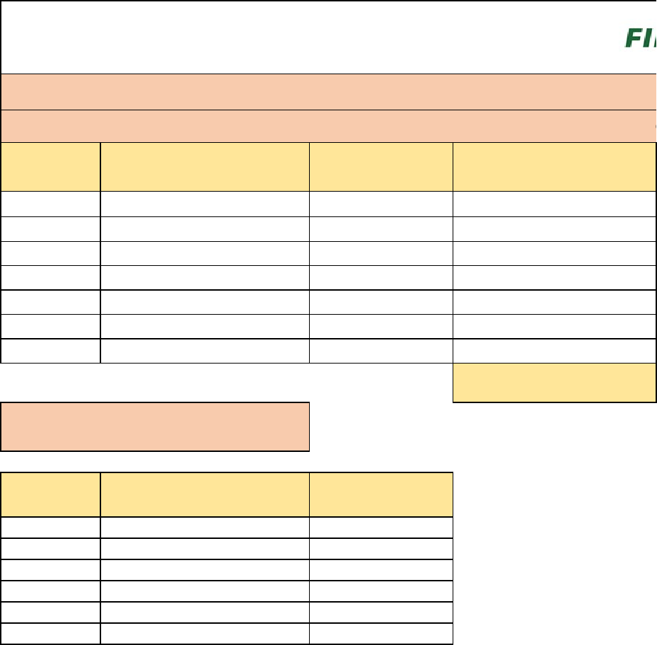 Planilha1 Nome da empresa: Fictícia Ltda CNPJ: 01.123.123/1234-01 Planilha de Folha de Pagamento dos colaboradores Mês/Ano: 09/2022 Cód. Funcionário Nome do funcionário Departamento Cargo Salário Bruto FGTS % de INSS Desconto Plano de saúde Salário Família Salário Líquido 112 João de Souza TI Analista de suporte R$1,500.00 R$120.00 R$150.00 R$1,350.00 326 Maria Marques Financeiro Auxiliar contábil R$1,000.00 R$80.00 R$100.00 R$150.00 R$1,050.00 343 Cecília Machado Financeiro Auxiliar fiscal R$1,100.00 R$88.00 R$110.00 R$150.00 R$1,140.00 281 Ana Macedo RH Assistente de benefícios R$1,150.00 R$92.00 R$115.00 R$200.00 R$300.00 R$1,135.00 437 Antonio Brito Contabilidade Analista contábil R$2,400.00 R$192.00 R$240.00 R$2,160.00 694 Celso Antunes Vendas Vendedor R$3,200.00 R$256.00 R$320.00 R$360.00 R$2,520.00 546 Carlos Viana Marketing Assistente de marketing R$1,020.00 R$81.60 R$102.00 R$918.00 Total R$11,370.00 R$909.60 R$1,137.00 R$560.00 R$10,273.00 Considerar: Índice FGTS 8% Índice INSS 10% Cód. dos descontos Descrição do desconto Referência 101 Salário 30 dias 973 INSS 10% 987 FGTS 8% 650 Vale alimentação 30 dias 482 Plano de saúde 30 dias 567 Salário família 30 dias