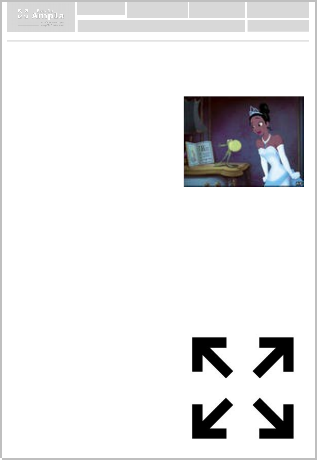 ( / /2021 ) ( NOTA: ) ( 1º Trimestre ) ( AMP 1 ) ( T: 5º ano ) ( NOME : ) PORTUGUÊS Texto I : O Outro Príncipe Sapo Jon Scieszka Era uma vez um sapo. Certo dia, quando estava sentado na sua vitória-régia, viu uma linda princesa descansando a beira do lago. O sapo pulou dentro da água, foi nadando até ela e mostrou a cabeça por cima das plantas aquáticas. Perdão, ó linda princesa: disse ele com sua voz mais triste e patética;Será que eu poderia contar com a vossa ajuda? A princesa estava prestes a dar um salto e sair correndo, mas ficou com pena daquele sapo com sua voz tão triste e patética. Assim, ela perguntou: “ 0 que posso fazer para te ajudar, sapinho?”, disse o sapo;Na verdade, eu não sou um sapo, mas um belo príncipe transformado em sapo pelo feitiço de uma bruxa malvada. E esse feitiço só pode ser quebrado pelo beijo de uma linda princesa.; A princesa pensou um pouco, depois ergueu o sapo nas mãos e lhe deu um beijo. Foi só uma brincadeira; disse o sapo. Pulou de volta no lago, e a princesa enxugou a baba de sapo dos seus lindos lábios. O Patinho realmente feio e outras histórias malucas.São Paulo: companhia das letrinhas, 1997,(s.P.). Texto II QUESTÃO 01: (1,0) O texto I é: A) Um conto de fadas B) Uma fábula C) Um poema D) Um texto informativo E) Nenhuma das opções estão corretas. QUESTÃO 02: (1,0) Releia o seguinte trecho do texto II: “Linda princesa, eu já fui um príncipe tão bonito. Mas uma bruxa má lançou-me um encanto e eu transformei nesta rã asquerosa.” Qual foi o pedido do príncipe? A) Que a princesa lhe desse um beijo. B) Que a princesa desfizesse o encanto. C) Que a princesa fosse atrás da bruxa. D) Que a princesa não lhe desse um beijo. E) Nenhuma das opções estão corretas. QUESTÃO 03: (1,0) É correto afirmar que a expressão “Era uma vez...” no texto I e II, geralmente inicia os contos de fadas tradicionais. A) Afirmativa acima está correta. B) Afirmativa acima não está correta. C) Afirmativa acima não está relacionada ao conto de fadas. D) Essa afirmativa não se usa no início dos contos. E) Nenhuma das opções estão corretas QUESTÃO 04: (1,0) No trecho a seguir a palavra que está em negrito é classificada como: ( A PRINCESA ESTAVA PRESTES A DAR UM SALTO E SAIR CORRENDO, MAS FICOU COM PENA DAQUELE SAPO COM SUA VOZ TÃO TRISTE E PATÉTICA. ) A) Oxítona B) Paroxítona C) Proparoxítona D) Dissílaba E) Nenhuma das opções estão corretas. QUESTÃO 05: (1,0) “ Na verdade, eu não sou um sapo, mas um belo príncipe transformado em sapo pelo feitiço de uma bruxa malvado”. A palavra sublinhada é classificada quanto ao número de sílabas em : A) Monossílaba B) Dissílaba C) Polissílaba D) Trissílaba E) Nenhuma das opções estão corretas. QUESTÃO 06: (1,0) Os contos de fadas modernos, apesar de serem diferentes dos tradicionais, também têm alguma semelhança com eles, pois mantêm alguns elementos que aparecem nas versões tradicionais, como os personagens, que geralmente são os mesmos. No entanto, muitas características são modificadas, como as ações realizadas pelos personagens e o início ou o fim da história.Podemos afirmar que: A) Essas narrativas são destinadas a crianças e têm por objetivo oferecer um momento de diversão. B) Essas narrativas não são destinadas a crianças e têm por objetivo oferecer um momento de diversão. C) Essas narrativas não oferecem diversão ao leitor. D) Não são narrativas, pois não existe um narrador da história. E) Nenhuma das opções estão corretas. QUESTÃO 07: (1,0) Assinale a alternativa em que a palavra está separada corretamente. A) brin-ca-de-i-ra B) in – de – pen – den – te C) vi – tó – ri – a D) enx – u – gou E) Nenhuma das opções estão corretas. QUESTÃO 08: (1,0) “O sapo pulou dentro da água, foi nadando até ela e mostrou a cabeça por cima das plantas aquáticas.” O feminino da palavra que está sublinhada em negrito é: A) Rã B) Rã fêmea C) Sapa D) Sapo fêmea E) Nenhuma das opções estão corretas QUESTÃO 09: (1,0) A sílaba mais forte de uma palavra é chamada de sílaba tônica. Em alguns casos, a sílaba tônica é marcada por acentos gráficos. O acento gráfico serve para: A) Marcar a sílaba tônica B) Marcar a nasalização das palavras C) Não marca a sílaba forte. D) Não marca o timbre. E) Nenhuma das opções estão corretas. QUESTÃO 10: (1,0) Em qual das alternativas todas as sílabas destacadas são tônicas? A) mal – va – da // prin – ce – sa // sa – po B) bru – xa // be – lo // rou - pas C) lin – da // sa – po // er – gueu D) na – dan – do // er – gueu // bru – xa E) Nenhuma das opções estão corretas. MATEMÁTICA QUESTÃO 01: (1,0) O jato executivo Gulfstrean G650 deu uma volta ao mundo em 41 horas e sete minutos, batendo recorde de velocidade. Foi o menor tempo alcançado por um vôo feito por um avião não supersônico. No total, esse jato percorreu 37 614 quilômetros. Quantas ordens e quantas classes há no número em negrito respectivamente. A) 2 ordens e 6 classes B) 2 classes e 2 ordens C) 5 ordens e 2 classes D) 5 ordens e 5 classes E) 5 ordens e 1 classe QUESTÃO 02: (1,0) O Pico da Bandeira , na Serra do Caparaó, entre os estados do Espírito Santo e de Minas Gerais, tem dois mil oitocentos e noventa e dois metros de altitude. Usando algarismo indo-arábico, como esse número é escrito: A) 2.892 B) 28.092 C) 2890 D) 20.892 E) 200.892 QUESTÃO 03: (1,0) Uma volta completa em torno da linha do equador mede, aproximadamente 40.075 quilômetros. Qual é o algarismo que ocupa a ordem das dezenas de milhar? A) 4 B) 0 C) 7 D) 5 E) 75 QUESTÃO 04: (1,0) Quantos zeros usamos para escrever o número cinqüenta mil? A) 7 B) 6 C) 5 D) 4 E) 3 QUESTÃO 05: (1,0) O meio de rede Rodrigão, com 2,05 metros de altura, era o jogador mais alto da equipe brasileira que conquistou a medalha de ouro no torneio de voleibol masculino, na Olimpíada de 