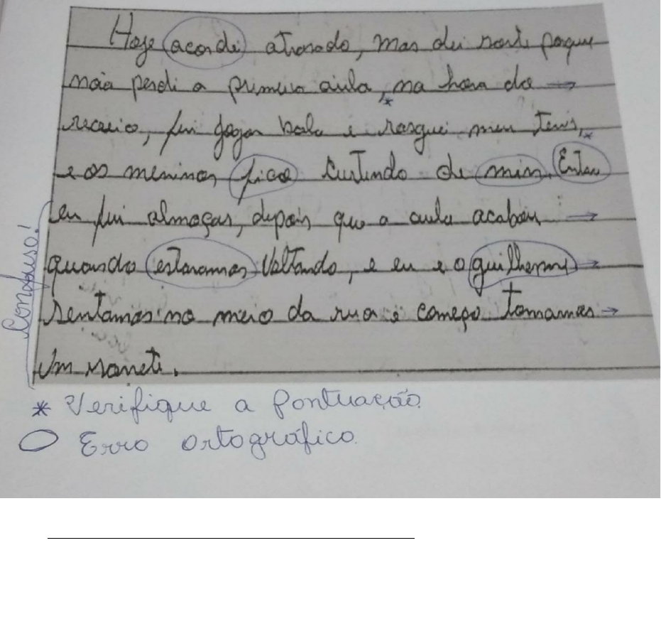 Você deverá responder a questão a seguir e enviá-la por meio do Portfólio - ferramenta do ambiente de aprendizagem UNIGRAN AULA 01 Selecione dois textos de alunos do ensino fundamental, realizando a prática da correção indicativa no primeiro e resolutiva no segundo. Figura 01: Exemplo de correção indicativa Fonte: https://lljournal.commons.gc.cuny.edu/2016-1-almeida/ Figura 02: Exemplo de correção resolutiva Fonte: http://carrosseldoaprender.blogspot.com/2014/03/producao-de-texto-e-reescrita.html