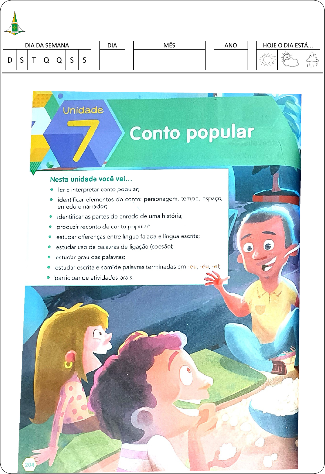 Secretaria de Estado de Educação do Distrito Federal Coordenação Regional de Ensino de Ceilândia Estudante:_______________________________________Turma: _______ Escola Classe 19 de Ceilândia ATIVIDADE NO LIVRO 204 Secretaria de Estado de Educação do Distrito Federal Coordenação Regional de Ensino de Ceilândia Estudante:_______________________________________Turma: _______ Escola Classe 19 de Ceilândia ATIVIDADE NO LIVRO o que está você acha que está aconte- cendo nesta cena? RESPONDER NO CADERNO: Há histórias já conhecidas, mas que sempre gostamos de ouvir de novo. Você se lembra de alguma? Qual? Dizem que ‘quem conta um conto aumento um ponto’. O que você acha que essa frase quer dizer? 205 Secretaria de Estado de Educação do Distrito Federal Coordenação Regional de Ensino de Ceilândia Estudante:_______________________________________Turma: _______ Escola Classe 19 de Ceilândia ATIVIDADE NO LIVRO Secretaria de Estado de Educação do Distrito Federal Coordenação Regional de Ensino de Ceilândia Estudante:_______________________________________Turma: _______ Escola Classe 19 de Ceilândia ATIVIDADE NO LIVRO Secretaria de Estado de Educação do Distrito Federal Coordenação Regional de Ensino de Ceilândia Estudante:_______________________________________Turma: _______ Escola Classe 19 de Ceilândia ATIVIDADE NO LIVRO Página 1 Página 2 Página 3 Página 4 Página 5