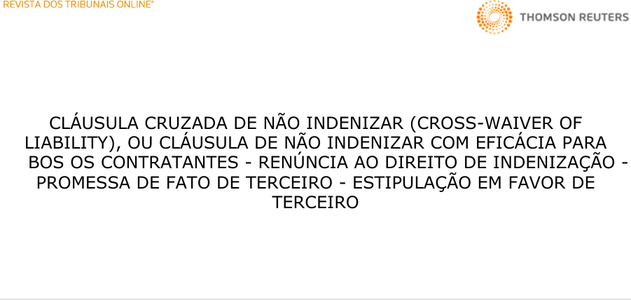 CLÁUSULA CRUZADA DE NÃO INDENIZAR (CROSS-WAIVER OF LIABILITY), OU CLÁUSULA DE NÃO INDENIZAR COM EFICÁCIA PARA AMBOS OS CONTRATANTES - RENÚNCIA AO DIREITO DE INDENIZAÇÃO - PROMESSA DE FATO DE TERCEIRO - ESTIPULAÇÃO EM FAVOR DE TERCEIRO Revista dos Tribunais | vol. 769/1999 | p. 103 - 109 | Nov / 1999 Doutrinas Essenciais de Direito Civil | vol. 4 | p. 561 - 569 | Out / 2010 Doutrinas Essenciais Obrigações e Contratos | vol. 4 | p. 25 - 34 | Jun / 2011 DTR\1999\514 Antonio Junqueira de Azevedo Professor Titular da Faculdade de Direito da Universidade de São Paulo. Área do Direito: Civil; Comercial/Empresarial Sumário: 1 - Consulta-nos a Agência Espacial Brasileira sobre a validade de um tipo de cláusula contratual, habitualmente existente nos instrumentos de cooperação bilateral, em que a Nasa é parte, denominada, no direito americano, de cross-waiver of liability. Fundamentalmente, cada contratante, segundo essa cláusula, dispensa o outro de indenização por danos resultantes da atividade comum. A consulente informa que tem interesse científico e tecnológico em assinar acordos de cooperação com a NASA, nos quais a citada cláusula seria inserida, mas gostaria de ter certeza sobre sua legalidade, perante o ordenamento positivo brasileiro. 2 - Esclarece, ainda, a consulente que o art. XI do Acordo-Quadro firmado entre o Governo da República Federativa do Brasil e o Governo dos Estados Unidos da América, em 1.º.03.1996, sobre cooperação nos usos pacíficos do Espaço Exterior, dispõe: "No interesse de fomentar a participação na exploração, investimento e atividades científicas, as Partes Contratantes, por si mesmas ou por intermédio de suas agências executoras principais, comprometem-se a estabelecer, como parte dos Ajustes Complementares, um sistema próprio de assunção de responsabilidade por suas respectivas perdas e danos. As Partes Contratantes assegurarão, de maneira compatível com suas respectivas legislações nacionais, que as contratantes, subcontratantes e entidades participantes a elas associadas tomem parte neste sistema de responsabilidade" (art. XI do Acordo-Quadro firmado na data acima referida). 3 - Entre a Nasa e a consulente, que, nos termos do Acordo-Quadro, é a "agência executora principal" brasileira, estão em curso conversações, com a finalidade de concretizar o que ficou estipulado no artigo supratranscrito; os textos dos ajustes complementares incluiriam, portanto, a cláusula do cross-waiver of liability. A título de exemplo, essa cláusula estaria, num dos convênios, assim redigida: "b.1 - Cada Parte aceita a dispensa recíproca de responsabilidade jurídica, segundo a qual cada Parte renuncia a qualquer demanda contra qualquer das entidades ou pessoas listadas em b.1.i até b.1.iii desta seção, baseada em dados originados de Operações Espaciais Protegidas. Esta dispensa recíproca deverá ser aplicada unicamente no caso em que a pessoa, entidade ou bem causador do dano esteja envolvido com as Operações Espaciais Protegidas e a pessoa, entidade ou bem prejudicado tenha sido danificado em decorrência de seu envolvimento com as Operações Espacias Protegidas. A dispensa recíproca deverá ser aplicada a quaisquer demandas por dano, qualquer que seja o CLÁUSULA CRUZADA DE NÃO INDENIZAR (CROSS-WAIVER OF LIABILITY), OU CLÁUSULA DE NÃO INDENIZAR COM EFICÁCIA PARA AMBOS OS CONTRATANTES - RENÚNCIA AO DIREITO DE INDENIZAÇÃO - PROMESSA DE FATO DE TERCEIRO ... Página 1 Ana Flávia Cordeiro Caso da NASA fundamento legal para tais demandas, incluindo, mas sem se restringir a esses fundamentos os delitos de natureza civil e os culposos (inclusive os praticados por negligência em qualquer grau ou espécie) e o contrato, apresentadas contra: i. a outra Parte; ii. uma entidade associada à outra Parte; ou iii. os empregados de qualquer das entidades identificadas em b.1.i e b.1.ii desta seção. b.2 Além disso, cada Parte estenderá a dispensa recíproca de responsabilidade, conforme estabelecido no parágrafo b.1 desta seção, às entidades a elas associadas, requerendo das mesmas, através de contrato ou por outro meio, que concordem em renunciar a todas as demandas contra as entidades ou pessoas identificadas em b.1.i até b.1.iii desta seção". 4 - A indagação fundamental da consulta é a de saber se a cláusula do cross-waiver, exemplificada no item anterior, conflita com a legislação brasileira ou se, ao contrário, tem validade. A mesma questão se propõe, naturalmente, para eventuais acordos a serem assinados com outros países. Passamos a responder. 5 - A leitura da cláusula transcrita como exemplo no item 3 acima revela claramente que estamos diante de texto contratual traduzido. São duas culturas jurídicas (legal cultures) que se defrontam: a americana e a romano-germânica, na qual nos inserimos. Para nós, a redação americana é excessivamente analítica e sem técnica - aparentemente, há "desordem", mas, como costuma dizer ilustre professor da Faculdade de Direito da USP, Goffredo Telles Jr., "a desordem é a ordem que não conhecemos". Na verdade, estamos diante de linguagens diferentes, de tal forma que, feita a simples tradução da citada cláusula, é preciso, ainda, vertê-la em termos jurídicos nacionais; somente depois disso, ou com isso, é que, então, poder-se-á dizer da validade do que nela se contém. 6 - Ora, o teor da cláusula transcrita revela que há, em seu texto, segundo o nosso direito, pelo menos quatro figuras jurídicas distintas: a) exoneração da responsabilidade por uma possível indenização por danos - cláusula de não indenizar -, objeto principal da consulta; b) renúncia, justificada, a um eventual direito de indenização; c) promessa de fato de terceiro; d) estipulação em favor de terceiro. 7 - Antes de, analiticamente, examinarmos essas quatro figuras, verificando seu exato alcance, convém salientar que, na cláusula, objeto da consulta, as vant