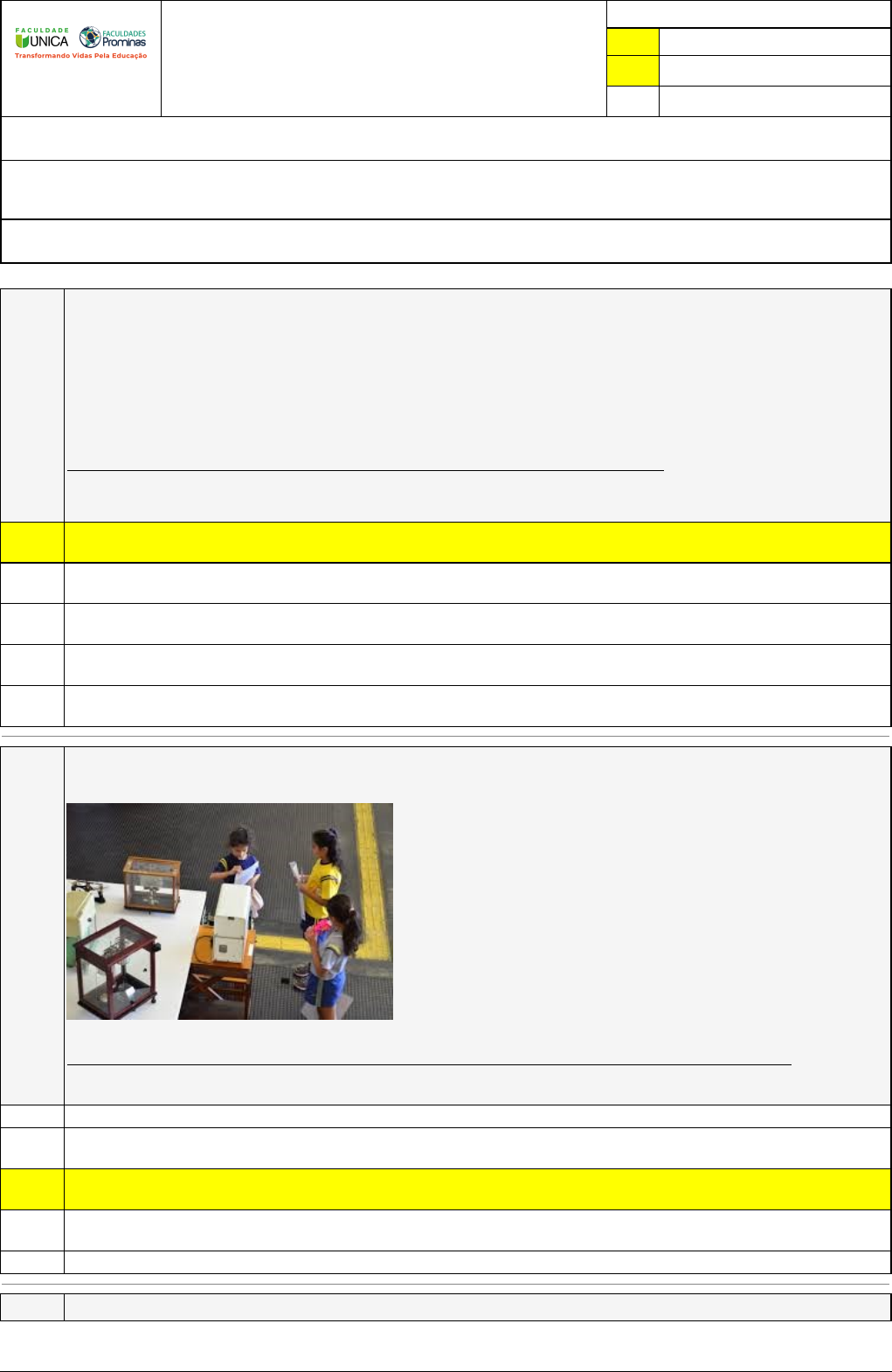 Pincel Atômico - 25/04/2021 18:18:07 1/4 PAULO GAMALIEL FECHIS AVALIAçãO ONLINE (SALA EAD) Atividade finalizada em 20/04/2021 08:04:09 (tentativa: 1) LEGENDA Resposta correta na questão # Resposta correta - Questão Anulada X Resposta selecionada pelo Aluno Disciplina: DIDáTICA E AS PRáTICAS PEDAGóGICAS [capítulos - 5,6,7,8] - Avaliação com 10 questões, com o peso total de 30,00 pontos Turma: Segunda Graduação: Formação Pedagógica para Graduados - Licenciatura em Ciências Biológicas - Grupo: ABRIL/2021 - FDGRAD-CIB/ABR21 [21817] Aluno(a): 91202055 - PAULO GAMALIEL FECHIS - Respondeu 7 questões corretas, obtendo um total de 21,00 pontos como nota Questão 001 Nada melhor do que um jogo de tabuleiro para reunir crianças em volta de uma mesa. E, se esse jogo também inclui todos os alunos, com e sem deficiência, e trabalha disciplinas como Ciências, Geografia, Língua Portuguesa e até Matemática, melhor ainda. Essa é exatamente a proposta do Material Pedagógico Acessível Trilha dos Seres Vivos, criado na EMEF Desembargador Teodomiro Toledo Piza, em São Paulo (SP). Esse material faz parte do projeto Materiais Pedagógicos Acessíveis, lançado pelo Instituto Rodrigo Mendes (IRM) no portal Diversa, que consiste em uma série de recursos desenvolvidos por educadores para auxiliar o processo de ensino-aprendizagem em turmas compostas por estudantes com e sem deficiência. NOGUEIRA, Flávia. Como um jogo de tabuleiro estimula a inclusão. 24 de setembro de 2019. Disponível em https://novaescola.org.br/conteudo/18383/como-um-jogo-de-tabuleiro-estimula-a-inclusao. Acesso em 25 set 2019. A aprendizagem pode ser desenvolvida a partir de qualquer experiência ou vivencia, embora não se caracterize como algo casual. Isso porque: X A aprendizagem é planejada e dirigida, carregada de intecionalidade, como na reportagem acima em que se utilizou de tabuleiros para promover o ensino-aprendizagem de estudantes com e sem deficiência; A aprendizagem é planejada e superficial, como na reportagem acima que se utilizou de tabuleiros encontrados casualmente na sala para promover o ensino-aprendizagem de estudantes com e sem deficiência; A aprendizagem é planejada e dirigida somente quando há necessidade de intencionalidade, como na reportagem que ao utilizar os tabuleiros promovem o ensino-aprendizagem apenas para estudantes com deficiência. A aprendizagem é planejada e dirigida, carregada de intecionalidade, como na reportagem acima que negligência a utilização de tabuleiros para promover o ensino-aprendizagem de estudantes com e sem deficiência; A aprendizagem possui intencionalidade e trata-se de um processo gradativo, embora a reportagem acima não demonstre o uso de intrumentos diversos para a efetivação da mesma. Questão 002 Nesta quinta-feira (14), alunos do Centro Pedagógico da UFMG tiveram uma aula diferente na Biblioteca Central. A turma do terceiro ano do ensino fundamental participou de atividades lúdicas no Espaço de Leitura e visitou a exposição sobre equipamentos antigos usados em aulas práticas de física e química, em cartaz até dia 28 de setembro. Disponível em https://cerrado.bu.ufmg.br/bu/index.php/noticiais/1298-biblioteca-central-recebe-turma-do-centro-pedagogico. Acesso em 25 set 2019. Práticas como a apresentada acima são positivas, pois: Promove a possibilidade de o professor atuar enquanto principal figura na transmissão do conhecimento. Altera o ambiente de aprendizado e o sujeito transmissor do conhecimento, fazendo com que os alunos não consigam aprender em contextos fora da sala de aula. Diversifica a rotina escolar e fomenta a construção do conhecimento a partir da relação do objeto de estudo com a realidade, tornando o aluno autor de seu próprio conhecimento. X Promove e auxilia na arrecadação financeira da instituição de ensino a qual a biblioteca pertence e, dessa forma, é possível criar exposições e cobrar a entrada. Dificulta a aprendizagem, uma vez que o estudante faz ligações e relações do conteúdo com a experiência. Questão 003 O método do projeto é indicado por Zaballa (1998) como um método globalizador que se caracteriza por: https://novaescola.org.br/conteudo/18383/como-um-jogo-de-tabuleiro-estimula-a-inclusao https://cerrado.bu.ufmg.br/bu/index.php/noticiais/1298-biblioteca-central-recebe-turma-do-centro-pedagogico Pincel Atômico - 25/04/2021 18:18:07 2/4 Partir de uma situação real com etapas que envolvem a definição de uma intenção, a preparação, execução, avaliação e proposição de um produto. X Partir de uma situação real com etapas que envolvem a escolha de um tema, planejamento, busca de informações, desenvolvimento, avaliação, novas hipóteses e a elaboração de um dossiê. Partir de uma situação real que envolve etapas como motivação, perguntas, suposições, coleta de dados, seleção e classificação, conclusões que buscam responder questões. Partir de uma situação real com etapas que envolvem a observação, a associação do espaço, tempo, tecnologia, entre outros, para conhecer melhor um tema. Partir de uma situação real que envolve um tema particular da vida e etapas como suposições, associação do tempo e espaço, avaliação e classificação. Questão 004 A escola é um espaço de preparação para os alunos, ao passo que promove vivências, práticas e conhecimentos diversificados para o futuro destes. Nessa perspectiva, o professor é compreendido como: Figura do saber único e, assim, responsável por transmitir todo o conhecimento que possui desconsiderando as inúmeras realidades e vivências de seus estudantes. Responsável por auxiliar as crianças, jovens e adultos a potencializar sua capacidade de viver em sociedade, promovendo vivências individuais, acríticas e de acomodação com a realidade em que estão inseridos. X Encarregado por educar para a vida em sociedade e na formação de seres humanos críticos, reflexivos, consci
