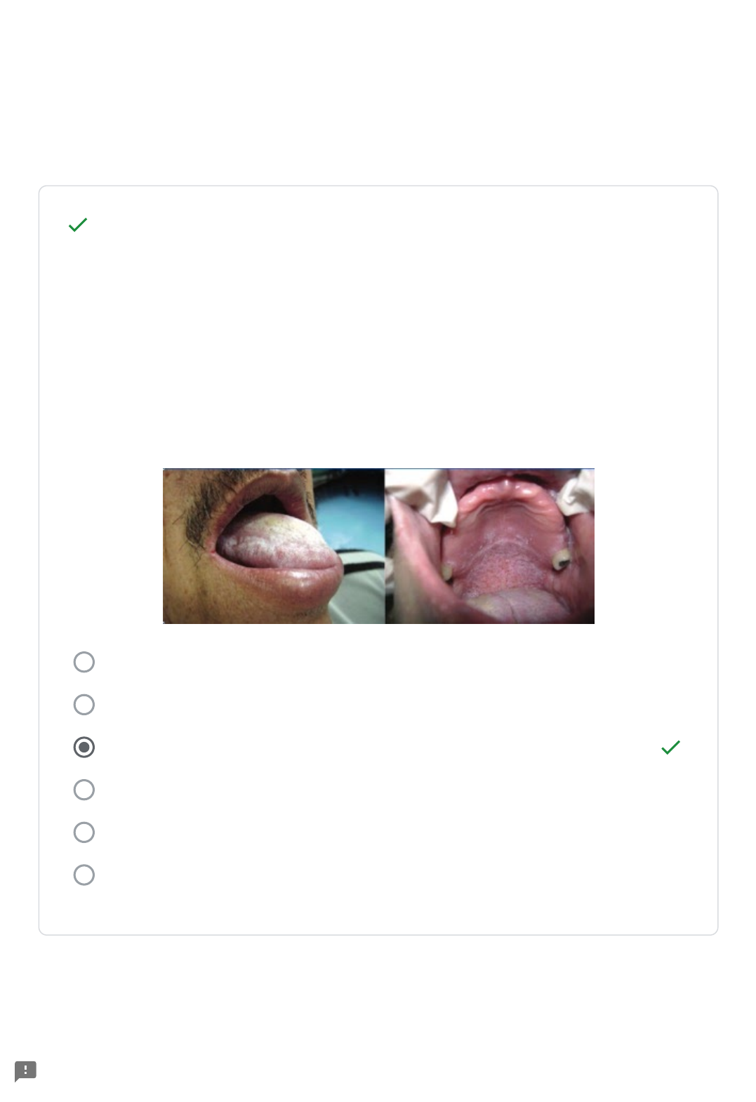2/2 Coccidioides immitis Criptococcus neoformans Candida albicans Paracoccidioides brasiliensis Aspergillus fumigatus Histoplasma capsulatum Paciente, 46 anos, sexo masculino, relata sentir dificuldade para deglutir, ardor na mucosa bucal e na garganta, rouquidão e perda do paladar. Paciente portador de prótese total superior, a qual se apresenta mal higienizada. O paciente é HIV positivo, com carga viral detectável e contagem de LTCD4+ = 266 células/mm3 – Valor de referência: >500 células/mm3. (Texto modificado de Odontol. Clín.-Cient., Recife, 11 (2) 169-171, abr./jun., 2012) Qual o provável agente causador da infecção? * 2/2 Histoplasma capsulatum Paracoccidioides brasiliensis Aspergillus fumigatus Coccidioides immitis Candida albicans Criptococcus neoformans Paciente, 65 anos, sexo masculino, agricultor, natural e residente de Botucatu – SP, queixa-se de cansaço, falta de apetite e tosse há muitas semanas. Relata que a ferida na boca não cura, mesmo usando uma pomada que sua esposa comprou na farmácia. Na ausculta, o médico observa áreas de consolidação. Solicita radiografia do tórax que evidencia a presença de lesões nodulares na base do pulmão esquerdo. Solicita biópsia da lesão bucal. No retorno, o resultado da biópsia revelou a presença de fungo leveduriforme com aspecto em “roda de leme”. Com base no caso, responda: qual o provável agente causador da infecção? * 2/2 Criptococcus neoformans Aspergillus fumigatus Histoplasma capsulatum Coccidioides immitis Candida albicans Paracoccidioides brasiliensis Paciente, sexo masculino, 42 anos, HIV positivo em tratamento antirretroviral (TARV). Contudo, nos últimos 6 meses apresenta-se não aderente ao tratamento. No pronto atendimento queixa-se de visão dupla e dor de cabeça. Foi internado e, no quarto dia de internação apresentou 3 convulsões, evoluiu com insuficiência respiratória e necessidade de ventilação mecânica. No nono dia foi a óbito. A autópsia revelou a presença de células fúngicas envoltas por cápsula mucopolissacarídicas no encéfalo e pulmão. Qual o provável agente causador da infecção? * 2/2 Paracoccidioides brasiliensis Candida albicans Criptococcus neoformans Coccidioides immitis Aspergillus fumigatus Histoplasma capsulatum Paciente, sexo masculino, 62 anos, trabalha como faxineiro em na companhia de água e esgoto de sua cidade. Portador de tuberculose pulmonar há 8 meses, não aderente ao tratamento. Apresenta agravamento do quadro, com queixa de falta de ar. Foi internado e apresentou piora e evoluiu para óbito. A biópsia revelou a presença de bola fúngica no pulmão. Microscopicamente, são identificadas colônias vegetantes de hifas septadas invadindo os tecidos pulmonares. Qual o provável agente causador da infecção? * 2/2 Coccidioides immitis Histoplasma capsulatum Candida albicans Aspergillus fumigatus Paracoccidioides brasiliensis Criptococcus neoformans Este formulário foi criado em Uninove. Paciente, 48 anos, engenheiro, durante exames de rotina é informado pelo médico que a radiografia apresentou um nódulo de 3 cm na base do pulmão esquerdo. O médico então solicita que seja realizada biópsia por aspiração. O exame revela a presença de granulomas contendo grandes estruturas com paredes refringentes (esférulas fúngicas). O paciente relata ter trabalhado na Califórnia no período pós incêndios em 2015, por conta da intensa seca que assolou a região. Qual o provável agente causador da infecção? * Formulários https://www.google.com/forms/about/?utm_source=product&utm_medium=forms_logo&utm_campaign=forms
