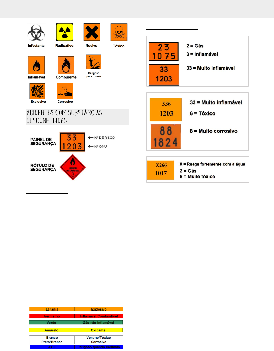 @duofisiodicas Classificação por símbolos Números de risco • Classe 1 – Explosivo • Classe 2 – Gases • Classe 3 – Líquido inflamável • Classe 4 – Sólido inflamável • Classe 5 – Oxidantes • Classe 6 – Tóxicos e infectantes • Classe 7 – Materiais radioativos • Classe 8 – Corrosivos • Classe 9 – Substâncias perigosas diversas Classificação de risco