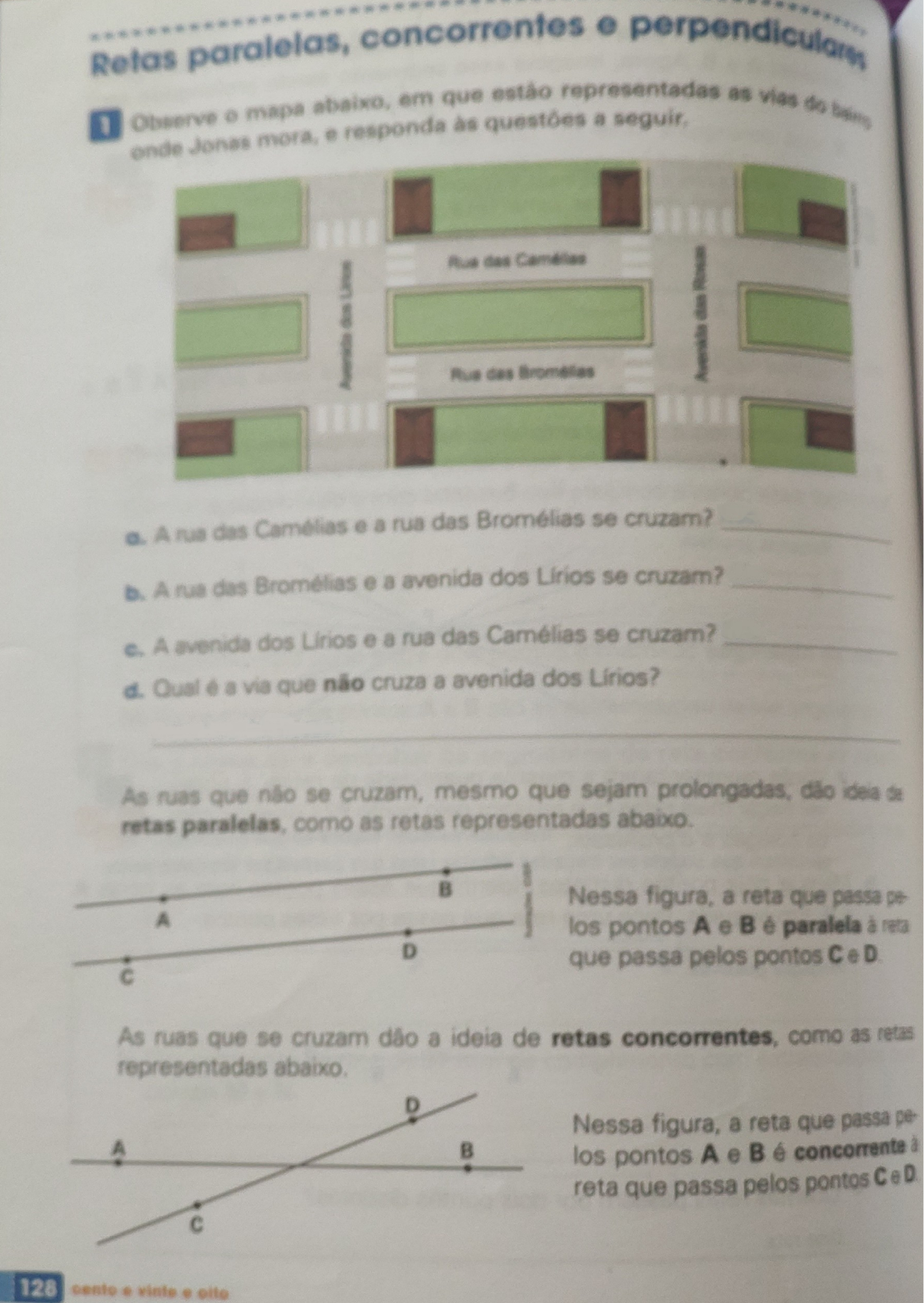 Avenida das Rosas Concorrentes No ponto X Não Paralela Da reta que passa pelos pontos C e D e da reta que passa pelos pontos I e F. Sim. No ponto H. A reta que passa pelos pontos C e F.