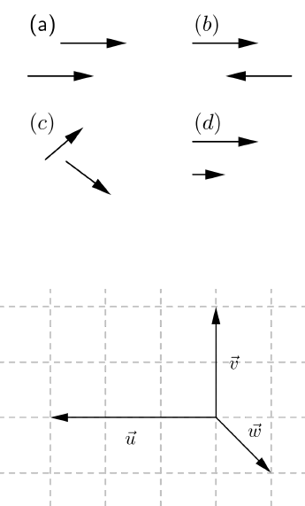 Geometria Anal´ıtica Lista de exerc´ıcio 1 Vetores; combinac¸o˜es lineares. Exerc´ıcio 0.1. Decida se os segmentos orientados de cada par representam o mesmo vetor. Exerc´ıcio 0.2. Construa o vetor ~u + ~v + ~w. Exerc´ıcio 0.3. Construa os vetores ~u := ~a +~b + ~c, ~v := ~b− ~c + ~a, ~w := ~a− (~b + ~c) 1 nas seguintes situac¸o˜es: (a) (b) Exerc´ıcio 0.4. Considere os pontos A,B,C,D e E. Usando a relac¸a˜o de Chas- les, simplifique as seguintes expresso˜es vetoriais: (a) −−→ BD + −−→ AB + −−→ DC, (b) −−→ BC + −−→ DE + −−→ DC + −−→ AD + −−→ EB, (c) −−→ DA−−−→DB −−−→CD −−−→BC, (d) −−→ EC −−−→ED +−−→CB −−−→DB. Exerc´ıcio 0.5. Seja P = ABCDEFGH o paralelep´ıpedo representado na fi- gura: 2 Encontre uma expressa˜o mais simples dos seguintes vetores: (a) ~a = −−→ AB + −−→ FG, (b) ~b = −→ AG + −−→ CD, (c) ~c = −−→ EB + −→ CA, (d) ~d = −−→ EH + −−→ DC + −→ GA, (e) ~e = −−→ AH + −−→ EB, (f) ~f = −−→ AB + −−→ CC + −−→ BH + −−→ GF . Exerc´ıcio 0.6. Sejam A e B dois pontos distintos. Em cada situac¸a˜o, repre- sente geometricamente o ponto P tal que a igualdade vetorial indicada seja satisfeita: (a) −→ AP = −3−−→AB, (b) −→ PA = 1 2 −−→ AB, (c) −→ AP = −2−−→PB, (d) −→ PA = −1 2 −−→ PB. 3 Exerc´ıcio 0.7. Considere a seguinte figura: (a) Escreva ~c e ~d como combinac¸a˜o linear de ~a e ~b. (b) Defina ~x := − 12~c− 5~d. Escreva ~x como combinac¸a˜o linear de ~a e ~b. (c) Escreva ~a e ~b como combinac¸o˜es lineares de ~c e ~d. Exerc´ıcio 0.8. Seja C = ABCDEFGH um cubo. Defina ~a := −−→AB, ~b := −−→AD e ~c := −→ AE. Denotamos por M o ponto me´dio de FG, N o de HG e por P o centro da faceta ABCD. Considere a seguinte figura: Escreva os seguintes vetores como combinac¸o˜es lineares do vetores ~a, ~b e ~c : −−→ EP, −−→ EM, −−→ EN, −−→ NM, −−→ PN, −−→ NP, −−→ PM. Exerc´ıcio 0.9. Seja P = ABCD um paralelogramo. Definimos ~a := −−→AB e ~b := −−→ AD e denotamos por M o ponto me´dio de BC. Seja tambe´m P o u´nico ponto que satisfaz −→ PA = −2−−→PC. 4 Escreva −−→ PB, −−→ PM e −−→ DM como combinac¸o˜es lineares de ~a e ~b. Exerc´ıcio 0.10. Represente um cubo OABC e construa os pontos E,F,G e H tais que: −→ AE = −→ AC + −−→ BC, −→ AF = 1 2 −→ AO −−−→OC, −−→ CG = 2 −−→ CB + 1 2 −−→ BO, −−→ OH = − √ 2 −−→ OB. Exerc´ıcio 0.11. Suponha que os vetores ~a,~b e ~v satisfac¸am 3(~a− 2~v)− 6~b = −7 (15 7 ~v − 3~b ) + 12~a. Escreva ~v como combinac¸a˜o linear de ~a e ~b. 5