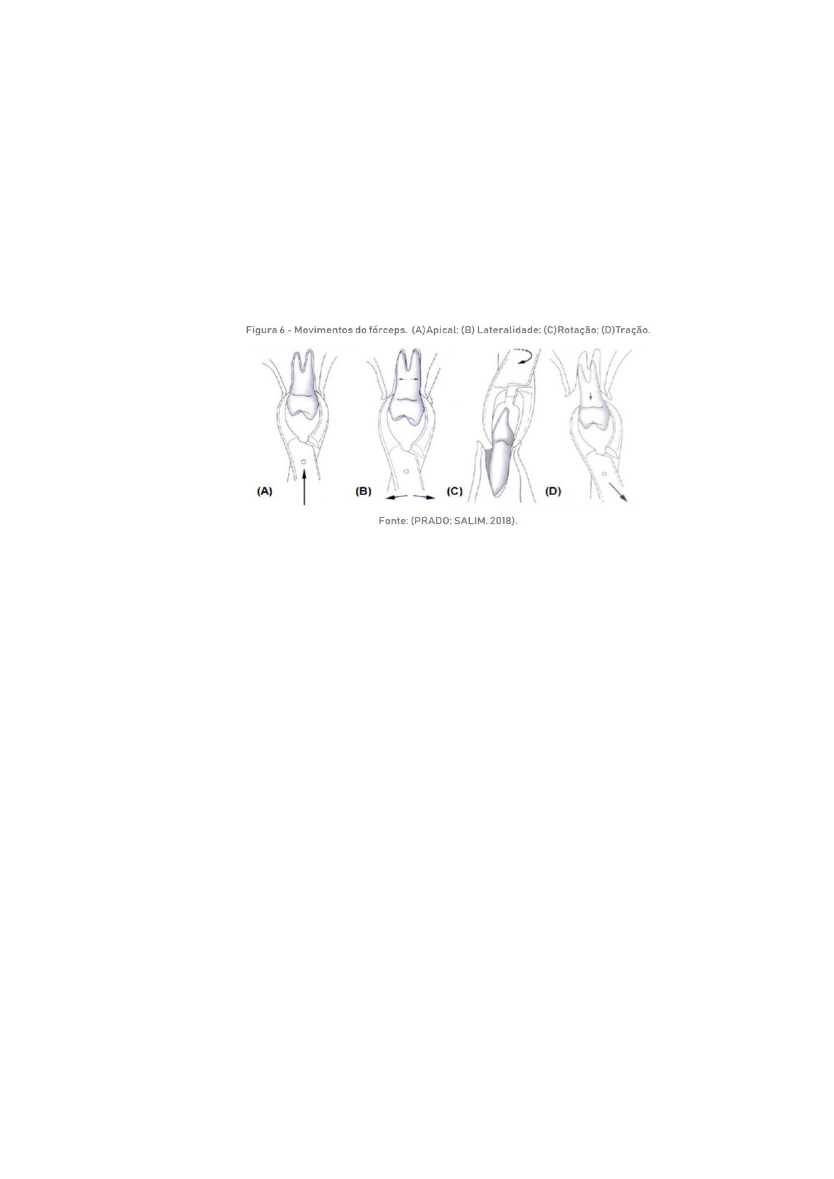 Fórceps Movimentos do fórceps: ● Movimento apical ● Movimento vestibular e lingual (lateralidade) ● Movimento de rotação. ● Movimento de tração Em casos de dentes que não são unirradiculares: ● Movimento apical. ● Movimento vestibular e lingual. ● Movimento de tração. Principais fórceps e suas indicações: Maxila: ● Incisivos e caninos: Fórceps N° 1. ● Incisivos, caninos e pré- molares: Fórceps N° 150. ● Molares: Fórceps N° 18L (lado esquerdo), Fórceps N° 18R (Lado Direito). ● Resto radiculares: Fórceps N° 65 ou em Baioneta. Mandíbula: ● Incisivos, caninos e pré-molares: Fórceps N° 151. ● Molares: Fórceps N° 17 (molares inferiores) /Fórceps N° 16 (Molares com comprometimento coronário e raízes divergentes). ● Restos radiculares superior e inferior: Fórceps N° 69. Fórceps Fórceps N° 1 Fórceps N° 150 Fórceps N° 18L Fórceps N° 18R Fórceps N° 65 Fórceps N° 151 Fórceps N° 17 Fórceps N° 16 Fórceps N° 69