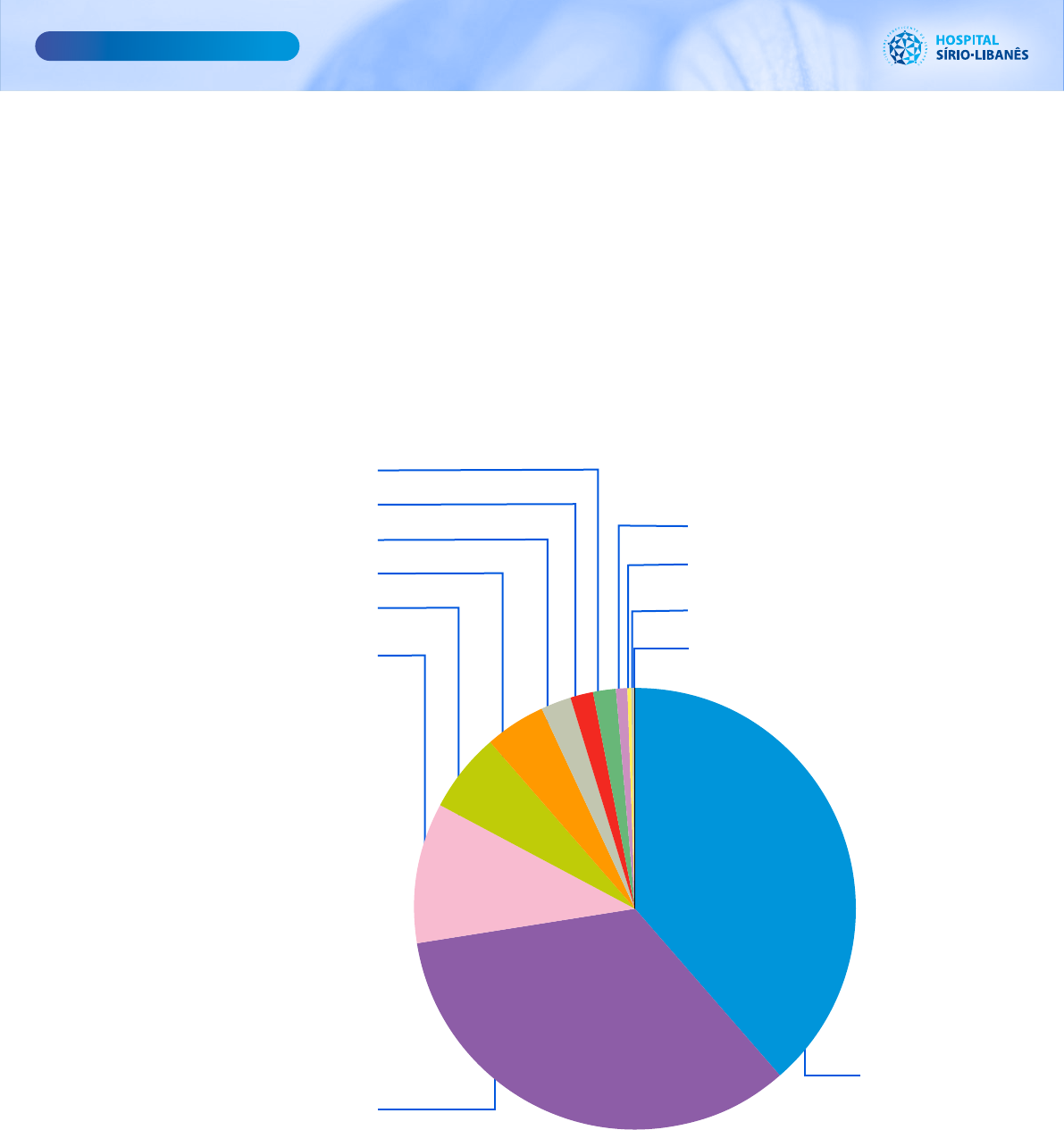 15 Manual de Cuidados Paliativos Manual de Cuidados Paliativos As principais doenças que requerem cuidados paliativos segundo as estimativas globais da OMS no contexto dos adultos (indivíduos com 15 anos ou mais) são doenças cardiovasculares (38%), neoplasias (34%), Doença Pulmonar Obstrutiva Crônica (DPOC – 10%), HIV/Aids (10%) e outras (ver figura 2). Na figura 3 podem ser vistas as principais doenças em crianças (considerando indivíduos até 14 anos) (WORLDWIDE PALLIATIVE CARE ALLIANCE, 2014). Figura 2. Principais doenças na população adulta do Global Atlas of Palliative Care at the end of life (WORLDWIDE PALLIATIVE CARE ALLIANCE, 2014). Tuberculose multirresistente 0.80% Alzheimer e outras demências 1.65% Cirrose hepática 1.70% Doenças renais 2.02% Diabetes mellitus 4.59% HIV/Aids 5.71% Doença pulmonar obstrutiva crônica 10.26% Câncer 34.01% N=19.228.760 Doença de Parkinson 0.48% Artrite reumatoide 0.27% Esclerose múltipla 0.04% Doenças cardiovasculares 38.47% 16 Manual de Cuidados Paliativos Figura 3. Principais doenças na população infantil do Global Atlas of Palliative Care at the end of life (WORLDWIDE PALLIATIVE CARE ALLIANCE, 2014). Câncer 5.69% Distúrbios endocrinológico, imunes ou do sangue 5.85% Doenças cardiovasculares 6.18% Condições neurológicas* 2.31% Doenças renais 2.25% Cirrose hepática 1.06% Anormalidades congênitas* 25.06% Desnutrição calórico-proteica 14.12% Condições neonatais* 14.64% Meningite 12.62% HIV/Aids 10.23% N = 1,170,011