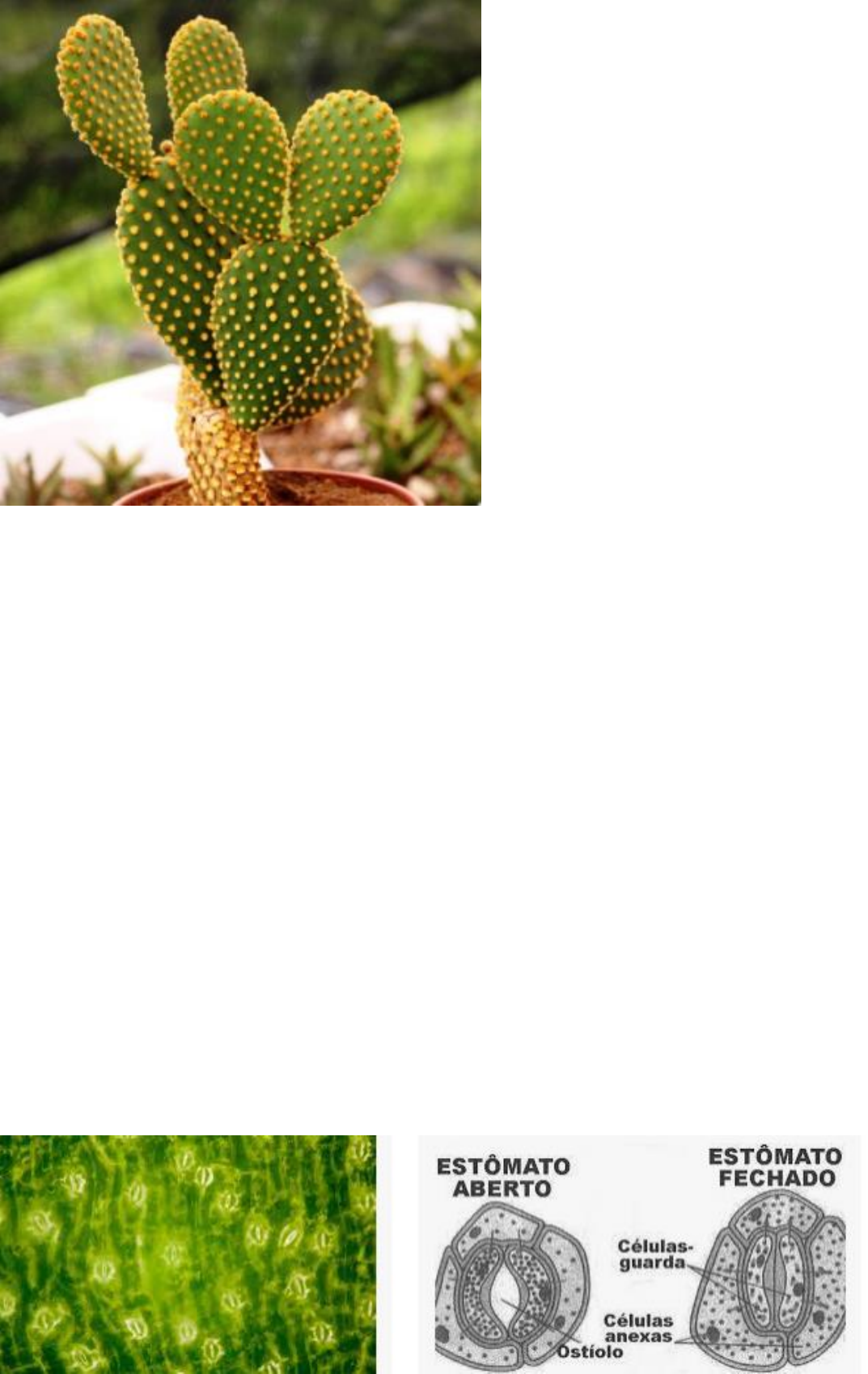 Nome: Yasmim Bohac Resumo: 1.0 Data: 11/05/2021 Como os cactos respiram, se a maioria deles não tem folhas? De fato, 99% dos cactos não têm folhas e sim espinhos. Embora considerados folhas modificadas, ou seja, que se adaptaram às necessidades da planta, os espinhos não desempenham as mesmas funções das folhas, como a respiração e a fotossíntese. Assim, os cactos respiram pelo caule. É nele que se alojam os estômatos, canais entre as células que permitem a entrada de ar. Ao contrário da maioria dos vegetais, os cactos têm menos estômatos. Por isso, pode-se dizer que eles respiram menos