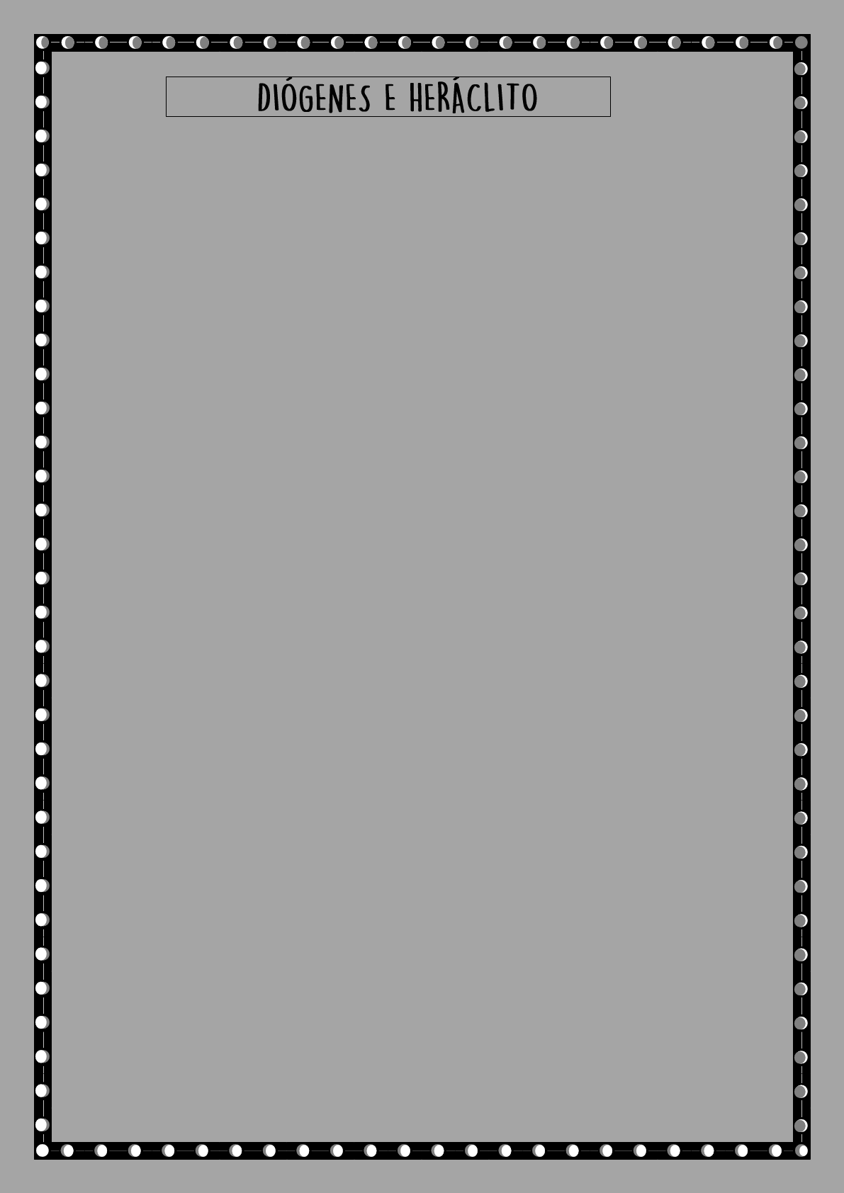 Heráclito de Éfeso foi um dos principais filósofos da Antiguidade pré-socrática. É classificado como partícipe da escola jônica apenas por sua localização geográfica e pela facilidade didática com que essa classificação permite entender seu pensamento. A obra do filósofo caracterizou-se por iniciar um movimento de ruptura na filosofia pré-socrática que, juntamente com as ideias dos eleatas, desembocaria nas filosofias socrática, Heráclito inaugura uma maneira de pensar o surgimento do Universo diferente da que fazia os jônicos e pitagóricos, pois, enquanto esses apresentavam uma unidade material como elemento originário de tudo, Heráclito depositou a sua especulação em um elemento (o fogo), por sua capacidade de movimentar, agitar e transformar as coisas. Segundo esse pensador, o mundo e a natureza são constantes movimentos. Tudo muda o tempo todo, e o fluxo perpétuo (movimento constante) é a principal característica da natureza platônica e aristotélica. “A única coisa que não muda é que tudo muda. ” ___________________________________________________________________________________ Diógenes de Sínope foi um destacado filósofo grego da antiguidade pertencente a corrente filosófica do Cinismo. Diógenes representou uma das mais importantes figuras da corrente filosófica do Cinismo. Os Cínicos eram homens simples, nômades, sem família e sem pátria Seu mestre e fundador da Escola do Cinismo foi o filósofo Antístenes. Com ele desenvolveu diversas teorias acerca do mundo. Ao contrário da corrente do hedonismo e do epicurismo, em que a busca do prazer era o mais importante, para os cínicos o prazer leva o homem à alienação. Dessa forma, o ser humano se torna escravo de si, o afastando da sua real liberdade, uma vez que eles se tornam escravos de suas ações. Em resumo, esses filósofos acreditavam que a felicidade não podia ser encontrada pelos supérfluos que preenchiam a vida, e sim pelo autoconhecimento. • “Só é verdadeiramente livre quem está sempre pronto a morrer. ” _______________________________________________________________________________________ • Heráclito defende que não há unidade natural no mundo, mas duelos e dualidade constante. “O mundo é um eterno devir”, afirma o filósofo, querendo dizer que há uma constante mudança, imprevisível, que caracteriza a natureza. ... Por pensar assim, Heráclito é considerado o “pai” da dialética. • Diógenes expressava seu pensamento através da frase "procuro um homem". ... Para ele os deuses deram às homens formas para viverem de modo fácil e feliz, mas esses mesmos deuses esconderam essas formas dos homens.