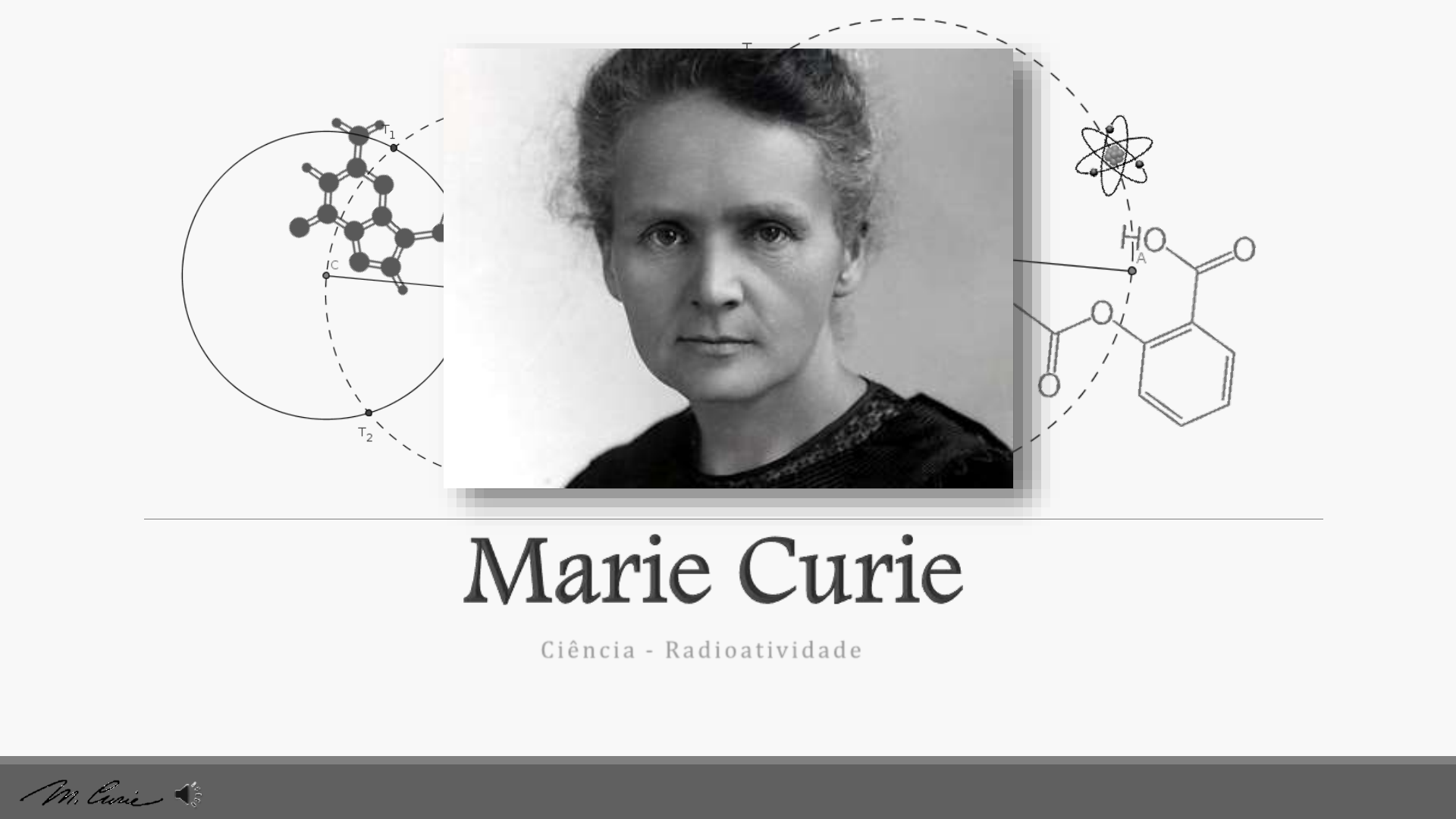 C i ê n c i a - R a d i o a t iv i d a d e No começo dos séculos 20, uma mulher ganha dois prémios Nobel, Marie Curie foi a mulher que em época em que só os homens iam á universidade, descobriu um elemento químico e iniciou uma verdadeira revolução no meio científico. Maria Sklodowska nasceu em 7 de novembro de 1867 em Varsóvia, na Polónia. Filha do professor de física e matemática, Wladyslaw Sklodowski e da cantora, pianista e professora Bronsilawa Boguska. Marie, a mais nova dos seus irmãos, desde muito cedo mostrou-se uma excelente aluna. Sempre encorajada pelo pai a se interessar pela ciência, Marie termina os estudos aos 15 anos e passa a trabalhar como professora particular antes de se mudar para Paris em 1891, para continuar seus estudos, aos 24 anos. • Wladyslaw Skłodowski e suas filhas: Maria (Marie Curie), Bronisława e Helena Em 1894 ela conhece o professor Pierre Curie com o qual se casa no ano seguinte passando então a ser chamada de Madame Curie. Na época Pierre trabalhava no Laboratório de Física e Química Industrial no qual trabalhariam juntos mais tarde. Em 1883 e 1894 Marie obtém o grau elevado em física e matemática pela universidade de Sourbonne, em Paris, tornando-se depois a primeira mulher a lecionar nessa universidade. Em 1898, após ter a sua primeira filha chamada Irene, Marie inicia os seus estudos sobre a radioatividade. As pesquisas realizadas por Marie Curie com a ajuda de seu marido Pierre levaram a descoberta de dois novos elementos químicos: o polônio, que ganhou este nome em homenagem ao país natal de Marie, e o rádio. A pesquisa do casal abriu um novo caminho a ser explorado na pesquisa científica e médica, levando muitos cientistas da época a estudar o assunto. Em 1903, Marie finalmente defende a sua tese e obtém o título de doutora pela Sourbonne tornando-se a primeira mulher a receber o título nesta universidade. No final do mesmo ano, Marie e Pierre Curie recebem o prêmio Nobel de física pela descoberta dos dois elementos químicos, e em 1904, nasce a sua segunda filha, Ève. Após a morte de seu marido em 1906, Marie continua a estudar a radioatividade, principalmente as suas aplicações terapêuticas e, em 1911, recebe outro prêmio Nobel, desta vez em química, por suas pesquisas com o rádio tornando-se a primeira pessoa, até então, a ganhar duas vezes o prêmio Nobel. Pierre Curie Marido de Marie Curie Irène Curie Filha de Marie e Pierre Curie Ève Curie Filha de Marie e Pierre Curie Para além dos dois Prémios Nobel, devido ao seu arduo trabalho e esforço, Marie também conquistou outros prémios não tanto importantes como: Medalha Davy (1903) Medalha Matteucci (1904) Medalha Elliott Cresson (1909) Em 4 de julho de 1934 Marie falece devido a uma leucemia causada pela longa exposição aos elementos radioativos. Em 1995, o governo francês transferiu as cinzas de Marie, juntas com as do seu marido Pierre, para o Pantheon em Paris, fazendo dela a única mulher a ser reconhecida desta maneira pelas suas próprias realizações. ‘’Madame Curie’’ é um filme de 1943 do gênero drama biográfico, dirigido por Mervyn LeRoy. A produção retrata a vida da célebre física franco-polonesa e ganhadora do Premio Nobel, Marie Curie. ‘’Sobre o caso Marie Curie: a radioatividade e a subversão do género’’, é um livro, cujo o seu autor é Gabriel Pugliese, o seu livro é uma brisa refrescante no cenário da história das ciências e da vida de Marie Curie. Cada pessoa deve trabalhar para o seu aperfeiçoamento e, ao mesmo tempo, participar da responsabilidade coletiva por toda a humanidade (Marie Curie) Nº 17 | 9ºB