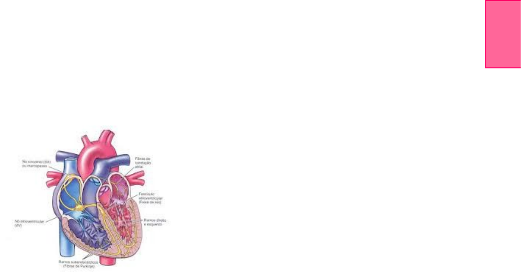 ECG – Eletrocardiograma Anatomia e Fisiologia do Coração Nó sinoatrial (AS) ou marcapasso: Conduz o estimulo para o átrio esquerdo e também em direção ao nó atrioventricular. Nó Atrioventricular (AV): Causa um retardo na condução do impulso para que a contração dos átrios e dos ventrículos se deem de maneira coordenada e não de maneira simultânea. Fascículo Atrioventricular (Feixe de His): Começa em sua porção penetrante e se divide em ramo direito e ramo esquerdo. Ramo Direito: É fino, fraco e descontínuo, segue pelo septo intraventricular e vai para o átrio ventrículo direito. Ramo Esquerdo: Segue pelo septo também, já o nível do anel aórtico se divide em 3 porções a divisão antêro-posterior e as porções posteriores póstero-inferior e póstero-medial. ELETROFISIOLOGIA BÁSICA Células de Condução: São mais especializadas em uma condução rápida e eficaz. Células de Marcapasso – AUTOMATISMO: vão se despolarizar independente dos estímulos vindos de outras células, são elas que determinam o ritmo. Células Musculares: CONDUÇÃO. PERÍODO REFRATÁRIO Absoluto: A célula não responde independente do estímulo. Relativo: Caso o estímulo seja mais intenso do que o habitual ela pode responder, porém não será na intensidade esperada. ela vai conduzir o estímulo mais lentamente. Supernormal: Mesmo tendo intensidade menor a célula em condições habituais não atingiria o limiar de despolarização a célula vai se despolarizar. OBS: DIPOLO – 2 cargas, mesmo módulo, sinais opostos, separados por uma distância. Representação: vetor. Sentido: - para + VISÃO GERAL SOBRE O ECG · Registra a atividade elétrica do coração em forma de ondas que mostram a despolarização (contração) e a repolarização (relaxamento); · Ajuda no dia gnóstico e monitoração de alguns distúrbios (infarto do miocárdio, pericardite); · Possibilita a identificação de distúrbios de ritmo, alterações da condução e desequilíbrios eletrolíticos; · ECG capta, desde a superfície do corpo (mediante eletrodos), a atividade elétrica dos átrios e ventrículos. DERIVAÇÕES E PLANOS Derivação é a linha imaginaria que une dois eletrodos, que vai enxergar o vetor despolarização. · Cada derivação fornece uma visão da atividade elétrica do coração entre um pólo positivo e um pólo negativo; · Cada derivação produz formas de onda características com base do fluxo da corrente elétrica; · Cada plano é uma seção transversal do coração que produz uma visão diferente da atividade elétrica cardíaca. ECG DE 12 DERIVAÇÕES · As informações são registradas a partir de 12 projeções cardíacas diferentes, por meio de eletrodos colocados nos membros e no tórax do paciente; · Seis derivações dos membros (I, II, III, aVR, aVL, aVF) – Plano frontal do coração; · Seis derivações precordiais (V1, V2, V3, V4, V6) – Plano horizontal do coração. DERIVAÇÕES PADRÕES DOS MEMBROS Derivação I: Útil na monitoração dos ritmos atriais; Derivação II: Útil na identificação da onda P, detecção de arritmia do nódulo sinusal, arritmia atrial e monitoração da parede interior do ventrículo esquerdo; Derivação III: Útil na monitoração de ritmos atriais e da parede inferior do ventrículo esquerdo; Derivação aVR, aVL e aVF (parede inferior). DERIVAÇÕES PRECORDIAIS Seis derivações sobre o tórax; V1 Onda P, complexo QRS e seguimento ST são bem mostrados; Monitoração de arritmias ventriculares, alterações do seguimento ST e alterações da onda P; Útil na diferenciação de taquicardias (ventriculares versus supraventriculares e de bloqueio de ramo). V2 e V3 Usada para detectar supra desnivelamento do seguimento ST; V4 e V5 Mostra alterações no segmento ST e na onda T; V6 DERIVAÇÕES PRECORDIAIS V1 – 4º EID, ao lado do esterno; V2- 4º EIE, ao lado do esterno; V3- Entre V2 e V4; V4- 5º EIE, linha hemiclavicular; V5- Mesmo nível de V4, LAA; V6- Mesmo nível de V4, linha médio-axilar. ONDA P · Avalia se o ritmo é sinusal ou não; · Avalia sobrecarga atrial direita e/ou esquerda; · Despolarização atrial ou condução atrial de um impulso elétrico através dos átrios; · Localização: Procede o complexo QRS; · Amplitude: altura de 2 a 3mm; · Duração: 0,06 a 0,12s . OBS: Até 3 quadrados pequenos está normal se passar disso está alterado. · Positiva (I,II,aVF e V2 a V6); · Pode variar nas derivações III e aVL; · Negativa: aVR; · Originada no nódulo sinoatrial; INTERVALO PR · Evita que o átrio contraia quase que ao mesmo tempo que o ventrículo; · Retardo fisiológico no nó atrioventricular; · Mostra o impulso atrial desde os átrios até o nódulo AV; · Localização: do inicio da onda P até o início do complexo QRS; · Duração: 0,12 a 0,20s. · Inclui onda P e o segmento PR; · Representa a despolarização atrial e o atraso fisiológico do estímulo ao passar pelo nó atrioventricular. · IMPOTÂNCIA CLINICA: Avaliar presença de bloqueio atrioventricular; avaliar infra desnivelamento – pode sugerir pericardite quando associado a outros achados; Avaliar síndromes de pré-excitação (PR curto). COMPLEXO QRS · Início da contração ventricular (sístole); · Representa a despolarização e a condução do impulso nos ventrículos, sendo que após isso os ventrículos se contraem; · Localização: após intervalo PR; · Amplitude: 5 a 30mm de altura, mas é diferente em cada derivação; · Duração: 0,06 a 0,10s; OBS: Até 3 quadrados pequenos é próximo a normalidade. · Excitação elétrica dos ventrículos. · Onda Q: Primeira deflexão negativa – corresponde ao vetor de despolarização septal; · Onda R: Primeira deflexão positiva – Corresponde ao vetor resultante da despolarização das paredes livres dos ventrículos. · Onda S: Deflexão negativa após a onda R – Corresponde à despolarização das regiões basais dos ventrículos. IMPOTÂNCIA CLÍN