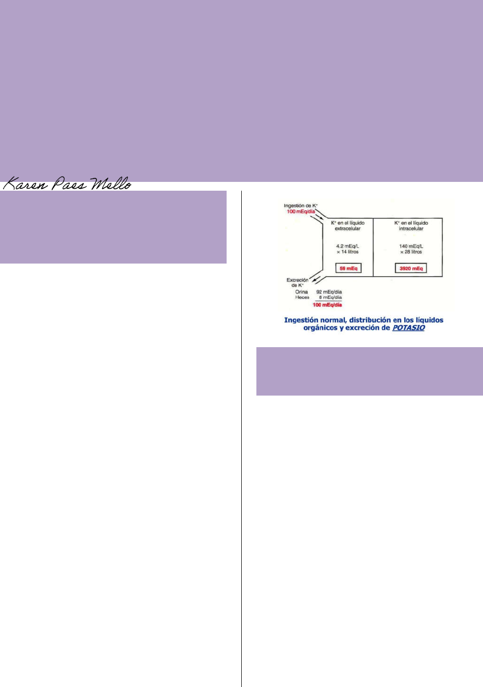 Regulación renal del potasio, el calcio, el fosfato y el magnesio; integración de los mecanismos renales para el control del volumen sanguíneo y del volumen de líquido extracelular: REGULACION DE LA EXCRECION Y LA CONCENTRACION DE POTASIO EN EL LEC: - K en el LEC 4,2 mEq/l (±0,3 mEq/l) - Arritmias cardíacas, parada cardíaca o una fibrilación. - Dificultad K LIC 98% K LEC 2% - ingestión diaria suele estar entre 50 y 200 mEq/día - Hiperpotasemia (aumento de la concentración plasmática de potasio) - Pequeña pérdida de K del LEC podría provocar una Hipopotasemia grave (concentración plasmática de potasio baja) - El mantenimiento del equilibrio entre la captación y el gasto del K depende sobre todo de la excreción renal porque la excreción fecal es solo del 5-10% de la ingestión de K - El mantenimiento de un equilibrio normal del K exige que los riñones ajusten la excreción con rapidez y precisión como respuesta a amplias variaciones en su ingestión. Regulación de la distribución interna del K: La insulina estimula la captación del potasio por las célula La aldosterona aumenta la captación de potasio por las célula El estímulo β-adrenérgico aumenta la captación de potasio por las células Las alteraciones acidobásicas pueden provocar cambios en la distribución del potasio La lisis celular aumenta la concentración extracelular de potasio El ejercicio extenuante puede provocar una hiperpotasemia al liberar potasio del músculo esquelético El aumento de la osmolaridad del líquido extracelular provoca una redistribución del potasio desde las células hasta el líquido extracelular Las variaciones diarias en la excreción de potasio se deben principalmente a cambios en la secreción de potasio en los túbulos distal y colector: - Las zonas más importantes de regulación de la excreción del K son las células principales en la parte final de los túbulos distales y en los túbulos colectores corticales - Alrededor de 60 mEq/día de potasio se secretan en los túbulos distal y colector, lo que supone la mayor parte del potasio excretado. - Ante ingestiones elevadas, la excreción extra requerida se consigue aumentando la secreción en los túbulos distal y colector. - Si la ingestión de K es baja, la secreción en los túbulos distal y colector disminuye, lo que reduce la excreción urinaria Secreción de potasio en las células principales de la porción final del túbulo distal y del túbulo colector cortical: - La secreción de K desde el capilar peritubular hacia la luz de los túbulos distal y colector: 1. difusión pasiva de K desde la sangre hacia el intersticio renal 2. transporte activo de K desde el intersticio hacia las células tubulares por una bomba de Na – K 3. Difusión pasiva de K desde el interior de la célula hacia el liquido tubular. - Factores que controlan la secreción de K: A. aumento de la concentración extracelular de K, lo que aumenta su secreción. B. aumento de la secreción de aldosterona, aumenta la secreción de K C. aumento del flujo tubular, estimula la secreción de K D. aumento brusco de la [H+] (acidosis), disminuye la secreción de K Las células intercaladas pueden reabsorber o secretar potasio: - En circunstancias asociadas a una perdida de K, se detiene su secreción y hay una reabsorción neta por parte de las células intercaladas tipo A de la parte final de los túbulos distales y los túbulos colectores. - Cuando los líquidos corporales contienen un exceso de K, las células intercaladas tipo B de la parte final de los túbulos distales y los túbulos colectores secretan K en forma activa hacia la luz tubular. CONTROL DE LA EXCRECION RENAL DE CALCIO Y DE LA CONCENTRACION EXTRACELULAR DEL ION CALCIO: - Gran parte de la excreción del Ca se realiza a través de las heces - Solo el 10% del Ca ingerido se reabsorbe en el tubo digestivo, excretándose el resto por las heces. - 99% almacenado en los huesos reservorio del Ca - 1% en el LEC - 0,1 en el LIC LA HORMONA PARATORIODEA ES UN REGULADOR IMPORTANTE DE LA CAPTACION Y LIBERACION DE CALCIO EN EL HUESO: - Descenso de Ca en el LEC, estimula la secreción de la hormona paratiroidea (PTH) - La hormona actúa directamente sobre los huesos aumentando la reabsorción de sales óseas (liberación de sales del hueso), liberando grandes cantidades de Ca hacia el LEC - Cuando la concentración del ion Ca esta elevada, la secreción de PTH se reduce y el exceso de calcio se deposita en los huesos - Hipocalemia (disminución del Ca del LEC) - Hipercalemia (aumento de los iones Ca en el LEC) - La ingestión de Ca debe equilibrarse con su excreción por el aparato digestivo y por los riñones - La PTH reduce la excreción renal de Ca. El Ca no es secretado por los túbulos renales y su excreción esta determinada por la filtración y reabsorción tubular. Concentraciones altas de PTH estimulan la reabsorción de Na, reduciendo la excreción urinaria de Ca. La reducción de PTH, favorece la excreción de Ca. - Aumento de fosfato plasmático estimula la PTH, que aumenta la reabsorción de Ca en los túbulos renales, reduciendo su excreción. - La reabsorción de Ca también es estimulada por la acidosis metabólica e inhibida por la alcalosis metabólica. Regulación de la excreción renal de fosfato: - Los túbulos renales tienen un transporte máximo normal para reabsorber fosfato de unos 0,1 mmol/min. - Cuando hay menos de esa cantidad en el filtrado glomerular, casi todo el fosfato filtrado se reabsorbe. - Cuando se supera esa misma cantidad, el exceso se secreta - El fosfato comienza a precipitarse en la orina cuando su concentración en el LEC aumenta por encima de un umbral. - La mayoría de las personas ingieren grandes cantidades de fosfato en los productos lácteos y en la carne, la concentración de fosfato suele mantenerse por encima de 1 mM/l, un valor en el que hay una excreción continua de fosfato en la orina. - El túbulo proximal reabsorbe normalmente el 75-8