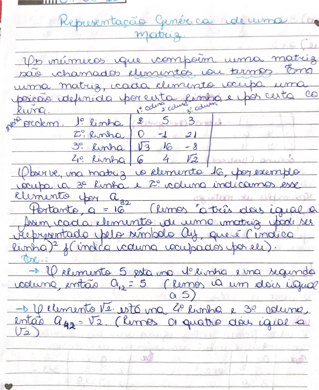 Representação genérica de uma matriz - matemática