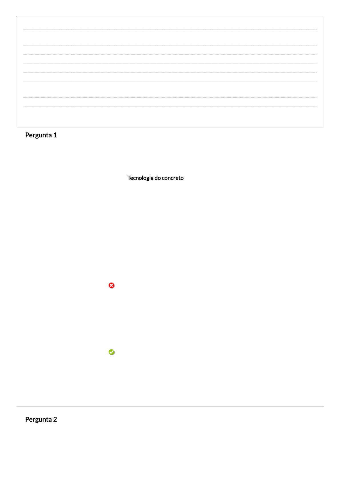 01/10/2020 Revisar envio do teste: ATIVIDADE 2 (A2) – GRA1605 ... https://anhembi.blackboard.com/webapps/late-Course_Landing_Page_Course_100-BBLEARN/Controller 1/7 Usuário LEONARDO NUNES RIBEIRO Curso GRA1605 MATERIAIS DE CONSTRUÇAO CIVIL - AGLOMERADOS E AGREGADOS GR2015202 - 202020.ead-12534.01 Teste ATIVIDADE 2 (A2) Iniciado 10/09/20 16:29 Enviado 01/10/20 16:30 Status Completada Resultado da tentativa 9 em 10 pontos Tempo decorrido 504 horas, 0 minuto Resultados exibidos Respostas enviadas, Respostas corretas, Comentários Pergunta 1 Resposta Selecionada: Resposta Correta: Feedback da resposta: Na presença de água, o cimento portland forma compostos que, com o passar do tempo, produzem uma massa sólida e resistente. As reações de hidratação desses compostos são exotérmicas, ou seja, geram uma quantidade de calor por grama de cimento. Esse calor liberado é denominado calor de hidratação. NEVILLE, A. M.; BROOKS, J. J. Tecnologia do concreto . 2. ed. Porto Alegre: Bookman, 2013. A partir do exposto, analise as asserções a seguir e a relação proposta entre elas. I. O aumento de temperatura leva ao aparecimento de trincas de contração devido ao processo de dilatação e resfriamento da pasta de cimento. Todos os cimentos portland comerciais apresentam valores de calor de hidratação similares. Pois: II. A quantidade de calor gerado é decorrente das reações de hidratação dos silicatos e aluminatos presentes na composição do cimento portland e essas reações ocorrem de forma similar em todos os tipos de cimentos comerciais, independentemente da sua composição química, sua �nura e outros fatores. A seguir, assinale a alternativa correta. As asserções I e II são proposições verdadeiras, mas a II não é uma justi�cativa correta da I. As asserções I e II são proposições falsas. Sua resposta está incorreta. A alternativa está incorreta, pois a asserção I é uma proposição falsa, uma vez que os cimentos comerciais apresentam diferentes valores de calor de hidratação, existindo, ainda, um tipo de cimento especial de baixo calor de hidratação (BC). A asserção II também é uma proposição falsa, pois o calor de hidratação depende da composição química do cimento e da sua �nura. Pergunta 2 A massa unitária dos agregados é um parâmetro utilizado para a conversão de quantidade de materiais e traços de concretos e de argamassas de massa para volume ou vice-versa. A determinação da massa unitária dos agregados é realizada a partir do emprego de um recipiente cilíndrico de volume conhecido e balança analítica. 0 em 1 pontos 1 em 1 pontos 01/10/2020 Revisar envio do teste: ATIVIDADE 2 (A2) – GRA1605 ... https://anhembi.blackboard.com/webapps/late-Course_Landing_Page_Course_100-BBLEARN/Controller 2/7 Resposta Selecionada: Resposta Correta: Feedback da resposta: Com base no exposto, analise as asserções a seguir e a relação proposta entre elas. I. A massa unitária dos agregados pode ser de�nida como a relação entre sua massa e seu volume real, sendo que o valor de massa unitária é geralmente menor do que o valor da sua massa especí�ca. Pois: II. O volume real dos agregados corresponde ao volume calculado, considerando somente a porção sólida da substância e descontando os espaços vazios. A seguir, assinale a alternativa correta. A asserção I é uma proposição falsa, e a II é uma proposição verdadeira. A asserção I é uma proposição falsa, e a II é uma proposição verdadeira. Resposta correta. A alternativa está correta, pois a asserção I é uma proposição falsa, uma vez a massa unitária descreve a relação entre a massa do agregado e o seu volume aparente. A asserção II, por sua vez, é uma proposição verdadeira, pois o volume real dos agregados corresponde à sua porção sólida, descontando os espaços vazios. Pergunta 3 Resposta Selecionada: Resposta Correta: Feedback da resposta: A estabilidade volumétrica do cimento portland, também conhecida como expansibilidade, é um fenômeno de expansão volumétrica que ocorre no estado endurecido do cimento e pode prejudicar a durabilidade e desempenho mecânico de argamassas e concretos. A expansibilidade do cimento portland é determinada, empregando-se a agulha de Le Chatelier. A respeito da expansibilidade do cimento portland, analise as a�rmativas a seguir e assinale V para a(s) Verdadeira(s) e F para a(s) Falsa(s). I. ( ) A expansibilidade do cimento portland é um fenômeno que pode ocorrer em concretos e argamassas, acontecendo no �m da pega. II. ( ) As expansões volumétricas no cimento portland estão associadas às reações de hidratação da cal livre (CaO) e do óxido de magnésio (MgO). III. ( ) A expansibilidade do cimento portland envolve a ocorrência indesejável de expansões volumétricas no cimento que causam �ssuras. IV. ( ) O fenômeno de expansão volumétrica ocorre em cimentos que apresentam teores apreciáveis de cal livre (CaO) e óxido de magnésio (MgO) decorrentes do seu processo de fabricação. Assinale a alternativa que apresenta a sequência correta. V, V, V, V. V, V, V, V. Resposta correta. A alternativa está correta. A expansibilidade é um fenômeno que ocorre no estado endurecido do concreto, ou seja, no �m da pega. As reações que causam expansão volumétrica no cimento, basicamente, envolvem reações de hidratação da cal livre (CaO) e do óxido de magnésio (MgO). A concentração desses óxidos varia e depende do processo de fabricação do cimento portland. Pergunta 4 Com base nas condições de umidade dos agregados miúdos e graúdos, é possível de�nir a absorção de água 1 em 1 pontos 1 em 1 pontos 01/10/2020 Revisar envio do teste: ATIVIDADE 2 (A2) – GRA1605 ... https://anhembi.blackboard.com/webapps/late-Course_Landing_Page_Course_100-BBLEARN/Controller 3/7 Resposta Selecionada: Resposta Correta: Feedback da resposta: como a quantidade de água que pode preencher os