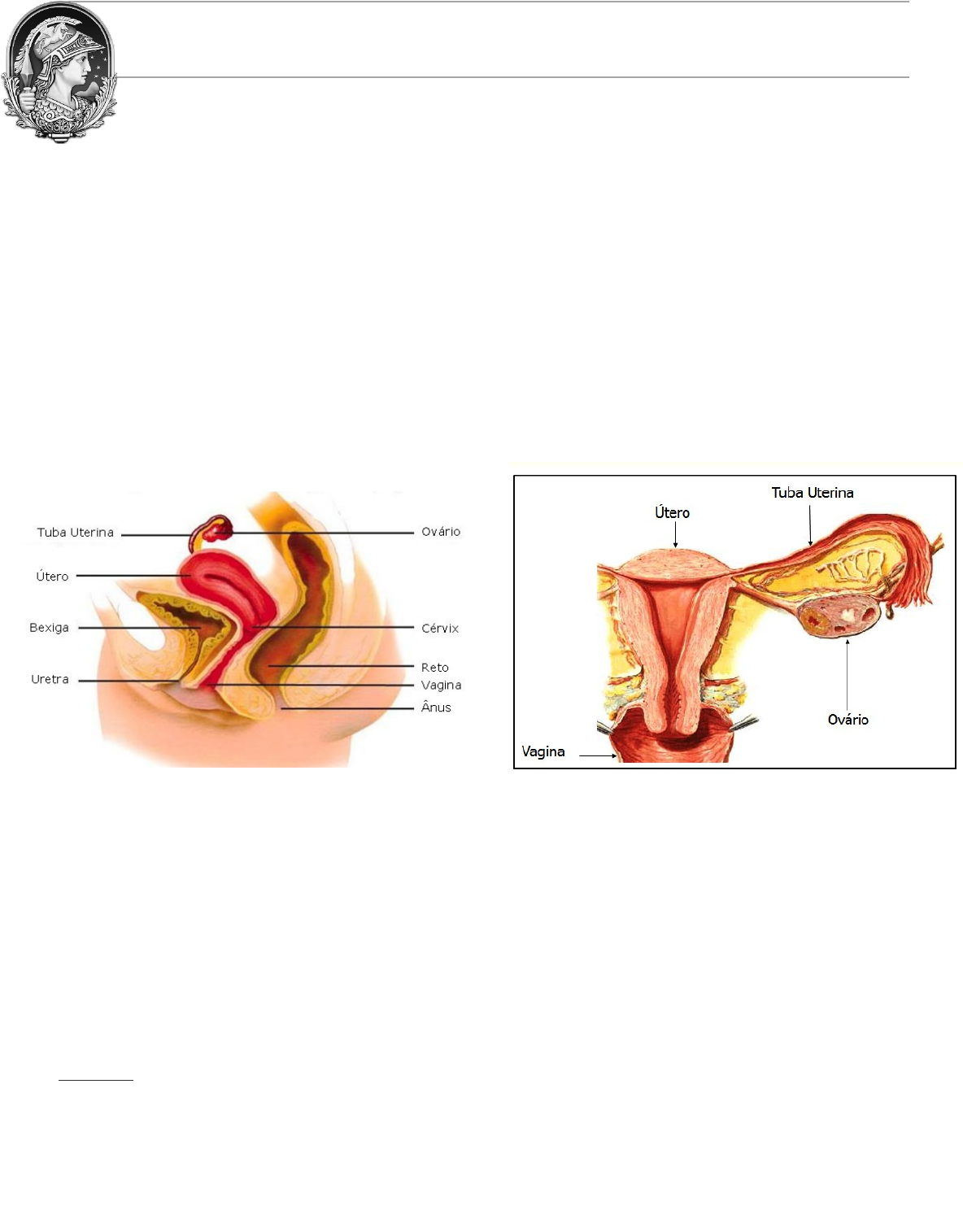 Sist. Reprodutor fem. O aparelho reprodutor feminino participa do processo de reprodução, exercendo isoladamente as seguintes funções: · Ovulação-> produção do óvulo; · Fecundação-> conjugação dos fatores hereditários do espermatozoide masculino com o óvulo feminino; · Nidação-> acomodação do óvulo fecundado; · Gestação-> desenvolvimento do embrião (que recebe o nome de feto a partir do segundo mês de vida intra-uterina); · Parto-> expulsão da criança, já perfeitamente apta a desempenhar as funções vitais fora do organismo da mãe. Os órgãos genitais femininos consistem de um grupo de órgãos internos e outro de órgãos externos. · Órgãos Internos: estão no interior da pelve e consistem dos Ovários, Tubas Uterinas ou ovidutos, Útero e Vagina. · Órgãos externos: são superficiais ao diafragma urogenital e acham-se abaixo do arco púbico. Compreendem o Monte do Púbis, os Lábios Maiores e Menores do pudendo, o Clitóris, o Bulbo do Vestíbulo e as Glândulas Vestibulares Maiores. Estas estruturas formam a vulva ou pudendo feminino. As glândulas mamárias também são consideradas parte do sistema genital feminino. OVÁRIOS O ovário é um órgão par comparável a uma amêndoa com aproximadamente 3 cm de comprimento, 2 cm de largura e 1,5 cm de espessura. Ele está situado por trás do ligamento largo do útero e logo abaixo da tuba uterina, sendo que seu grande eixo se coloca paralelamente a esta. Em virtude do 1/3 distal da tuba uterina normalmente estar voltada para baixo, o ovário toma uma posição vertical, com uma extremidade dirigida para cima e outra para baixo. Comparada a amêndoa uma borda seria anterior e outra posterior, o condiciona para que uma face seja lateral e outra medial. A borda medial prende-se a uma expansão do ligamento largo do útero que recebe o nome de mesovário, e por isso é denominada de borda mesovárica, enquanto a borda posterior é conhecida por borda livre. A borda mesovárica representa o Hilo do Ovário é por ele que entram e saem os vasos ováricos. A extremidade inferior é chamada extremidade tubal e a superior extremidade uterina. O ovário está preso ao útero e à cavidade pelvina por meio de ligamentos, cujo conjunto pode ser grosseiramente comparado aos cabos dos bondes aéreos, sendo o bonde, o ovário; o segmento do cabo que liga à parede pelvina é denominado ligamento suspensor do ovário e a porção do cabo que vai ter ao útero é o ligamento do ovário. O Ligamento Suspensor do Ovário estende-se da fáscia do músculo psoas maior à extremidade tubal do ovário, enquanto o Ligamento Próprio do Ovário vai de sua extremidade uterina à borda lateral do útero, logo abaixo da implantação da base da tuba uterina. E percorrendo o ligamento suspensor do ovário que a artéria e a veia ovárica irrigam esse órgão. Na puberdade os ovários começam a secretar os hormônios sexuais, estrógeno e progesterona. As células dos folículos maduros secretam estrógeno, enquanto o corpo lúteo produz grandes quantidades de progesterona e pouco estrógeno. Esses hormônios transformam a “menina” em “mulher”. TUBAS UTERINAS Tuba Uterina é um tubo par que se implanta de cada lado no respectivo ângulo latero-superior do Tuba Uterinasútero, e se projeta lateralmente, representando os ramos horizontais do tubo. Esse tubo é irregular quanto ao calibre, apresentando aproximadamente 10 cm de comprimento. Ele vai se dilatando á medida que se afasta do útero, abrindo-se distalmente por um verdadeiro funil de borda franjada. A tuba uterina divide-se em 4 regiões, que no sentido médio-lateral são: Parte Uterina, Istmo, Ampola e Infundíbulo. PORÇÕES DA TUBA UTERINA · A Parte Uterina é a porção intramural, isto é, constitui o segmento do tubo que se situa na parede do útero. No início desta porção da tuba, encontramos um orifício denominado óstio uterino da tuba, que estabelece sua comunicação com a cavidade uterina. · A Istmo é a porção menos calibrosa, situada junto ao útero, enquanto a ampola é a dilatação que se segue ao istmo. · A Ampola é considerada o local onde normalmente se processa a fecundação do óvulo pelo espermatozoide. · A porção mais distal da tuba é o Infundíbulo, que pode ser comparado a um funil cuja boca apresenta um rebordo muito irregular, tomando o aspecto de franjas. Essas franjas têm o nome de fímbrias da tuba e das quais uma se destaca por ser mais longa, denominada fimbria ovárica. O infundíbulo abre-se livremente na cavidade do peritôneo por intermédio de um forame conhecido por óstio abdominal da tuba uterina. · A parte horizontal seria representada pelo istmo e a vertical pela ampola e infundíbulo. Estruturalmente a tuba uterina é constituída por quatro camadas concêntricas de tecidos que são a túnica serosa, tela subserosa, túnica muscular e túnica mucosa. · A túnica muscular, representada por fibras musculares lisas, permite movimentos peristálticos à tuba, auxiliando a migração do óvulo em direção ao útero. · A túnica mucosa é formada por células ciliadas e apresenta numerosas pregas paralelas longitudinais, denominadas pregas tubais. A Tuba Uterina possui duas Funções: -Transportar o óvulo do ovário ao útero; - Local onde ocorre a fertilização do óvulo pelo espermatozoide. ÚTERO -O útero é um órgão oco, impar e mediano, em forma de uma pera invertida, achatada na sentido antero-posterior, que emerge do centro do períneo, para o interior da cavidade pelvina. -O útero está situado entre a bexiga urinaria, que esta para frente, e o reto, que esta para trás. -Na parte media, o útero apresenta um estrangulamento denominado Istmo do Útero. -A parte superior ao istmo recebe o nome de Corpo do Útero e a inferior constitui a Cérvix (colo). -A extremidade superior do corpo do útero, ou seja, a parte que se situa acima da implantação das tubas uterinas, tem o nome de Fundo do 