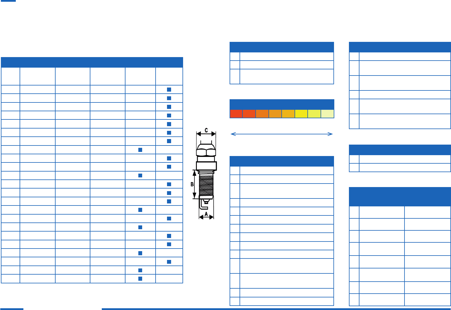 AR TU R NI CO LA U ES PE RA NÇ A NE TO - 13 36 24 13 73 0 - A RT UR N IC O LA U ES PE RA NÇ A NE TO - 13 36 24 13 73 0 Catálogo de Velas Delphi Codificação das Velas Delphi 2- Supressor de Interferências W Sem supressor de Interferências R Com supressor de Interferências L Com supressor de Interferências para reduzir a oxidação dos eletrodos 5- Material do Eletrodo N Eletrodo central de liga de Níquel C Eletrodo central com núcleo de Cobre Z Eletrodo central e massa com nucleo de liga de Cobre e Ítrio S Eletrodo central de Prata P Eletrodo central com contato de Platina I Eletrodo central com contato de Irídio 6- Tratamento Especial S Sem tratamento especial Y Tratamento especial de Ítrio 7- Separação dos Eletrodos (gap) G 6 0,6 mm G 7 0,7 mm G 8 0,8 mm G 9 0,9 mm 1 0 1,0 mm 1 1 1,1 mm 1 3 1,3 mm 1 5 1,5 mm 4- Construção do Eletrodo K Ponta do isolador não projetada B Ponta do isolador projetada X Ponta do isolador extremamente projetada F Ponta do isolador reforçada D Dois eletrodos massa T Três eletrodos massa Q Quatro eletrodos massa M Cinco eletrodos massa O Seis eletrodos massa G Eletrodos em formato circular E Um eletrodo auxiliar na ponta do isolador W Dois eletrodos auxiliares na ponta do isolador e separação U Versão especial de gap H Versão comum 3- Valor Térmico 4 5 6 7 8 9 10 11 Quente Frio 1- Dimensões da Carcaça Tipo Dimensão A Dimensão B Dimensão C Assento Cônico Assento Plano A M10x1,00 9,5mm 16mm B M10x1,00 12,7mm 16mm C M10x1,00 12,7mm 16mm D M10x1,00 19mm 16mm E M10x1,00 26,5mm 14mm F M12x1,25 19mm 16mm G M12x1,25 19mm 18mm H M12x1,25 25,7mm 14mm I M12x1,25 26,5mm 16mm J M12x1,25 26,5mm 14mm K M14x1,25 7,8mm 16mm L M14x1,25 9mm 19mm M M14x1,25 9,5mm 21mm N M14x1,25 9,5mm 21mm P M14x1,25 11,2mm 16mm Q M14x1,25 12,7mm 21mm R M14x1,25 17,5mm 16mm S M14x1,25 19mm 16mm T M14x1,25 19mm 21mm U M14x1,25 25mm 16mm V M14x1,25 26,5mm 16mm W M16x1,50 20,5mm 14,2mm X M18x1,50 11,2mm 21mm AR TU R NI CO LA U ES PE RA NÇ A NE TO - 13 36 24 13 73 0 - A RT UR N IC O LA U ES PE RA NÇ A NE TO - 13 36 24 13 73 0 Catálogo de Velas Delphi Análise de Falhas Superaquecimento Excesso de Torque Exceder o torque recomendado durante a instalação da vela no motor pode ocasionar a trinca ou a quebra do isolador, bem como a deformação da carcaça. Além disso, poderá ocorrer o superaquecimento da vela com consequentes danos ao motor do veículo. Utilize as velas indicadas no manual do veículo ou na tabela de aplicação Delphi. Sempre realize a instalação com o motor frio Siga as instruções adequadas de torque e evite danos ao cabeçote. Velas de ignição com a presença de grânulos na superfície, com a ponta do isolador esbranquiçada, com pontos pretos em sua face ou com os eletrodos parcialmente fundidos, podem ser resultado de um superaquecimento. Para corrigir este problema, verifique: O ponto de ignição correto do seu veículo. O uso da vela com o grau térmico correto, de acordo com o manual do veículo ou a tabela de aplicação Delphi. A qualidade do combustível. A eficiência e funcionamento adequado do sistema de arrefecimento do veículo. AR TU R NI CO LA U ES PE RA NÇ A NE TO - 13 36 24 13 73 0 - A RT UR N IC O LA U ES PE RA NÇ A NE TO - 13 36 24 13 73 0 Catálogo de Velas Delphi Desgaste Excessivo Carbonização A carbonização das velas de ignição pode apresentar aspecto seco ou oleoso. Como resultado dessa carbonização, o veículo pode apresentar dificuldades na partida, falhas no motor e instabilidade da marcha lenta. Substitua as velas de acordo com o manual do veículo ou com a tabela de aplicação Delphi. Verifique o filtro de ar do seu veículo. Escolha combustíveis de fontes confiáveis. O desgaste excessivo das velas pode ser notado quando há falha de ignição durante a aceleração, problemas na partida ou aumento no consumo de combustível. Este problema poderá comprometer outros componentes do sistema de ignição do veículo. Substitua as velas de acordo com o manual do veículo ou com a tabela de aplicação Delphi. Substitua demais componentes do sistema de ignição caso apresentem falhas ou danos. Análise de Falhas