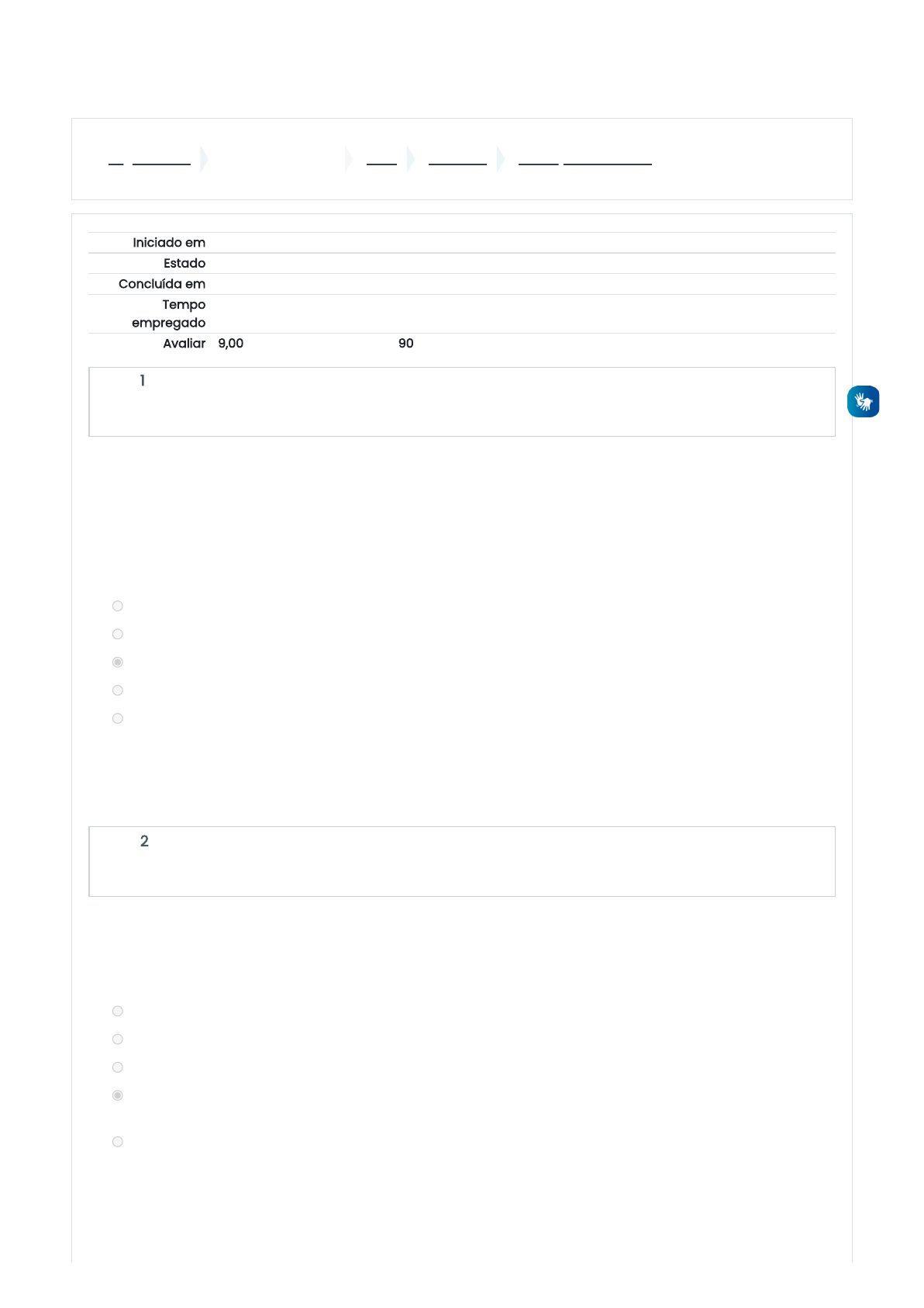 19/05/2021 Avaliação - Unidade I: Revisão da tentativa https://ambienteonline.uninga.br/mod/quiz/review.php?attempt=396173&cmid=11817 1/5 Página inicial Minhas disciplinas 0259 UNIDADE I Avaliação - Unidade I Iniciado em quarta, 19 mai 2021, 10:28 Estado Finalizada Concluída em quarta, 19 mai 2021, 10:37 Tempo empregado 8 minutos 29 segundos Avaliar 9,00 de um máximo de 10,00(90%) Questão 1 Completo Atingiu 1,00 de 1,00 Questão 2 Completo Atingiu 1,00 de 1,00 A filosofia grega parece começar com uma ideia absurda, com a proposição: a água é a origem e a matriz de todas as coisas. Será mesmo necessário deter-nos e levá-la a sério? Sim, e por três razões: em primeiro lugar, porque essa proposição anuncia algo sobre a origem das coisas. em segundo lugar, porque o faz sem imagem e fabulação. e enfim, em terceiro lugar, porque nela, embora apenas em estado de crisálida, está contido o pensamento: Tudo é um. (NIETZSCHE, F. Crítica moderna. In: Os pré-socráticos. São Paulo: Nova Cultural, 1999.). O que, de acordo com Nietzsche, caracteriza o surgimento da filosofia entre os gregos? a. A tentativa de justificar, a partir de elementos empíricos, o que existe no real. b. A ambição de expor, de maneira metódica, as diferenças entre as coisas. c. A necessidade de buscar, de forma racional, a causa primeira das coisas existentes. d. O impulso para transformar, mediante justificativas, os elementos sensíveis em verdades racionais. e. O desejo de explicar, usando metáforas, a origem dos seres e das coisas. A resposta correta é: A necessidade de buscar, de forma racional, a causa primeira das coisas existentes.. Aristóteles foi um pesquisador das ciências exatas e humanas utilizando de linguagens técnicas, ainda hoje usada pelas ciências. Mesmo com todos esses conhecimentos científicos, este filósofo é mais conhecido pelos seus tratados filosóficos. Como filósofo, Aristóteles a. Praticava uma filosofia cosmocêntrica. b. Dizia que o mundo poderia ser explicado pelas soluções matemáticas. c. passava horas discutindo na praça pública, interpelando as pessoas, dizendo-se ignorante. d. não queria saber apenas o porquê das coisas, mas queria saber a intenção, o propósito e a finalidade das coisas e. desenvolveu uma teoria conhecida por Teoria das Formas A resposta correta é: não queria saber apenas o porquê das coisas, mas queria saber a intenção, o propósito e a finalidade das coisas. https://ambienteonline.uninga.br/ https://ambienteonline.uninga.br/course/view.php?id=265 https://ambienteonline.uninga.br/course/view.php?id=265§ion=3 https://ambienteonline.uninga.br/mod/quiz/view.php?id=11817 19/05/2021 Avaliação - Unidade I: Revisão da tentativa https://ambienteonline.uninga.br/mod/quiz/review.php?attempt=396173&cmid=11817 2/5 Questão 3 Completo Atingiu 1,00 de 1,00 Questão 4 Completo Atingiu 1,00 de 1,00 Questão 5 Completo Atingiu 1,00 de 1,00 Dentre as definições que seguem, qual delas define melhor o que é filosofia. a. A filosofia apenas não questiona os dogmas religiosos. b. A filosofia é a posse da verdade. c. São várias as definições para filosofia, mas nenhuma consegue abarcar todas as suas especificidades. d. A filosofia é uma ciência que procura a verdade. e. A filosofia é ciência, assim como a sociologia e a psicologia. A resposta correta é: São várias as definições para filosofia, mas nenhuma consegue abarcar todas as suas especificidades.. Há diferentes formas de se periodizar a Filosofia Grega. Compreendendo a Filosofia Grega a partir da divisão em quatro períodos, escolha a alternativa que corresponde a eles. a. Período Pré-Socrático, Socrático, Escolástico e Patrístico. b. Período Sofista, Pré-Socrático, Socrático e Pós-Socrático. c. Idade Antiga, Idade Média, Modernidade e Idade Contemporânea. d. Período Pré-Socrático, Socrático, Sistemático e Greco-Romano (ou helenístico). e. Período Pré-Socrático, Socrático, Platônico e Aristotélico. A resposta correta é: Período Pré-Socrático, Socrático, Sistemático e Greco-Romano (ou helenístico).. O período filosófico conhecido como “os Socráticos” vai do final do Século V a.C. até o final do Século IV a.C. e é conhecido como antropológico, por: a. Porque a escravidão na Grécia atinge seu apogeu e todas as atividades artesanais eram executadas por escravos b. Por investigar as questões da natureza. c. Por investigar as questões humanas, como política, ética e técnicas científicas d. Porque foi o período em que se inicia o estudo da antropologia na Academia Platônica e. Porque o movimento artístico e cultural conhecido por antropofágico era praticado na Ágora A resposta correta é: Por investigar as questões humanas, como política, ética e técnicas científicas. 19/05/2021 Avaliação - Unidade I: Revisão da tentativa https://ambienteonline.uninga.br/mod/quiz/review.php?attempt=396173&cmid=11817 3/5 Questão 6 Completo Atingiu 1,00 de 1,00 Questão 7 Completo Atingiu 1,00 de 1,00 O período filosófico conhecido como Pré-Socrático, como se pode concluir pelo nome, compreende à fase anterior ao nascimento de Sócrates. Seus representantes se ocupavam em explicar a origem do mundo e as causas das transformações da natureza, em oposição à mitologia, que tentava explicar os fenômenos da natureza pelos poderes e humor dos Deuses mitológicos. A filosofia praticada por esses filósofos é conhecida como: a. Mitológica b. Fenomenológica c. Patrística d. Educacional e. Cosmológica A resposta correta é: Cosmológica. Por meio da razão, os gregos procuram entender que havia uma ordem, uma unidade, uma harmonia por detrás da multiplicidade caótica das coisas e dos acontecimentos. (TELES, A. X. Introdução ao Estudo da Filosofia, Editora Ática, 1985, p.22). Com esta afirmativa, Teles procura explicar: a. A Teoria das Formas de Platão b. A relação entre fé e razão c. O Discurso sobre o M