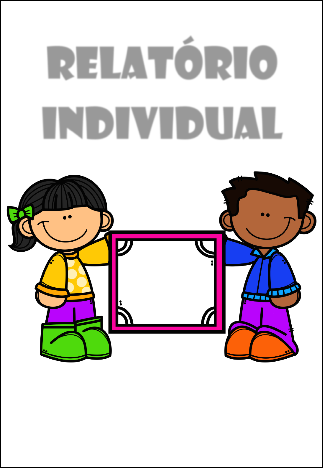 Relatório Individual Educação Infantil Nome: ____________________________________________ w w w .e ti en ep ro f. co m Educação Infantil Nome: ____________________________________________ w w w .e ti en ep ro f. co m Relatório Individual – Aulas Remotas (síncronas e/ou assíncronas) Educação Infantil Escola: ______________________________________________________ Nome: ______________________________________________________ Turma: __________________ Professor(a):______________________ Durante esse período de adaptações, devido à pandemia, que acarretou no isolamento social levando à inúmeras medidas para manter a segurança de todos, incluindo o fechamento das escolas, buscamos manter da melhor maneira tudo o que fora possível para continuar fortalecendo o processos de ensino e aprendizagem de todos os alunos. Compreendemos que a Avaliação tem várias interfaces e é processual, o que nos levou a conduzir as avaliações mediante observações da participação e envolvimento da turma, como um todo, e das devolutivas individuais bem como as realizações dos trabalhos solicitados e envolvimento familiar, que neste momento, ressaltamos a valiosa contribuição para validar esse processo. Neste momento, queremos ressaltar e valorizar a importância do envolvimento da família durante as aulas. Prosseguimos na certeza de que Família e Escola caminham juntas para o desenvolvimento e crescimento saudável das crianças. CAMPO DE EXPERIÊNCIAS “O EU, O OUTRO E O NÓS” Nº Objetivos de Aprendizagem e Desenvolvimento S N EP NT 1 Age de maneira independente, com confiança em suas capacidades, reconhecendo suas conquistas e limitações. 2 Comunica suas ideias e sentimentos a pessoas e grupos diversos. S – SIM N-NÃO EP- EM PROCESSO NT – NÃO TRABALHADO w w w .e ti en ep ro f. co m CAMPO DE EXPERIÊNCIAS “CORPO, GESTOS E MOVIMENTOS” CAMPO DE EXPERIÊNCIAS “TRAÇOS, SONS CORES E FORMAS” CAMPO DE EXPERIÊNCIAS “ESPAÇOS, TEMPOS, QUANTIDADES, RELAÇÕES” _____________________________ ___/___/___ Professor(a) Data Nº Objetivos de Aprendizagem e Desenvolvimento S N EP NT 1 Manuseia a tesoura com segurança. 2 Segura o lápis de forma correta, com firmeza. 3 Realiza pinçamento de objetos. 4 Rasga papel com segurança. 556 Seque sequências. 6 Dança. 7 Canta as músicas propostas nas atividades. Nº Objetivos de Aprendizagem e Desenvolvimento S N EP NT 1 Expressa-se com criatividade em seus desenhos. 2 Usa cores variadas ao colorir ou desenhar. 3 Reconhece as letras que foram estudadas e seus traçados. 4 Acrescenta detalhes as suas produções. 5 Faz representações de esquemas corporais, atribuindo detalhes do corpo. Nº Objetivos de Aprendizagem e Desenvolvimento S N EP NT 1 Reconhece a representação os numerais estudados. 2 Escreve os números no sentido correto. 3 Nomeia as cores primárias e secundárias. 4 Nomeia as formas geométricas estudadas. 5 Tem noções de: Dentro/fora. 6 Tem noções de cheio/vazio. 7 Tem noções de: Alto/baixo. 8 Tem noções de quantidade: mais ou menos. 9 Tem noções de tamanho pequeno/médio/grande. 10 Tem noções de: na frente/atrás. S – SIM N-NÃO EP- EM PROCESSO NT – NÃO TRABALHADO w w w .e ti en ep ro f. co m OBSERVAÇÕES Avanços: ___________________________________________________________ ___________________________________________________________ ___________________________________________________________ Merece atenção: ___________________________________________________________ ___________________________________________________________ ___________________________________________________________ _____________________________ ___/___/___ Professor(a) Data w w w .e ti en ep ro f. co m