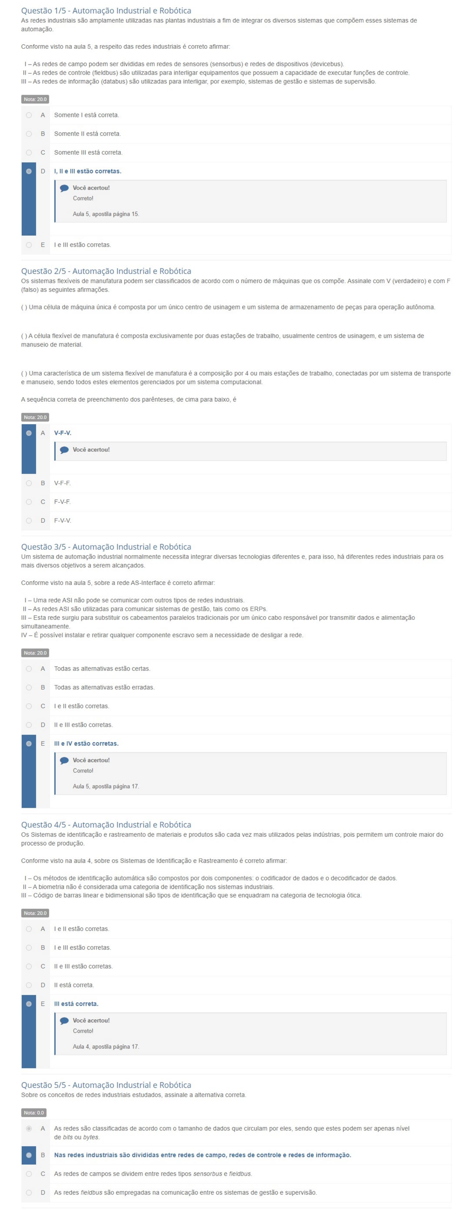 ← 0:06:30 Questão 2/2 - Robótica (questão opcional) A robótica é uma das áreas que compõem os sistemas de automação industrial. Conforme visto ...