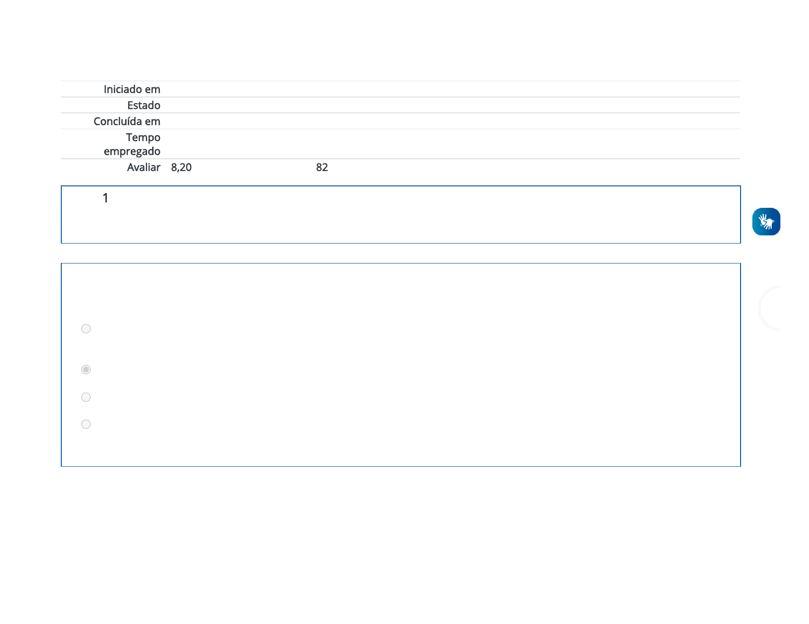 28/04/2021 Atividade Avaliativa do Módulo I: Revisão da tentativa https://ead.educacao.mg.gov.br/mod/quiz/review.php?attempt=645056&cmid=845 1/6 ... Iniciado em quarta, 28 abr 2021, 21:10 Estado Finalizada Concluída em quarta, 28 abr 2021, 21:25 Tempo empregado 15 minutos 36 segundos Avaliar 8,20 de um máximo de 10,00(82%) Questão 1 Correto Atingiu 2,00 de 2,00 Caracteriza uma conta de E-mail Institucional da Secretaria de Estado de Educação de Minas Gerais, exceto: a. É uma conta de e-mail gratuita, com domínio personalizado, disponibilizada por meio do convênio �rmado entre SEEMG e a Google LLC, no ano de 2009, para disponibilização da plataforma Google for Education. b. A conta de e-mail institucional @ducacao.mg.gov.br, possui armazenamento limitado à 30 GB. c. A disponibilização da conta de e-mail institucional pela SEEMG, está baseada nas diretrizes do decreto ALMG 46.226/2013. d. Por meio da conta de e-mail institucional "@educacao.mg.gov.br" o servidor(a) possui armazenamento ilimitado para o Gmail e Google Drive. Sua resposta está correta. 28/04/2021 Atividade Avaliativa do Módulo I: Revisão da tentativa https://ead.educacao.mg.gov.br/mod/quiz/review.php?attempt=645056&cmid=845 2/6 Questão 2 Correto Atingiu 2,00 de 2,00 São principais características da plataforma Google for Education, marque V ou F: ( ) Mobilidade e Disponibilidade. ( ) Integração e Produtividade. ( ) Comunicação e Colaboração. ( ) Backup e Segurança de Dados. A sequência correta é: a. V, V, V, V b. V, F, V, F c. F, V, F, V d. V, V, V, F Sua resposta está correta. 28/04/2021 Atividade Avaliativa do Módulo I: Revisão da tentativa https://ead.educacao.mg.gov.br/mod/quiz/review.php?attempt=645056&cmid=845 3/6 Questão 3 Parcialmente correto Atingiu 0,80 de 2,00 Quais os benefícios de uma conta de e-mail institucional @educacao.mg.gov.br? Marque as 04 opções corretas. a. Possui ferramentas que possibilitam o trabalho colaborativo. b. É o meio O�cial de comunicação corporativa da SEEMG. c. O uso dos serviços adicionais, tais como, Blogger, deve ser liberado/autorizado pela SEEMG. d. Permite acesso gratuito à plataforma G Suite For Education. e. Promove segurança de dados e há anúncios nos serviços principais. f. Possui armazenamento limitado para O Gmail em 15 GB e Ilimitado para o Google Drive. Sua resposta está parcialmente correta. Você selecionou corretamente 3. 28/04/2021 Atividade Avaliativa do Módulo I: Revisão da tentativa https://ead.educacao.mg.gov.br/mod/quiz/review.php?attempt=645056&cmid=845 4/6 Questão 4 Correto Atingiu 2,00 de 2,00 Associe a característica do recurso, com a ferramenta: Planejar eventos, criar pesquisas, aplicar testes em alunos ou coletar/analisar dados em tempo real, de maneira fácil, intuitiva e direta. Use �ltros e tabelas dinâmicas para obter novas perspectivas sobre seus dados. Permite que você armazene seus arquivos podendo acessá-los em qualquer hora e lugar. Google Formulários Google Planilhas Google Drive Sua resposta está correta. 28/04/2021 Atividade Avaliativa do Módulo I: Revisão da tentativa https://ead.educacao.mg.gov.br/mod/quiz/review.php?attempt=645056&cmid=845 5/6 Questão 5 Parcialmente correto Atingiu 1,40 de 2,00 Classi�que os aplicativos abaixo de acordo com seu tipo: Serviço Principal ou Serviço Adicional para o Google for Education. Blogger Google Sites Youtube Google Contatos Google Sala de aula/Classroom Google Agenda Google Planilhas, Google Documentos e Google Apresentações Currents Google Drive Gmail Serviço Adicional Serviço Principal Serviço Principal Serviço Principal Serviço Adicional Serviço Principal Serviço Principal Serviço Adicional Serviço Principal Serviço Principal Sua resposta está parcialmente correta. Você selecionou corretamente 7. 28/04/2021 Atividade Avaliativa do Módulo I: Revisão da tentativa https://ead.educacao.mg.gov.br/mod/quiz/review.php?attempt=645056&cmid=845 6/6 https://ead.educacao.mg.gov.br/mod/book/view.php?id=843&forceview=1 https://ead.educacao.mg.gov.br/mod/book/view.php?id=847&forceview=1