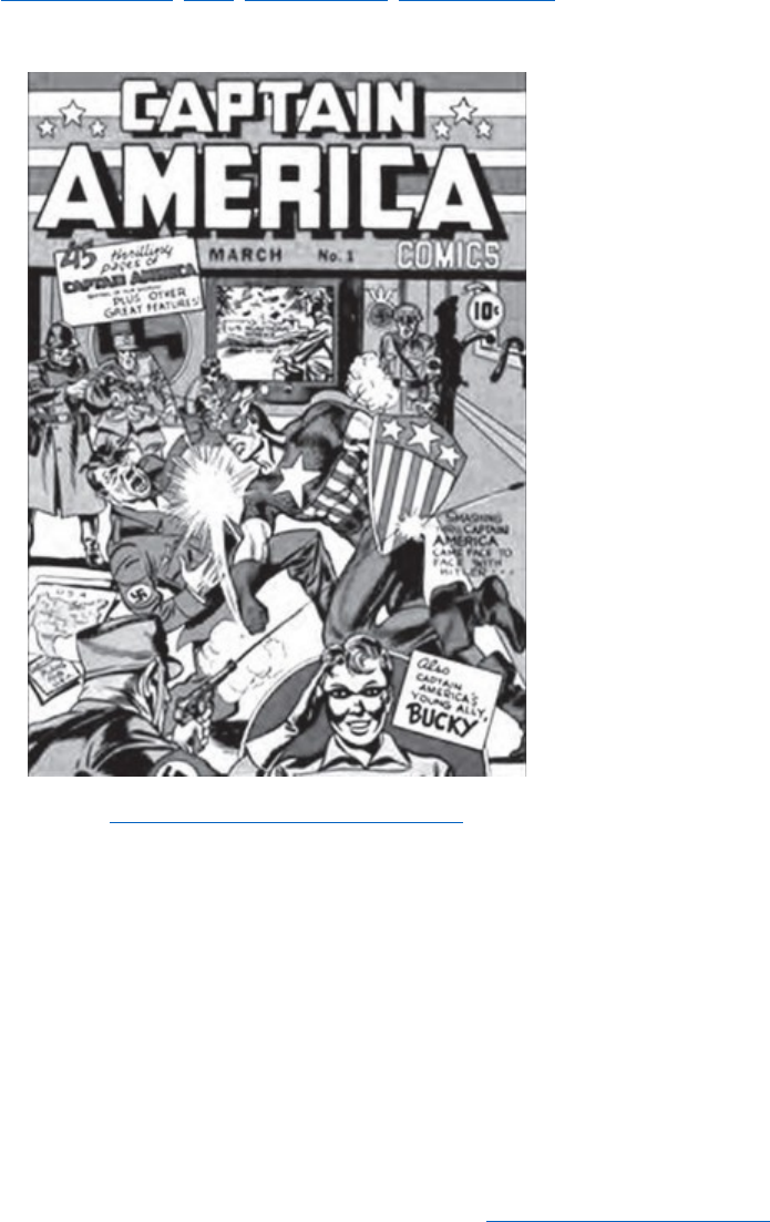 GABARITO ENEM / 2012 / PRIMEIRO DIA / CADERNO AZUL QUESTÃO 04 Disponível em: http://quadro-a-quadro.blog.br. Acesso em: 27 jan. 2012. Com sua entrada no universo dos gibis, o Capitão chegaria para apaziguar a agonia, o autoritarismo militar e combater a tirania. Claro que, em tempos de guerra, um gibi de um herói com uma bandeira americana no peito aplicando um sopapo no Fürer só poderia ganhar destaque, e o sucesso não demoraria muito a chegar. COSTA, C. Capitão América, o primeiro vingador: crítica. Disponível em: www.revistastart.com.br. Acesso em: 27 jan. 2012 (adaptado). COMPARTILHE A capa da primeira edição norte-americana da revista do Capitão América demonstra sua associação com a participação dos Estados Unidos na luta contra · a Tríplice Aliança, na Primeira Guerra Mundial. · os regimes totalitários, na Segunda Guerra Mundial. · o poder soviético, durante a Guerra Fria. · o movimento comunista, na Guerra do Vietnã. · o terrorismo internacional, após 11 de setembro de 2001. Gabarito da questão Opção B