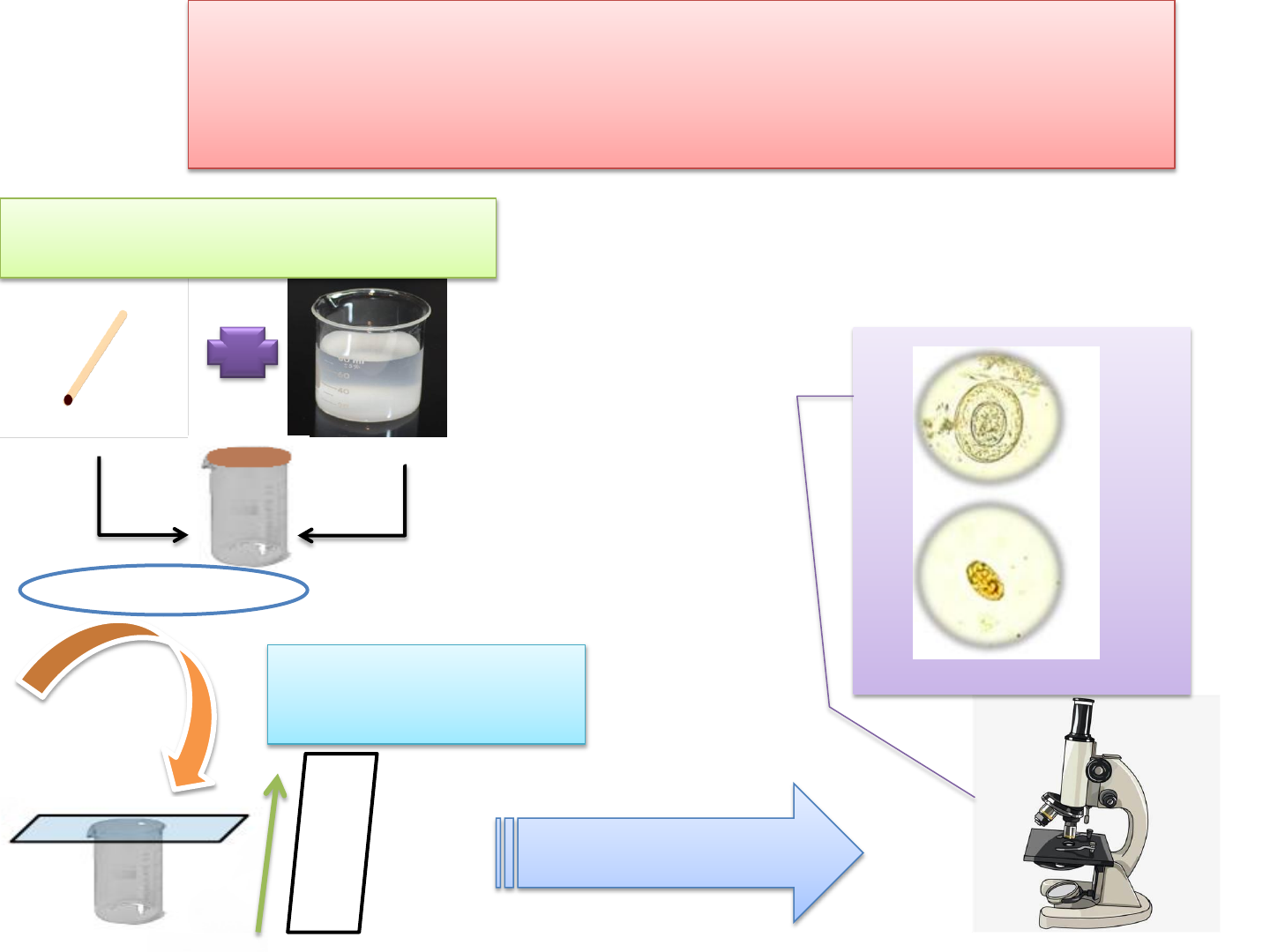 Método Willis Hallana Comarú Misturar em um recipiente de vidro 1g de fezes e NaCl saturada, até a borda Deixe por 20 minutos, invertendo rapidamente sua posição , para evitar perder ovos e/ou cistos Colocar a lâmina sobre a borda