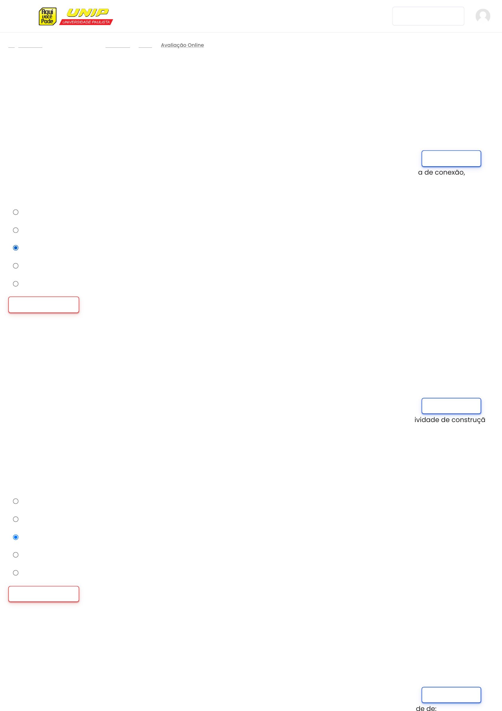 - Minhas disciplinas - - - Bibliotecas Virtuais Página inicial S6-L0090 Geral Avaliação Online Os Projetos são uma boa forma de organizar o tempo de aprender com os alunos porque supõem uma forma diferenciada de conexão, produção, apropriação e socialização de conhecimentos. Escolha uma: a. Na qual os limites entre as áreas curriculares se tornam menos relevantes. b. A responsabilidade fica mais a cargo do professor. c. As áreas curriculares ganham a interdisciplinaridade entre si. d. Na qual os limites entre as áreas curriculares se tornam claros e relevantes e. A responsabilidade fica mais a cargo dos alunos. Limpar minha escolha Uma estudante do curso de Pedagogia observa durante o estágio um grupo de crianças do terceiro ano durante uma atividade de construção de um texto coletivo. Ela observou que eles estavam em fases da escrita diferentes, mas a interação era facilitadora na constituição da aprendizagem. O diálogo entre eles no confronto das hipóteses estimulava-os à reflexão. No seu caderno de registro de acompanhamento e observação, ela se lembrou de pesquisar mais sobre.............., teórico interacionista que poderia contribui na fundamentação de suas reflexões. O nome desse teórico é: Escolha uma: a. Luquet. b. Freud. c. Vygotsky. d. Piaget. e. Wallon. Limpar minha escolha Para Madalena Freire (2010), um dos pilares centrais na formação de um professor é o desenvolvimento de sua capacidade de: Marcar questão Questão 1 Ainda não respondida Vale 1,00 ponto(s). Marcar questão Questão 2 Ainda não respondida Vale 1,00 ponto(s). Marcar questão Questão 3 Ainda não respondida Vale 1,00 ponto(s). http://www.unipvirtual.com.br/avaunip http://www.unipvirtual.com.br/avaunip/ http://www.unipvirtual.com.br/avaunip/course/view.php?id=2663 http://www.unipvirtual.com.br/avaunip/course/view.php?id=2663#section-0 http://www.unipvirtual.com.br/avaunip/mod/quiz/view.php?id=63410 http://www.unipvirtual.com.br/avaunip/mod/quiz/attempt.php?attempt=3748885&cmid=63410 http://www.unipvirtual.com.br/avaunip/mod/quiz/attempt.php?attempt=3748885&cmid=63410 Para Madalena Freire (2010), um dos pilares centrais na formação de um professor é o desenvolvimento de sua capacidade de: Escolha uma: a. Se relacionar. b. Questionar. c. Transformar a realidade. d. Reflexão. e. Estudar a teoria. Limpar minha escolha A seguinte questão fez parte da prova de conhecimentos de Metodologia de História e Geografia de um concurso público para professores de Ensino Fundamental (primeiro ciclo) de um município do estado do Rio de Janeiro. “De acordo com os autores do livro Didática da Geografia – Memórias da Terra, Kozel e Filizola, em Geografia, o espaço geográfico tem dois aspectos intimamente ligados: ________________ e ______________. Assim, ele é resultado da dinâmica da sociedade e da dinâmica da natureza.” Que palavras completam as lacunas? Escolha uma: a. Cultural e natural. b. Social e individual. c. Cultural e geográfico. d. Geográfico e histórico. e. Social e histórico. Limpar minha escolha Não existe uma educação neutra. No ensino, qualquer atuação veicula alguns ideais de pessoa e de sociedade. Muitos são os autores que defendem que é preciso entender quais são os princípios que alicerçam o ensino. Dessa feita é imprescindível: Escolha uma: a. A definição da linha de atuação dos educadores no projeto político-pedagógico da escola que deve ser elaborada pelo seu coletivo e estar em consonância com as diretrizes políticas da Secretaria de Educação. b. O professor esclarecer junto à equipe pedagógica, durante a elaboração do projeto político-pedagógico da escola, qual concepção de educação, visão de homem e visão de mundo que irá adotar em sala de aula, no desenvolvimento de sua prática educativa. c. A explicitação coletiva e democrática dos modelos que estão sendo promovidos na escola através das diferentes práticas educativas, a reflexão sobre os valores que transmitem e sua revisão a partir da tomada de posição da equipe sobre os modelos de sociedade e de pessoa que se pretende alcançar. d. O trabalho pedagógico ser planejado pela equipe técnica da escola, de forma a prever qual deve ser a atuação dos professores e demais profissionais da unidade escolar para que se mantenha a uniformidade necessária para um ensino democrático. e. A realização de um trabalho padronizado para que se alcance um ensino de qualidade para todas as classes de uma escola; para Marcar questão Questão 4 Ainda não respondida Vale 1,00 ponto(s). Marcar questão Questão 5 Ainda não respondida Vale 1,00 ponto(s). http://www.unipvirtual.com.br/avaunip/mod/quiz/attempt.php?attempt=3748885&cmid=63410 http://www.unipvirtual.com.br/avaunip/mod/quiz/attempt.php?attempt=3748885&cmid=63410 e. A realização de um trabalho padronizado para que se alcance um ensino de qualidade para todas as classes de uma escola; para tanto, é necessário que a coordenação pedagógica defina coletivamente as regras de atuação para todos os professores. Limpar minha escolha Na organização de sua rotina, a professora Ana Lúcia, do 1º ano, dedica um tempo para o trabalho com o calendário junto ao grupo. Para cada dia, propõe uma situação diferente, como: descobrir quantos dias faltam para determinado evento da escola, marcar uma data importante, pesquisar quantos são os aniversariantes do mês, descobrir quantos dias tem a semana, o mês, o semestre etc. Essa atuação da professora é: Escolha uma: a. Equivocada, pois as crianças não precisam da interferência do professor, visto que o calendário foi um trabalhado realizado diariamente com elas desde os 3 anos de idade. b. Adequada, pois as crianças precisam aprender sobre a função social desse recurso, bem como construir a noção de tempo gradativamente, mediados por um parceiro experiente que ajudará na construção dessa noção e com foco nesses objetivos. c. Inade