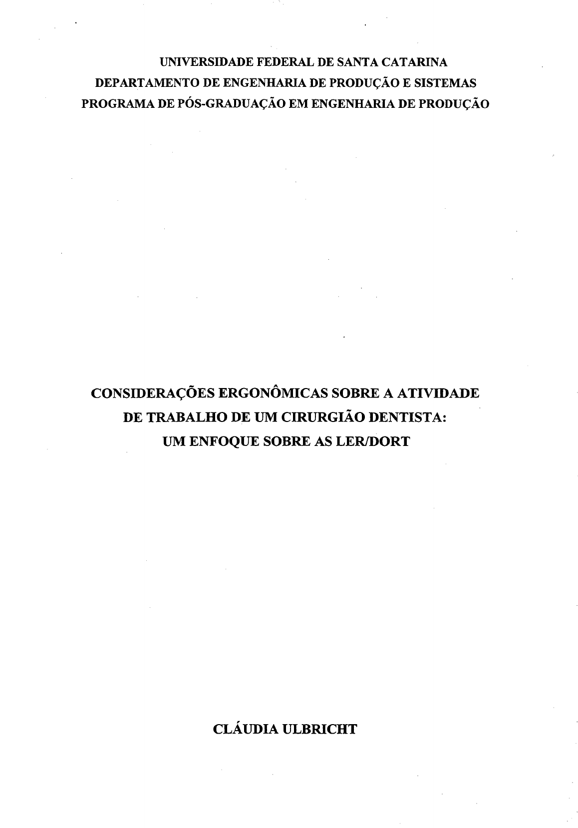 CONSIDERAÇÕES ERGONÔMICAS SOBRE A ATIVIDADE DE TRABALHO DE UM CIRURGIÃO DENTISTA: UM ENFOQUE SOBRE AS LER/DORTnull