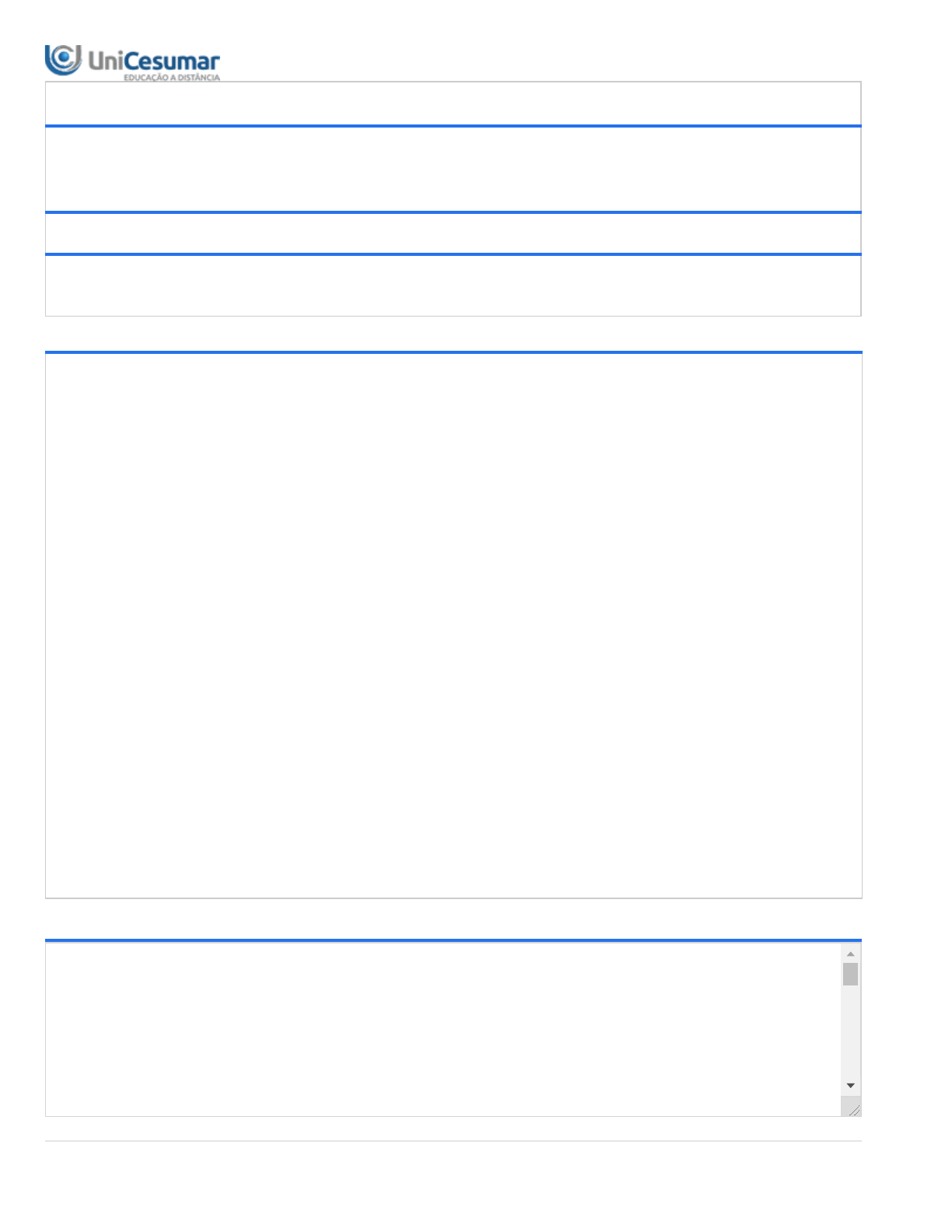 24/05/2021 Unicesumar - Ensino a Distância 1/2 Protocolo de Finalização Nº 000032384997 O aluno JOSIANE ROSSO TRAMONTIN com RA 20079292-5 finalizou a atividade ATIVIDADE 1 - PED - METODOLOGIA DA ALFABETIZAÇÃO - 2021A em 11/03/2021 12:13:46 ATIVIDADE 1 - PED - METODOLOGIA DA ALFABETIZAÇÃO - 2021A Período:22/02/2021 08:00 a 15/03/2021 23:59 (Horário de Brasília) Status:ENCERRADO Nota máxima:2,00 Nota obtida: 2,00 1ª QUESTÃO Nos dois primeiros anos do Ensino Fundamental, a ação pedagógica deve ter como foco a alfabetização, a fim de garantir amplas oportunidades para que os alunos se apropriem do sistema de escrita alfabética de modo articulado ao desenvolvimento de outras habilidades de leitura e de escrita e ao seu envolvimento em práticas diversificadas de letramentos. (p.59) Embora, desde que nasce e na Educação Infantil, a criança esteja cercada e participe de diferentes práticas letradas, é nos anos iniciais (1º e 2º anos) do Ensino Fundamental que se espera que ela se alfabetize. Isso significa que a alfabetização deve ser o foco da ação pedagógica. (p.89) BRASIL. Ministério da Educação. Base Nacional Comum Curricular. Secretaria de Educação Básica. Brasília: MEC, SEB, 2017. Disponível em: https://basenacionalcomum.mec.gov.br/images/BNCC_20dez_site.pdf. Acesso em: 18 jan. 2021. Os trechos acima foram retirados da Base Nacional Comum Curricular – BNCC e trata sobre a alfabetização. Para esta atividade, proponho que leia este documento da página 89 a 111 (Você poderá encontrar a BNCC no material da disciplina ou acessando o link: (http://basenacionalcomum.mec.gov.br/images/BNCC_20dez_site.pdf). Após a leitura, produza um texto dissertativo (mínimo 30 e no máximo 40 linhas) seguindo o roteiro: - Quando a criança deve ser alfabetizada; - Como deve ser a alfabetização segundo a BNCC; - Qual a importância de desenvolver um bom trabalho de oralidade com crianças que estão em fase de alfabetização; - Para concluir, você deve expor sua opinião sobre o seguinte aspecto: É possível alfabetizar dentro do prazo previsto pela BNCC? Qual o papel do professor neste processo? ALTERNATIVAS A Base Nacional Comum Curricular compreende um dos principais documentos norteadores da educação, no sentido de que deve ser capaz de contemplar todas as áreas educacionais do aluno, a partir do momento em que passa a ter maturidade para ser alfabetizado por volta dos 7 anos. Na fase da alfabetização, existem escolas que começam a introduzir as letras por volta dos 4 ou 5 anos de idade. Nesse caso, as crianças que já frequentam a escola podem começar o aprendizado de forma gradual para serem alfabetizadas de fato por volta dos 6 a 7 anos. Segundo a BNCC a criança deve ser alfabetizada no período que esta mais apta as habilidades de leitura e it i t d ti l ã d d l i t d i O d lf b ti ã é 24/05/2021 Unicesumar - Ensino a Distância 2/2 Retorno do Professor Olá, Josiane! Parabéns, sua atividade ficou excelente. Continue com este foco, fazendo sempre o melhor! Muita saúde em 2021! Tutora Ana Paula.