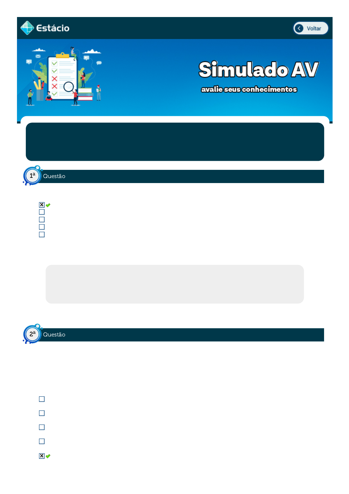 25/05/2021 Estácio: Alunos https://simulado.estacio.br/alunos/?p0=211551750&user_cod=5064964&matr_integracao=202103137431 1/5 Disc.: BASES DE GESTÃO Aluno(a): CLAUDICEIA NORONHA DA FONSECA PEREIRA 202103137431 Acertos: 10,0 de 10,0 25/05/2021 Acerto: 1,0 / 1,0 Em linhas gerais, o que é correto afirmar sobre organização: Sistema estruturado de pessoas que se reúnem em torno de objetivos comuns. Sistema de integração de dados que organiza o trabalho. Sistema semi estruturado que reúnem pessoas para um trabalho individual. Sistema gerencial para organizar a vida no trabalho. Sistema integral que reúne pessoas. Respondido em 25/05/2021 13:22:23 Explicação: Segundo Sobral e Peci (2013), em linhas gerais, organização é um sistema estruturado de pessoas que se reúnem em torno de objetivos comuns. Ela surge como uma resposta à necessidade dos indivíduos de alcançar metas que sozinhos jamais conseguiriam atingir pela própria variedade ou natureza do trabalho que precisam realizar. Acerto: 1,0 / 1,0 O ambiente organizacional pode ser entendido como o espaço onde as organizações operam para alcançar seus objetivos. Mudanças ocorrem tanto no ambiente externo quanto no ambiente interno que podem influenciar diretamente os planejamentos realizados pelas empresas, razão pela qual é importante acusar essas variações, monitorando as oportunidades, ameaças, pontos fortes (forças) e pontos fracos (fraquezas), que podem distorcer o padrão de comportamento previamente estabelecido. Com relação à análise dos ambientes externo e interno de uma organização, assinale a opção CORRETA. Mediante a análise das oportunidades e das fraquezas de um ambiente organizacional, obtêm-se a atual situação das vantagens competitivas de uma empresa. Ameaças são fatores do ambiente externo que impactam diretamente nas organizações, podendo ser controladas antes de prejudicarem o desenvolvimento das empresas. Quanto menos uma empresa conhece sobre seu concorrente, menor o risco estratégico dessa empresa em face das estratégias do concorrente. Na análise externa, os pontos fortes e fracos de uma empresa devem ser determinados por meio da relação entre os segmentos de mercado e a atual posição dos produtos ou serviços dessa empresa. As forças (pontos fortes) e fraquezas (pontos fracos) correspondem a variáveis controláveis por uma empresa, enquanto as oportunidades e as ameaças correspondem a variáveis não controláveis. Respondido em 25/05/2021 13:27:32 Questão1 a Questão2 a https://simulado.estacio.br/alunos/inicio.asp javascript:voltar(); 25/05/2021 Estácio: Alunos https://simulado.estacio.br/alunos/?p0=211551750&user_cod=5064964&matr_integracao=202103137431 2/5 Explicação: O ambiente organizacional pode ser entendido como o espaço onde as organizações operam para alcançar seus objetivos. Divide-se em ambiente interno e ambiente externo. No ambiente interno é onde estão as variáveis controláveis pela empresa, seus recursos internos, seus equipamentos, sua tecnologia, seus profissionais, seu capital, etc. O ambiente externo é onde estão as variáveis incontroláveis pela empresa, como a legislação, a política governamental, a economia, a demografia, os fornecedores, os clientes, os concorrentes, etc.). Como exemplo de variáveis incontroláveis, que podem ser oportunidades ou ameaças, temos mudanças nas estratégias dos concorrentes ou nos hábitos dos clientes, surgimento de nova tecnologia, queda da taxa de juros, novo incentivo fiscal, etc. Uma empresa deve buscar aproveitar as oportunidades e ultrapassar as ameaças do ambiente externo, assim como fortalecer os seus pontos fortes (forças) e minimizar os seus pontos fracos (fraquezas), inerentes ao ambiente interno, para permanecer e crescer no mercado em que atua. Acerto: 1,0 / 1,0 Defensor do planejamento, Pedro Paulo, um dos gestores do restaurante Comida Saudável Ltda., sempre enumera suas vantagens para que a equipe entenda a importância desta função. Entre elas, qual não configura uma vantagem e não deve entrar na lista de Pedro Paulo? Proporcionar senso de direção, garantindo unidade à organização. Promover o alinhamento das pessoas aos objetivos organizacionais. Definir a estrutura organizacional e as competências. Maximizar a eficiência ao estabelecer prioridades. Definir os padrões de desempenho que subsidiam a função Organização. Respondido em 25/05/2021 13:28:55 Explicação: . Acerto: 1,0 / 1,0 Existem quatro funções básicas que os gestores devem colocar em prática. Em relação as funções do administrador leia as afirmações a seguir: I- Planejamento está relacionado a decisões sobre a divisão de autoridade, responsabilidade e recursos para realizar objetivos. II- Controle está relacionado a decisões de assegurar a realização dos objetivos. III- Organização está relacionado a decisões sobre objetivos e recursos necessários para realizá-los. IV- Direção está relacionado a decisões de execução de planos. São afirmações verdadeiras: II e III III e IV I e II I e III II e IV Respondido em 25/05/2021 13:29:50 Explicação: Questão3 a Questão4 a 25/05/2021 Estácio: Alunos https://simulado.estacio.br/alunos/?p0=211551750&user_cod=5064964&matr_integracao=202103137431 3/5 I- Planejamento está relacionado a decisões sobre a divisão de autoridade, responsabilidade e recursos para realizar objetivos. - ORGANIZAÇÃO está relacionado a decisões sobre a divisão de autoridade, responsabilidade e recursos para realizar objetivos. II- Controle está relacionado a decisões de assegurar a realização dos objetivos. - CORRETO III- Organização estão relacionado a decisões sobre objetivos e recursos necessários para realizá-los. PLANEJAMENTO está relacionado a decisões sobre objetivos e recursos necessários para realizá-los. IV- Direção está relacionado a decisões de execução de planos. - CORRETO Acerto: 1,0 / 1,0 As políticas e p