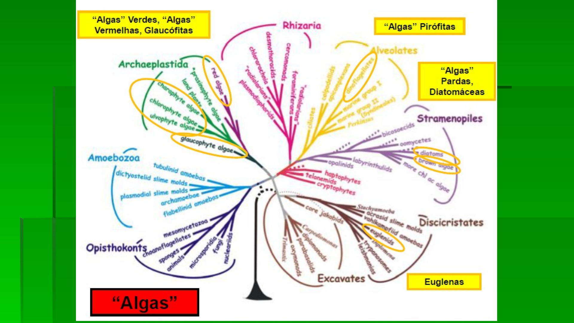 1 Filo Chlorophyta (algas verdes macroscópicas ) 2 Características gerais Chloro (grego) = verde Phyton (grego) = planta Grupo monofilético. 500 gêneros ± 17.000 espécies. Grande diversidade morfológica unicelulares e multicelulares. Tamanhos variam de µM a metros (8 m). Ocorrem em ambientes de água doce e salgada. Eucariontes, fotossintetizantes e autotróficas. Clorofila “a” e “b”. Xantofilas (luteína) e carotenos (β-caroteno). Reserva: amido (dentro dos cloroplastos pirenóides). Parede celular: principalmente celulose; algumas espécies com impregnação de carbonato de calcio Presença de flagelos em alguma fase do ciclo de vida. Utilizam fontes de carbono. Ex: açúcares, aminoácidos. Coloração esverdeada se deve a grande quantidade de clorofila, que mascara os outros pigmentos. Ocorrência Formas marinhas: águas tropicais e sub-tropicais bentos. Semelhantes a briófitas e plantas vasculares. Clorofila “a” e “b”. Carotenóides (principalmente β-caroteno). Xantofilas (principalmente luteína). PIGMENTOS: Número e formas variadas critério de classificação. CLOROPLASTO: Cloroplastos + pirenóide acumulam amido. Mitoses em algas: 1. Ficoplasto, 2. Fragmoplasto, 3. Mitose fechada com centríolos apicais, 4. Mitose fechada com centriolos laterais, 5. Mitose aberta PIRENÓIDE: Presente em muitas algas verdes. Ocorrendo uma ou mais por cloroplasto. Amido RESERVA: Armazenado dentro: cloroplastos. pirenóides, quando estão presentes. citoplasma. Tipos de talo Talo filamentoso (celular e cenocítico) Talo globoso (oco ou cheio) Enteromorpha Dictyosphaeria Ventricaria Codium Cladophora Talo formado por segmentos articulados (calcário). Talo cilíndrico Formas cenocíticas: filamentos tubulares não divididos em células. Formas parenquimatosas: talo formado por sucessivas divisões celulares em diferentes planos tecido bi ou tridimensional. Enteromorpha Talo foliáceo(celular) Talo ramificado(cenocitico) Codium Bryopsis Ulva Talo diferenciado Porção prostrada (rizóide e estolão); Órgãos assimiladores ramos e râmulos (vesículas flutuantes). Caulerpa Estruturas Anterídio Oogônio TIPO DE ESTRUTURA INTERNA CELULAR: quando é formada por celulas CENOCITICA: quando é formada por cenocitos Reprodução Vegetativa divisão celular simples ou fragmentação. Espórica formação de esporos (zoósporos ou aplanósporos). Gamética: ciclo de vida extremamente variável. Forma dos gametas: isogamia, anisogamia e oogamia. Ciclo de vida Haplobionte diplonte ( ocorre em individuos diploides que produzem esporos haploides por meiose e gametas haploides por mitose: Ex: Caulerpa, Codium. Gameta (n) ♂ Gameta (n) ♀ Singamia Zigoto (2n) Mitose Talo (n) Esporófito Meiose Detalhe de Utrículos férteis (CENOCITOS) Ciclo de vida de Codium sp. Diplobionte isomórfico (individuos diploides que produzem esporofito e gametofito haploides) : Ex: Ulva, Chaetomorpha. Gameta (n) ♂ Gameta (n) ♀ Singamia Zigoto (2n) Mitose Talo (n) Esporófito Meiose Talo (n) Gametófito Diplobionte heteromórfico: Ex: Derbesia (2n) alternando com uma fase (n) muito diferente, descrita no passado como um gênero distinto, Halicystis. Gameta (n) ♂ Gameta (n) ♀ Singamia Zigoto (2n) Mitose Talo (2n) Esporófito Meiose Talo (n) Gametófito CARACTERISICAS DA CLASSE ULVOPHYCEAE-celulares CARACTERISICAS DA CLASSE ULVOPHYCEAE- cenociticas Principais representantes da classe Ulvophyceae Algas marinhas comestíveis Caulerpa Enteromorpha Monostroma Ulva O que torna as algas verdes + evoluídas ¿ Ancestral unicelular flagelado Plantas terrestres Chlorophyceae Charophyceae Ulvophyceae Ficoplasto Fragmoplasto Fim!!!